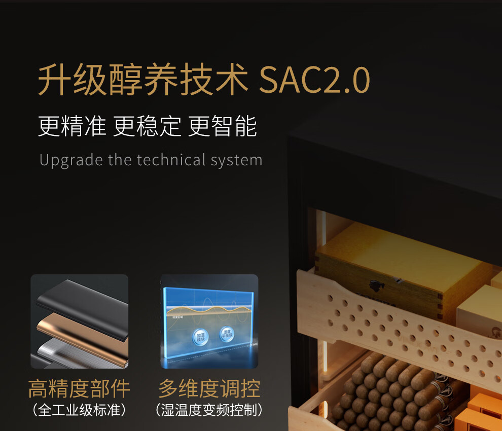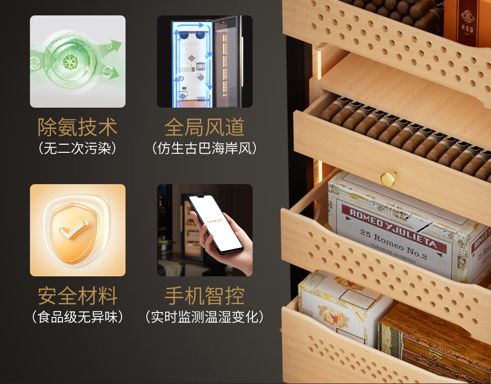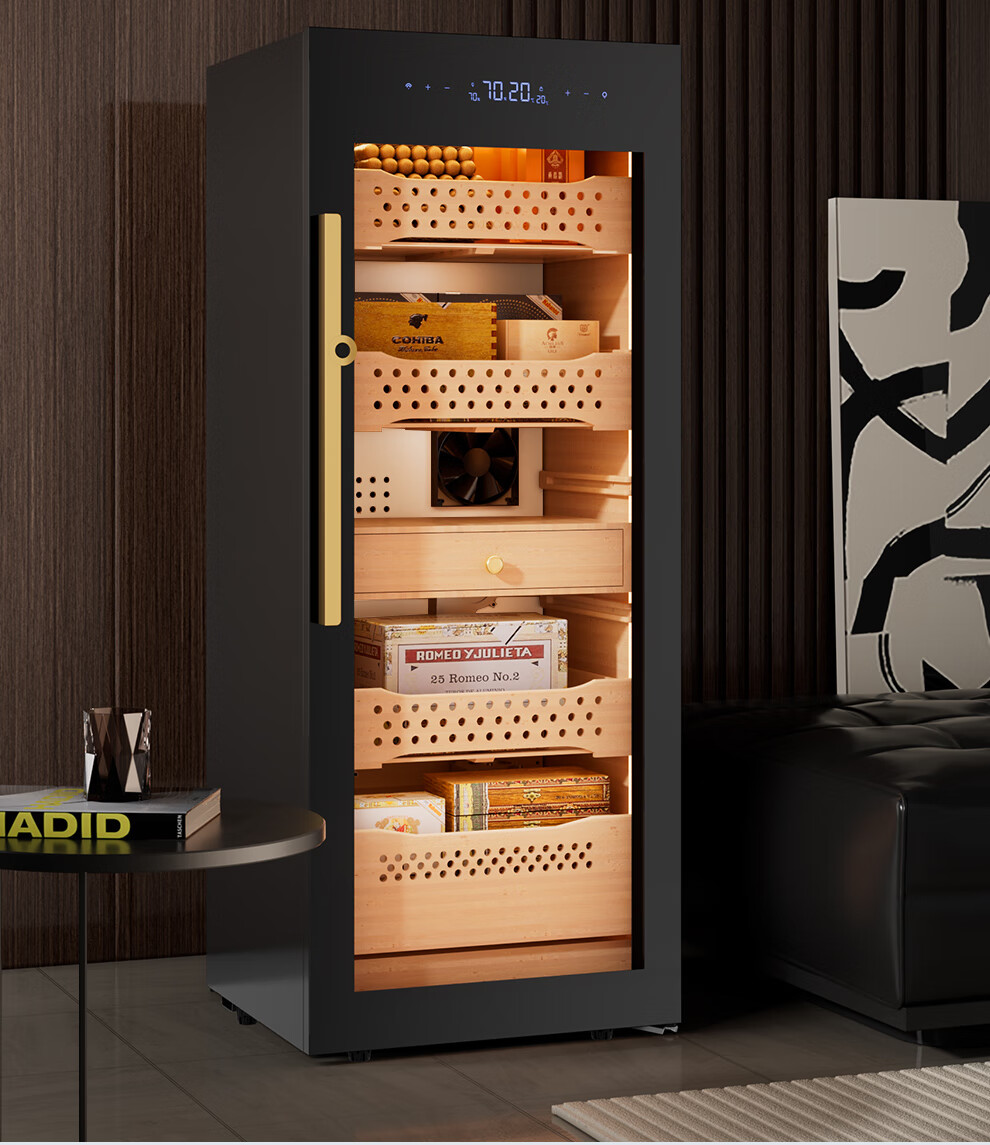 Vinocave cigar cabinet constant temperature and humidity humidification cabinet household smart frequency conversion precise temperature control and humidity Spanish cedar wood shelf liner cigar display cabinet upgraded 4 major systems V3 triple ammonia removal + cedar wood liner 152L