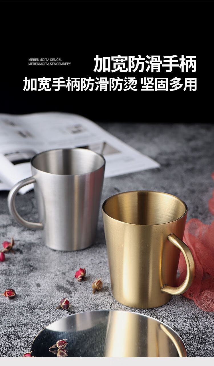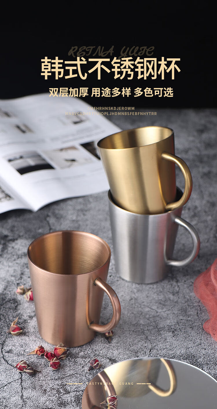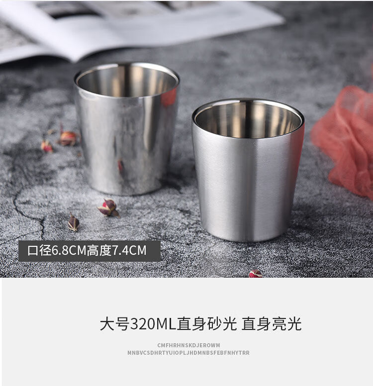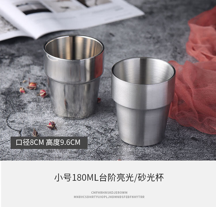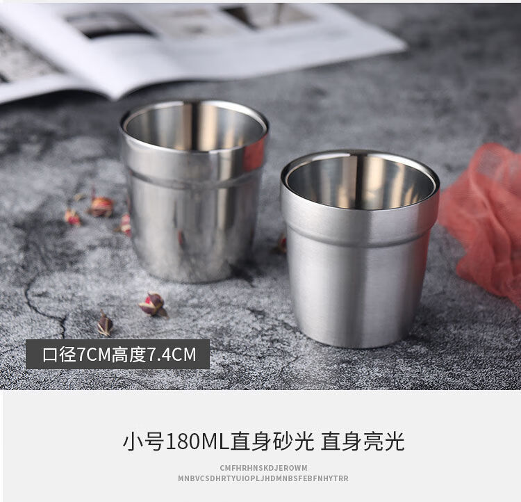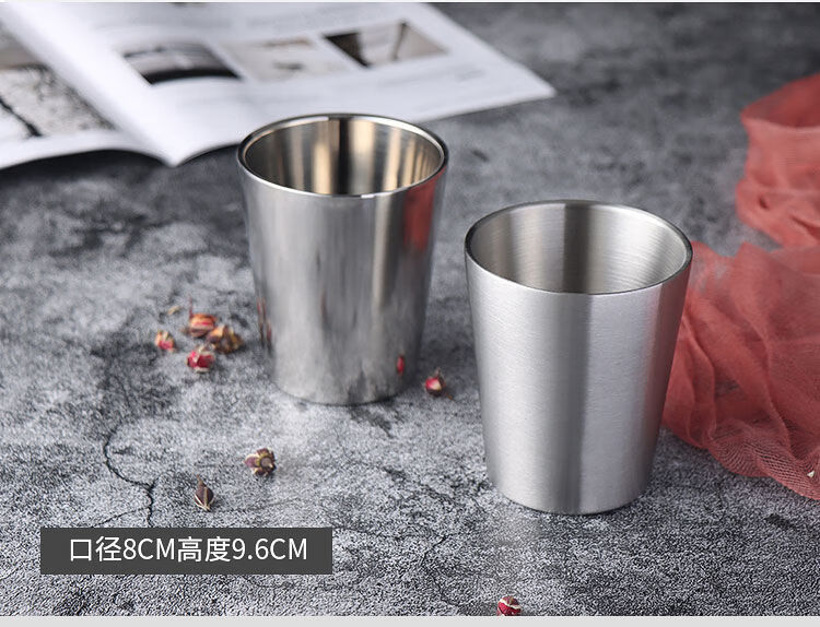 Qinkai 304 Korean stainless steel insulated double-layer drinking cup, anti-scalding and anti-falling beer cup, household children's drinking cup, 304 straight matte small size (180ml)