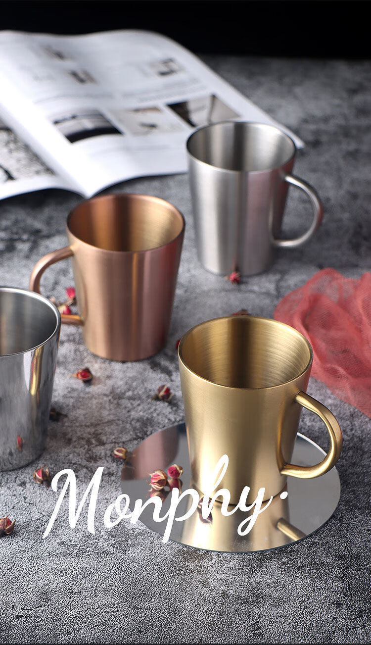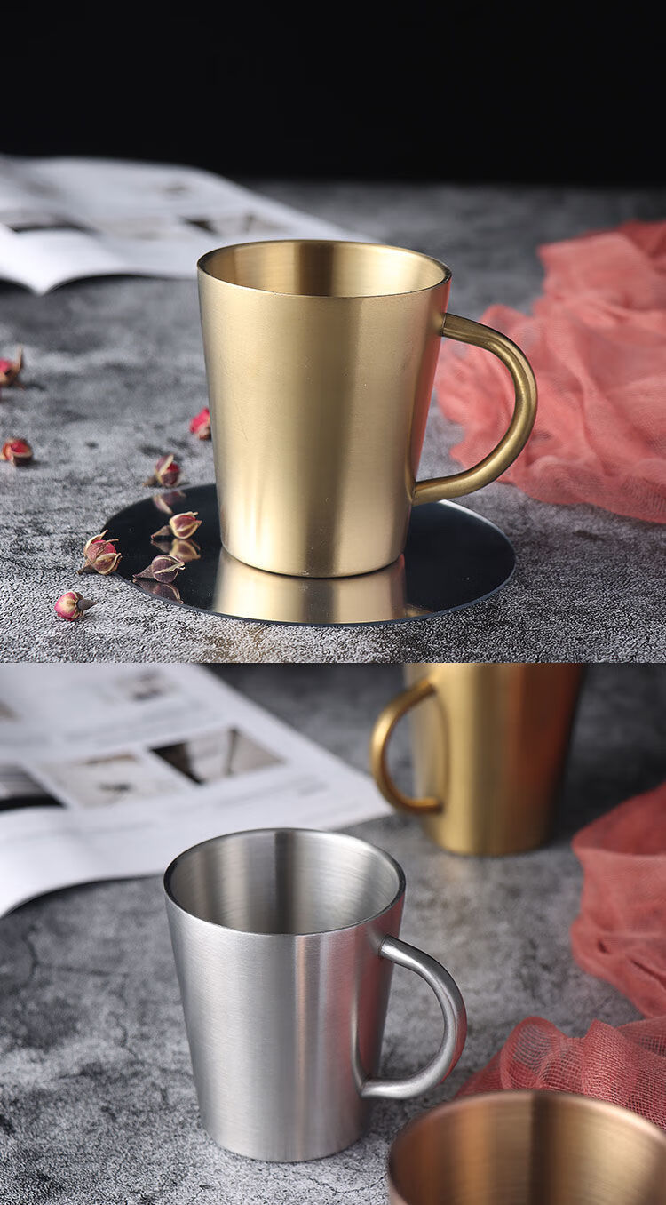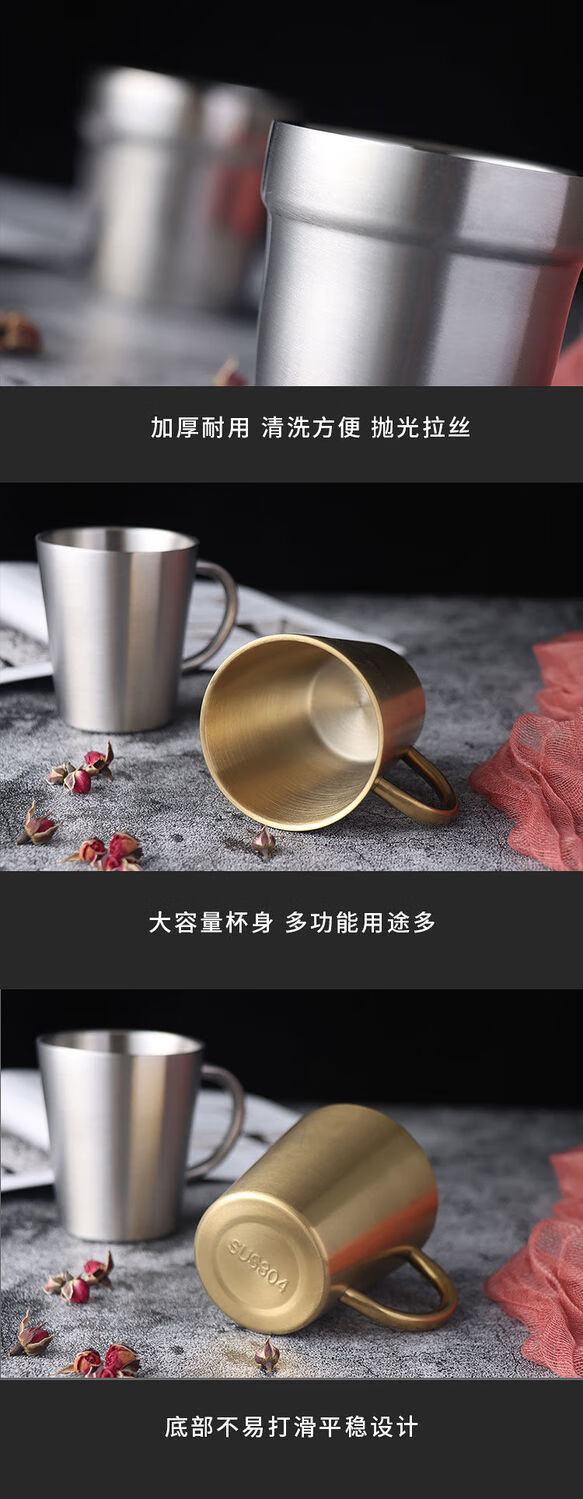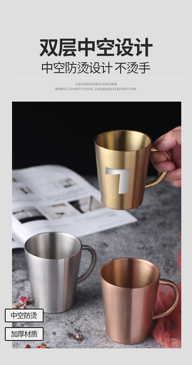 Qinkai 304 Korean stainless steel insulated double-layer drinking cup, anti-scalding and anti-falling beer cup, household children's drinking cup, 304 straight matte small size (180ml)
