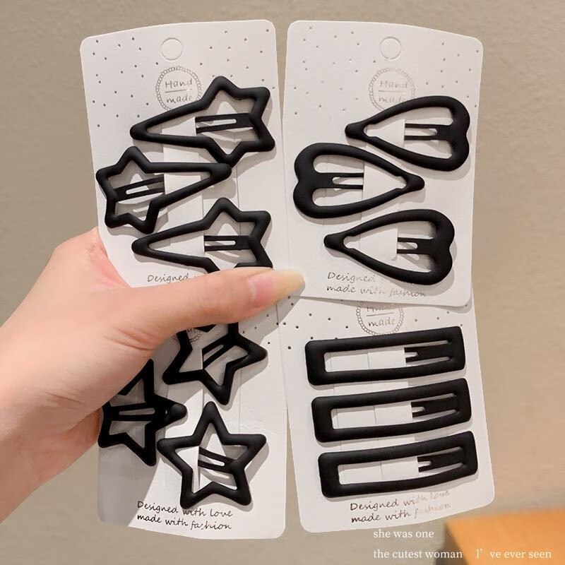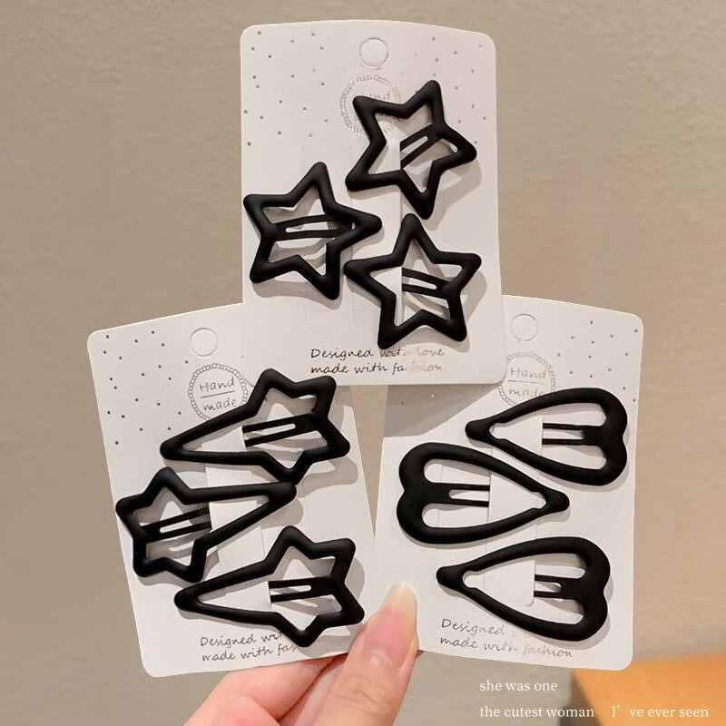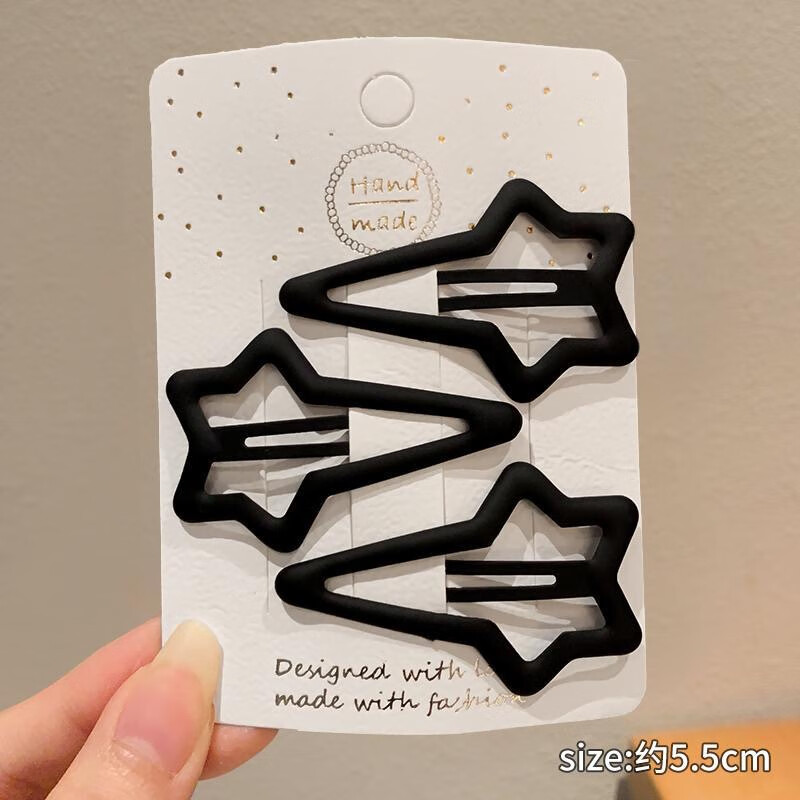 Black simple popular children's hair clip summer broken hair bangs hair clip forehead side clip headdress temperament bb clip TS268-02 five-pointed star 3-piece set