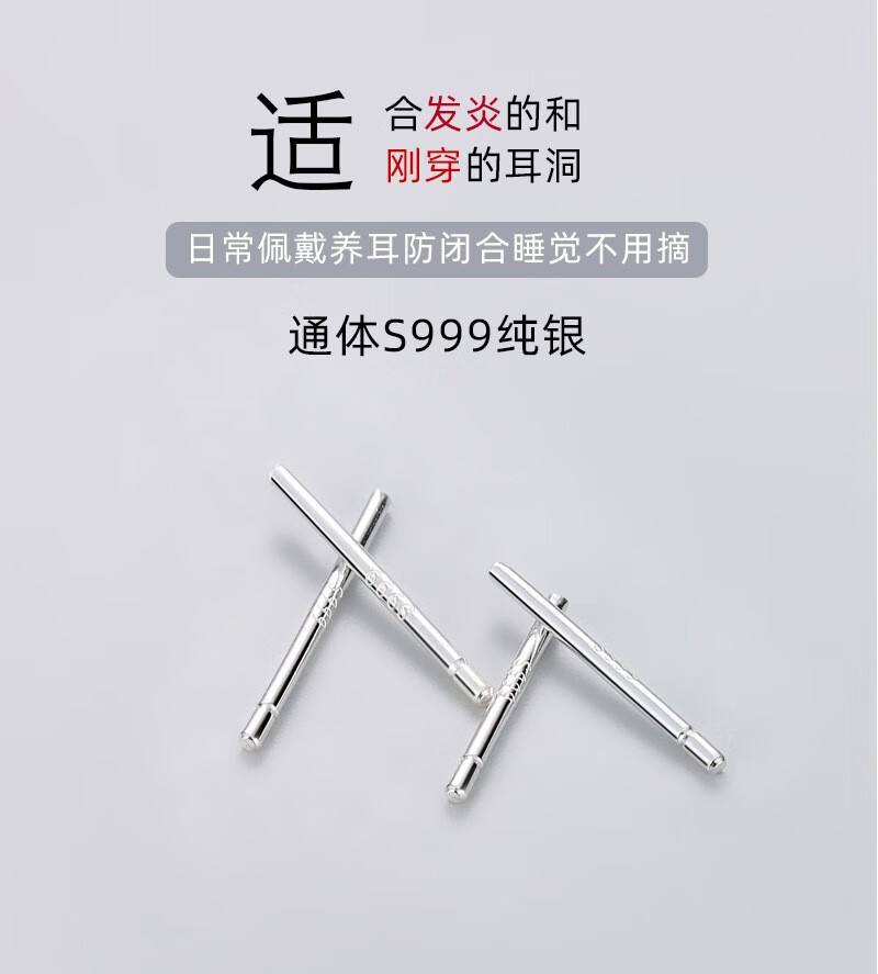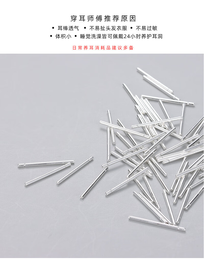 Eve Lauder S999 Pure Silver Earrings Ear Stud Ear Hole Stick Ear Hole No-Pick Female Simple Invisible Tremella Needle New Ear Piercing Students Anti-Blocking 11mm Tremella Stick (10 Pack) - Suitable for Thin Ear Lobes