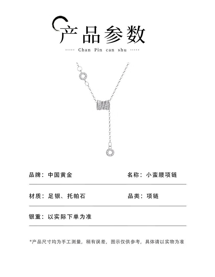 CHINA GOLD Pure Silver Necklace Women's Small Waist Topaz Silver Necklace Fashion Accessories Birthday and Holiday Gifts for Girlfriends and Wife Pure Silver Small Waist Topaz Necklace + Brand Gift Box