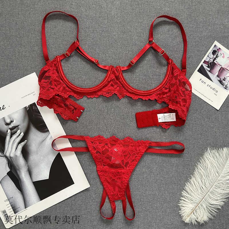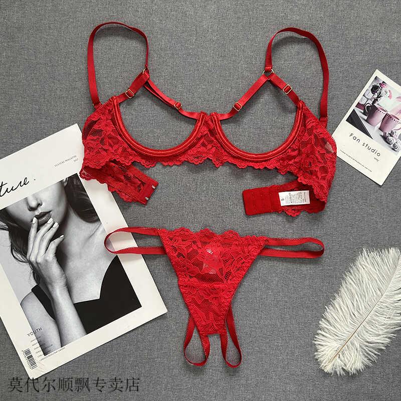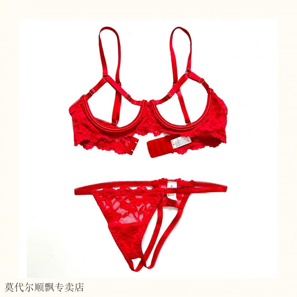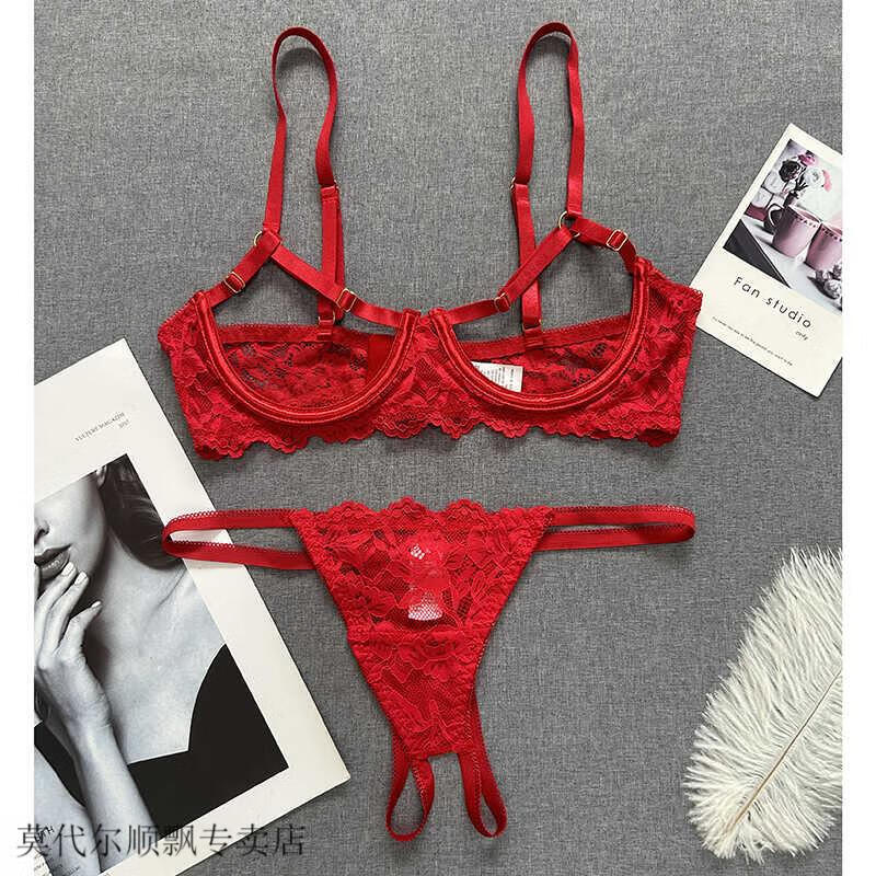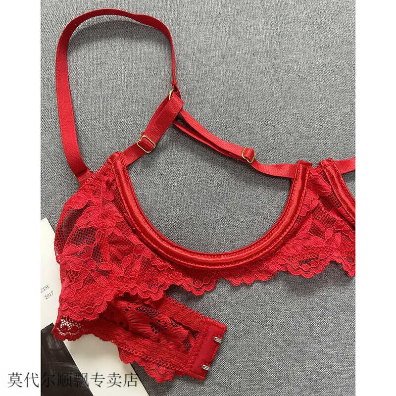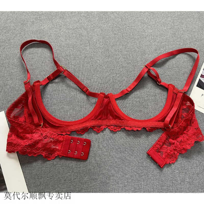 Modal small breasts show big French style steel ring push-up hollow bra sentimental underwear showing breasts bra bra set red L is too large for 85ABC