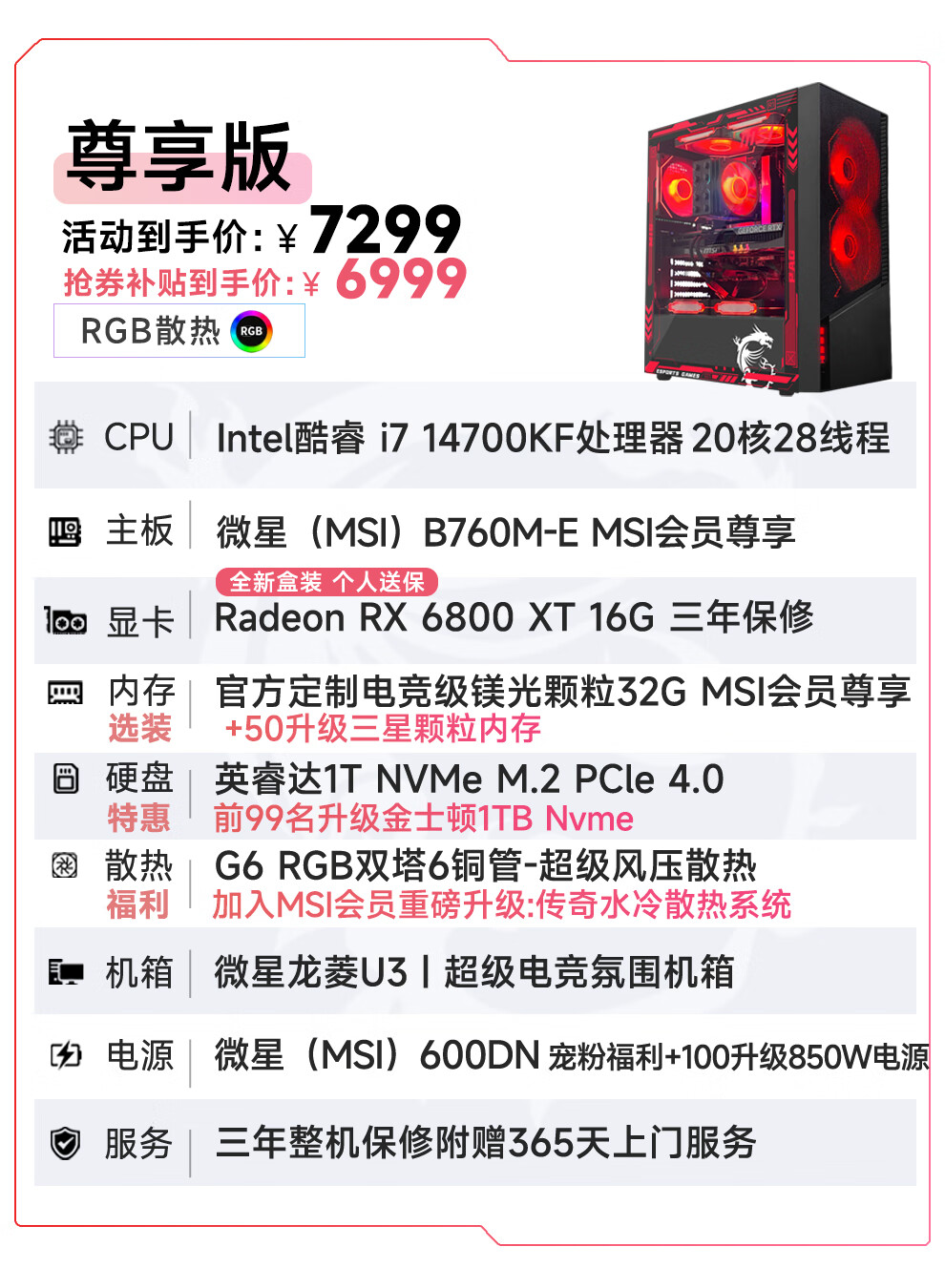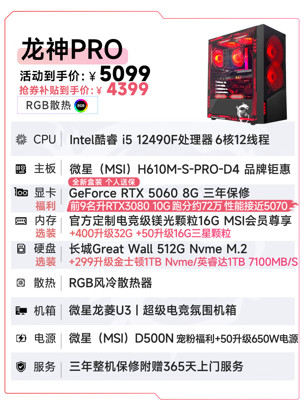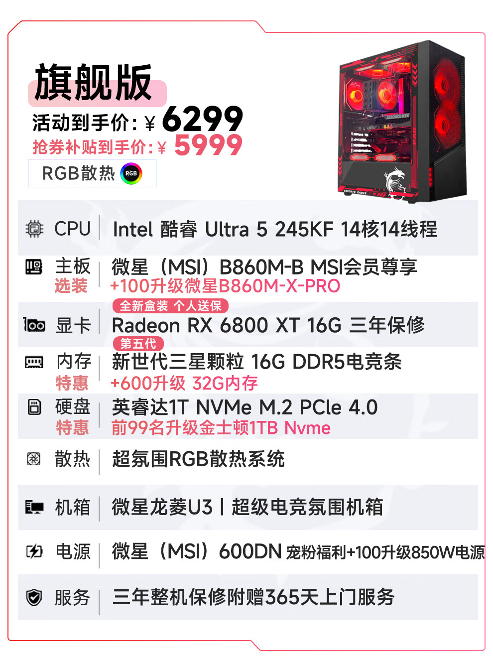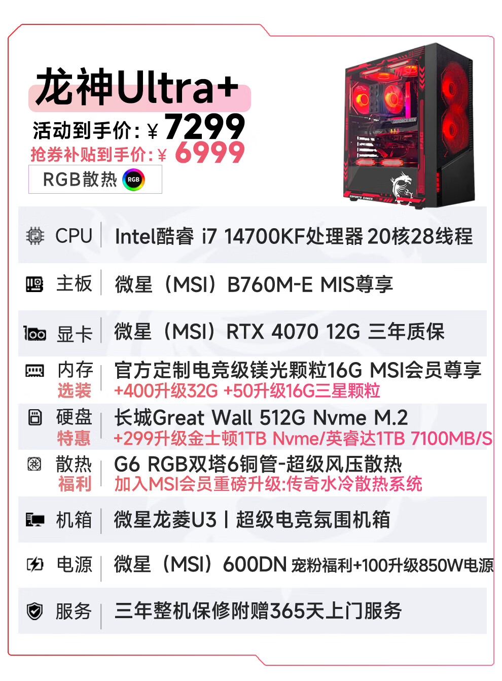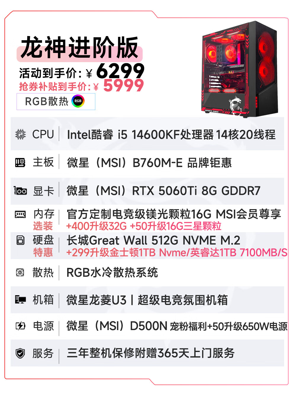 MSI 15th generation super new product U5 230F/14600KF/RTX5060Ti/4070 family bucket host Delta game live broadcast design desktop assembly computer DIY complete machine i514600KF+5060 8G-Longshen PRO+