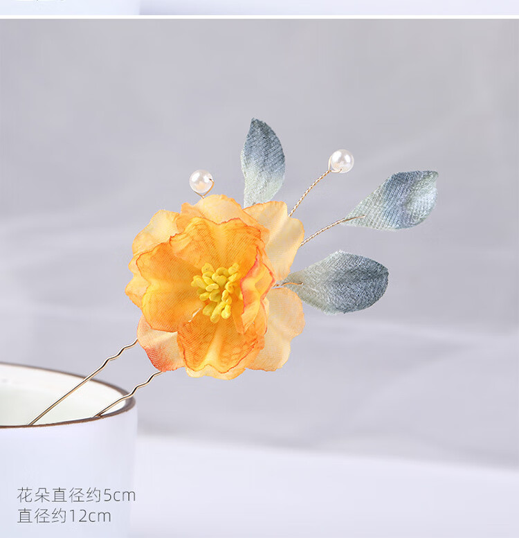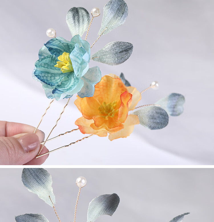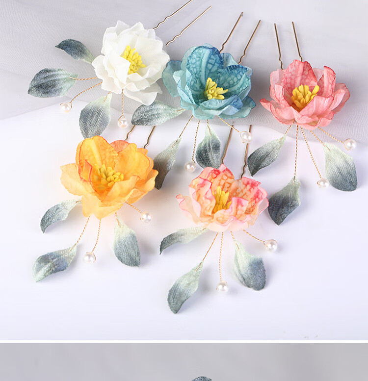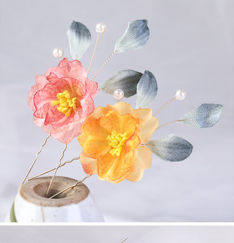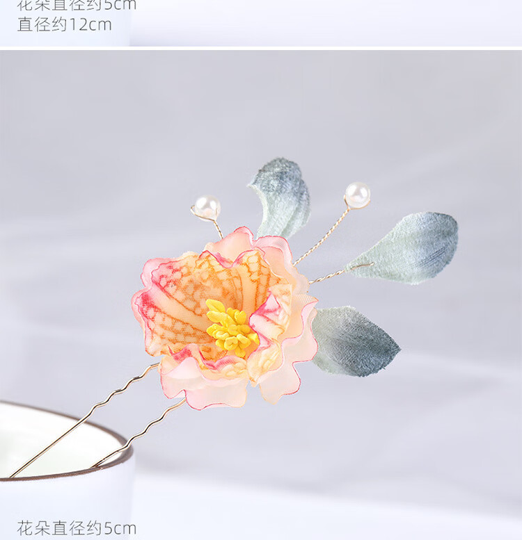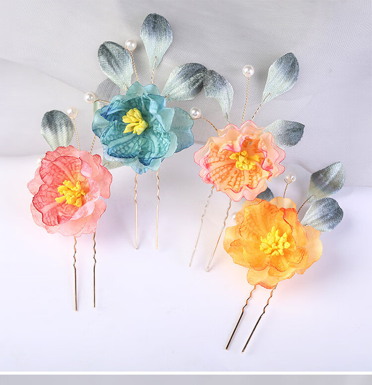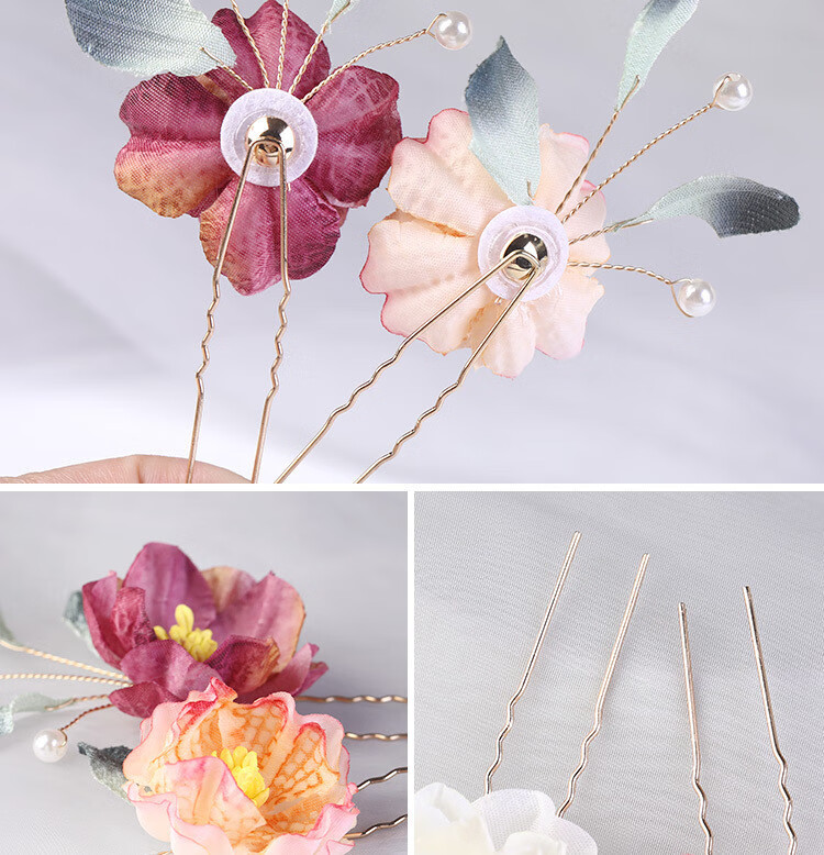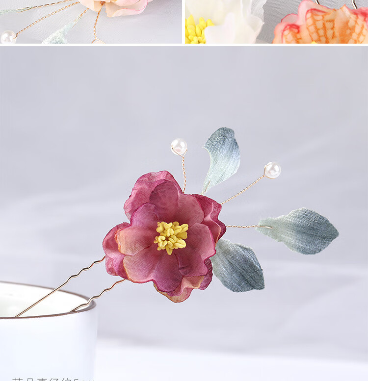 Meng Junchen, permed velvet leaf hairpin, ancient style hair accessories, silk flower headdress, Hanfu accessories, super fairy hairpin, daily U hairpin, flowers, permed velvet leaf - pink and purple