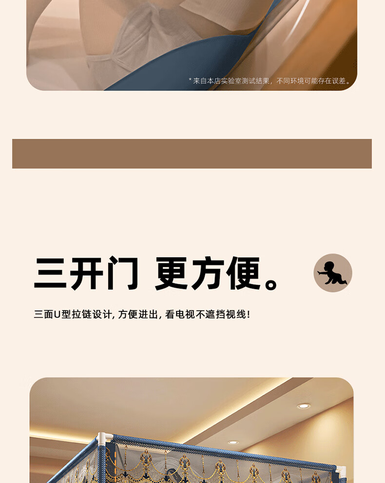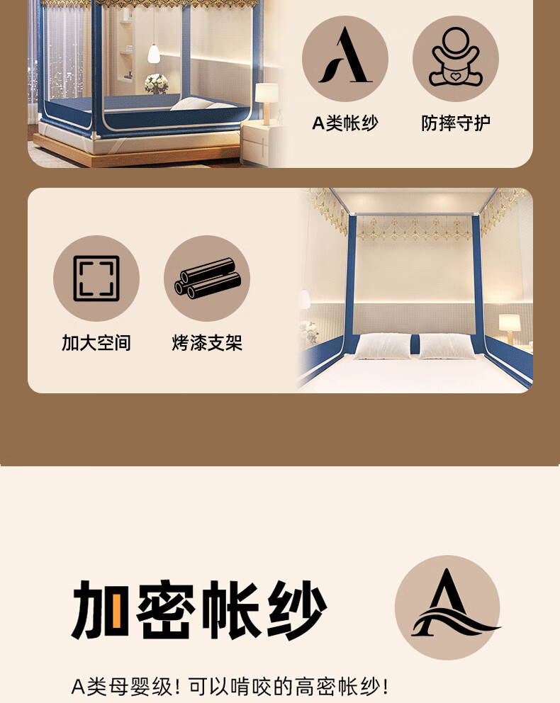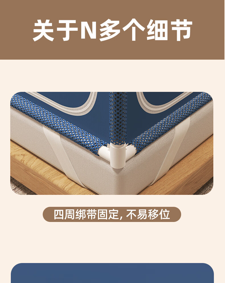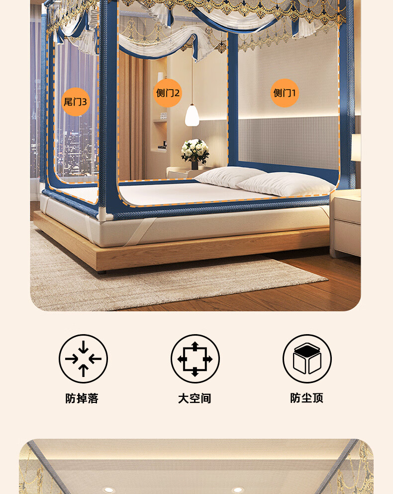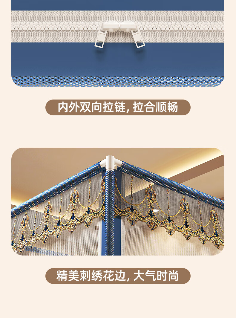 Anti-fall mosquito net for home bedroom children and babies to prevent falling out of bed Mongolian yurt dust-proof pattern net 2025 new style dark blue French lace tent edge romantic light luxury style 1.97m*1.8m*1.7m suitable for 1.8m bed