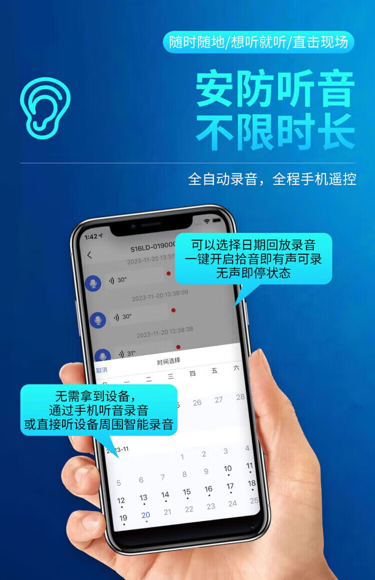 Jingxiu Jiangshan spy recording artifact remote audio recorder can be connected to a mobile phone for real-time listening, high-definition noise reduction, mobile phone control, ultra-long standby positioning, dedicated one-button portable recorder, 100 days of standby + real-time recording/real-time listening + real-time positioning remote switch