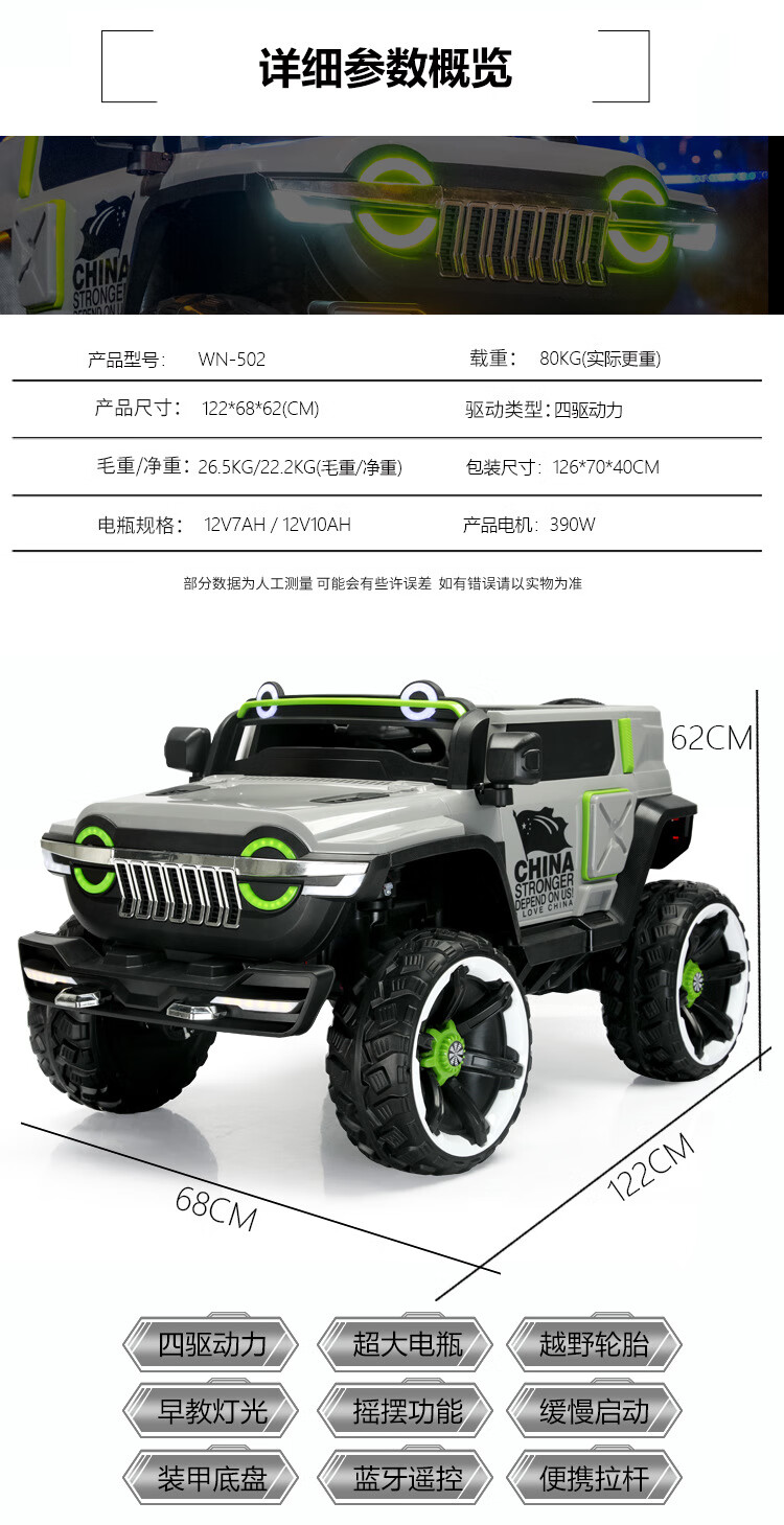Z-R-P children's electric car small off-road vehicle male and female baby birthday gift remote control toy car small tank white + luminous wheel + 12V14 leather seat + soft wheel