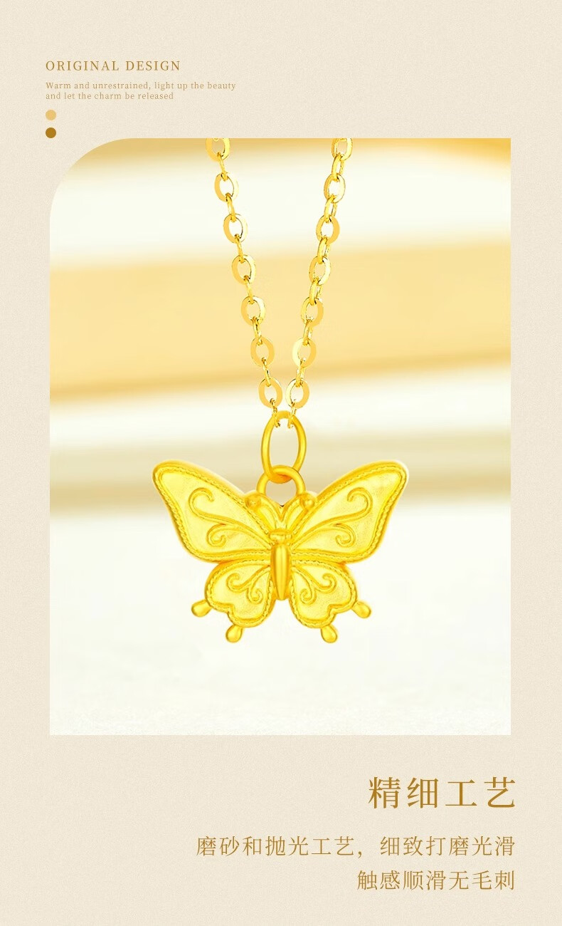 CHINA GOLD 18K gold smart butterfly pendant for women 2025 new versatile old Valentine's Day birthday gift for girlfriend and wife 18K gold butterfly pendant with free silver chain about 0.2g