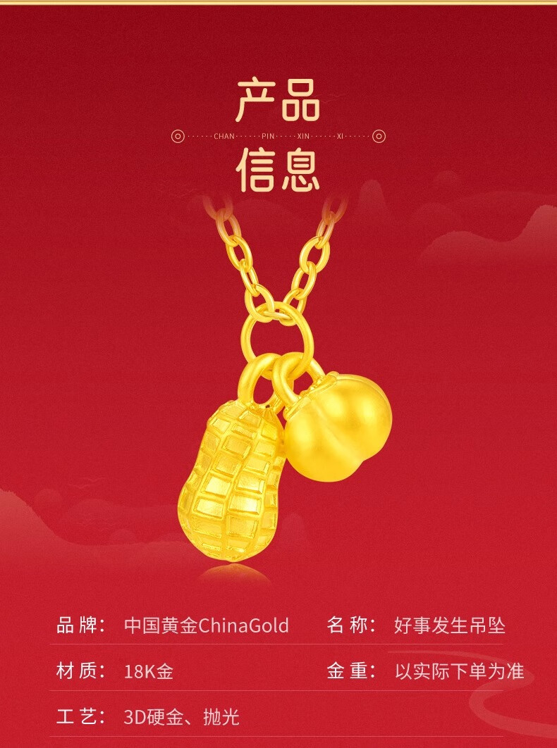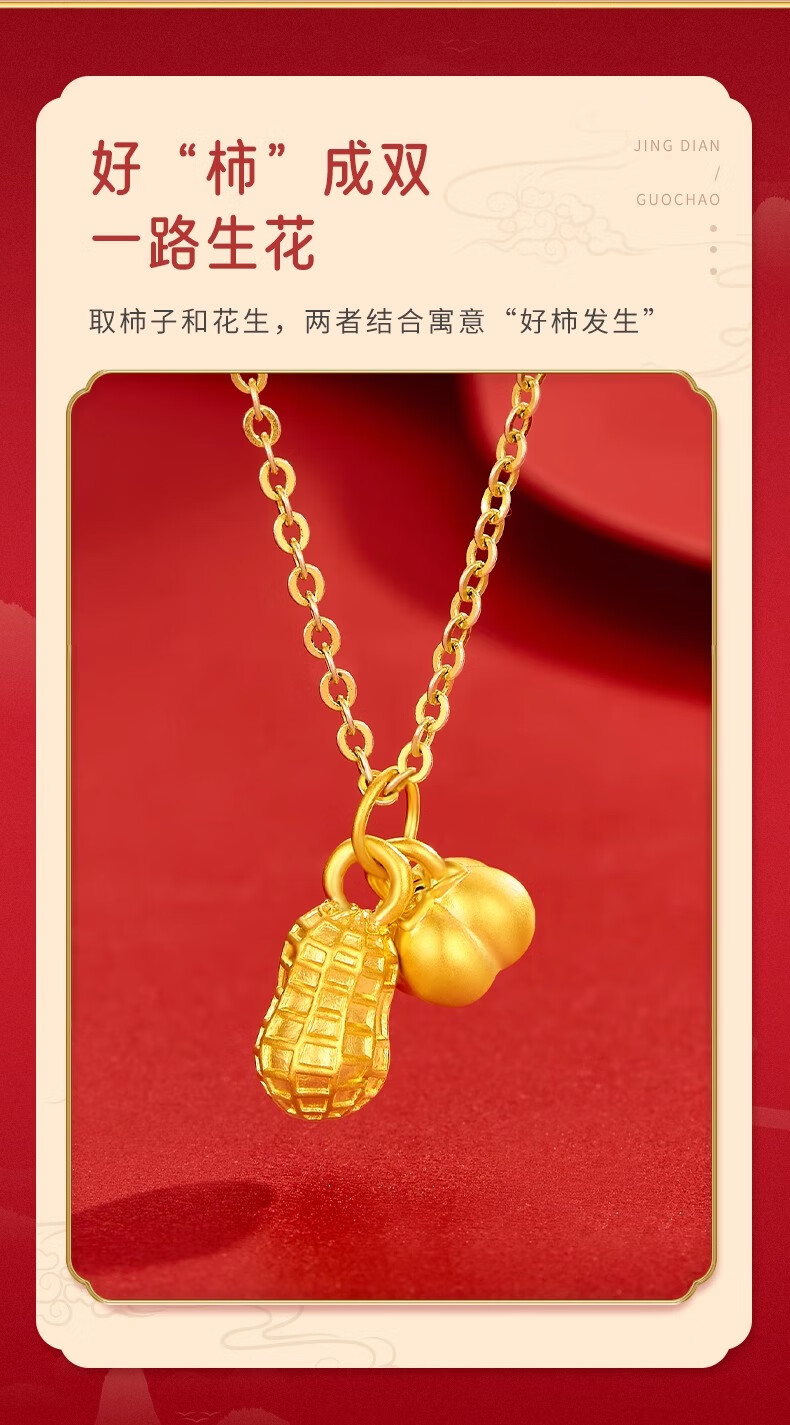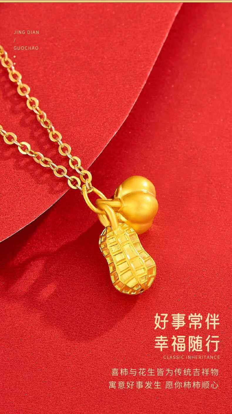 CHINA GOLD 18K Gold Good Persimmon Peanut Pendant Women's New Simple Persimmon Valentine's Day Birthday Gift for Girlfriend and Wife 18K Gold Peanut Pendant Free Silver Chain Approximately 0.32g