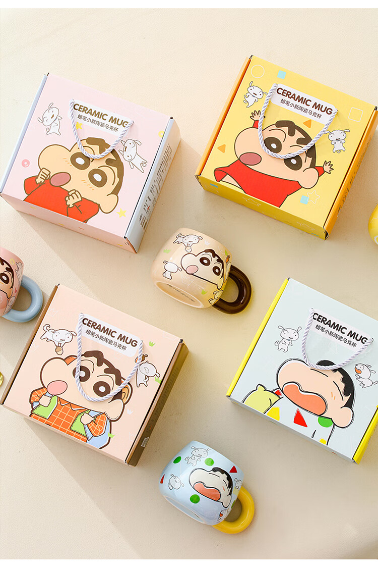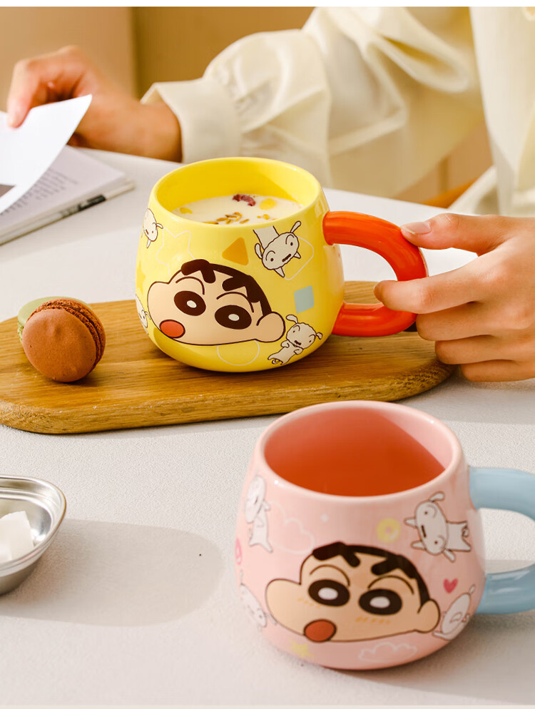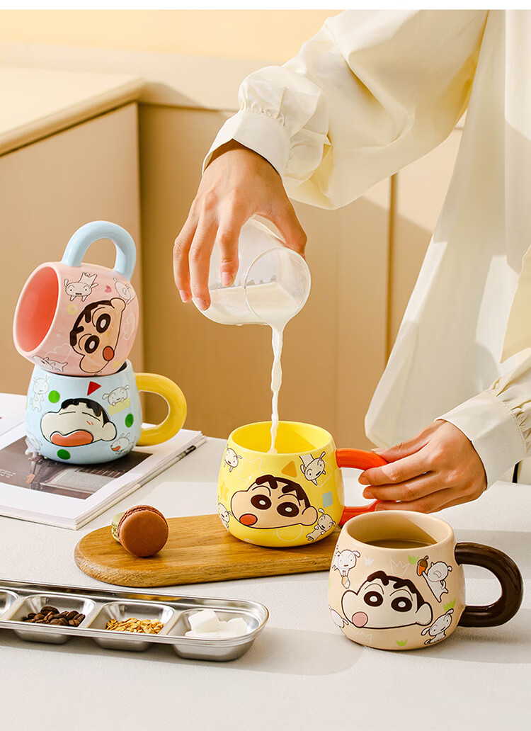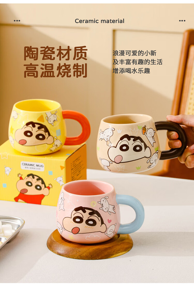 Crayon Shin-chan Big Belly Mug Girls Good-looking Gift Coffee Cup Ceramic Water Cup Drinking Cup Office Couple Mug Crayon Shin-chan Mug Color Box-Blue