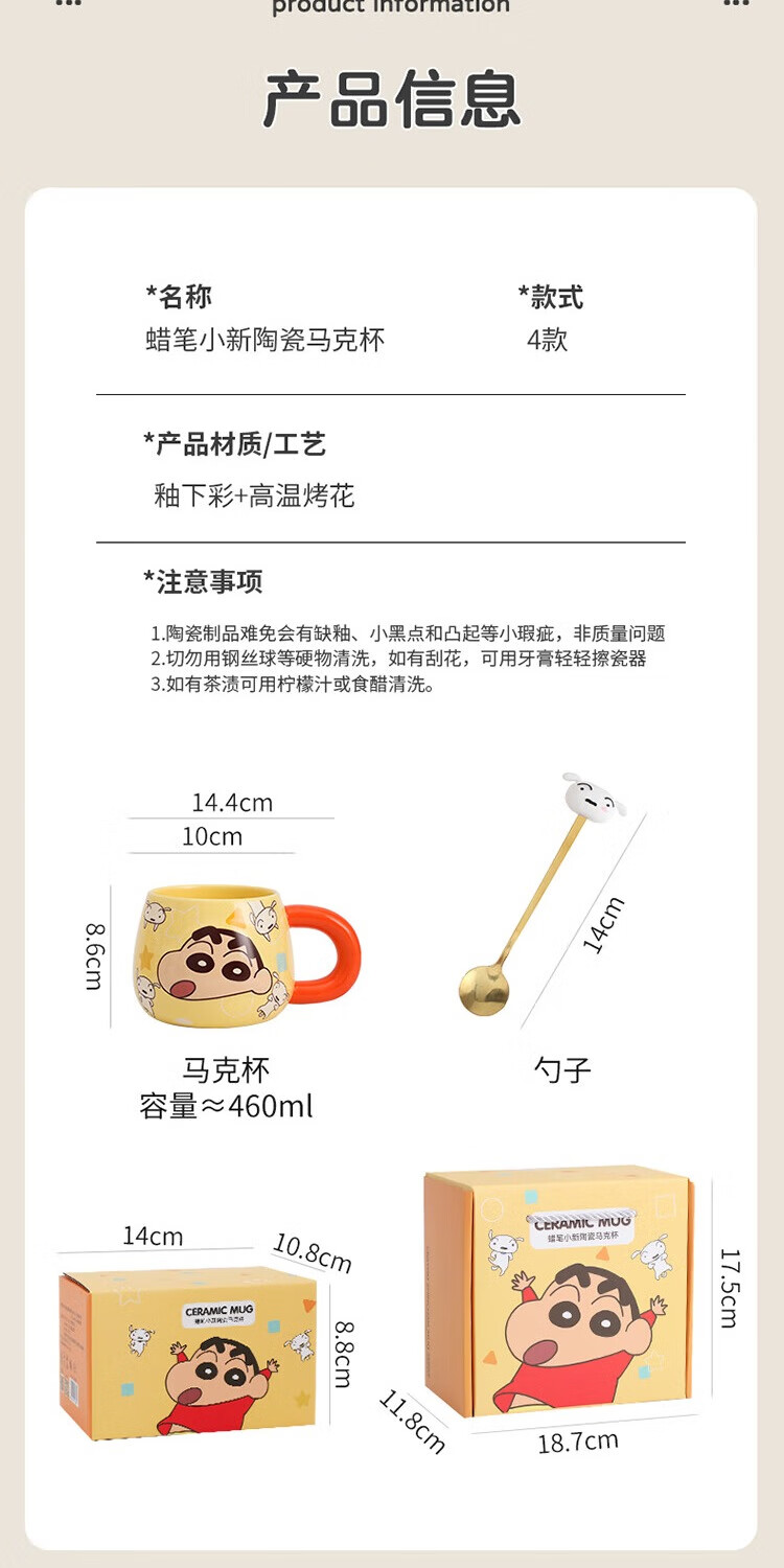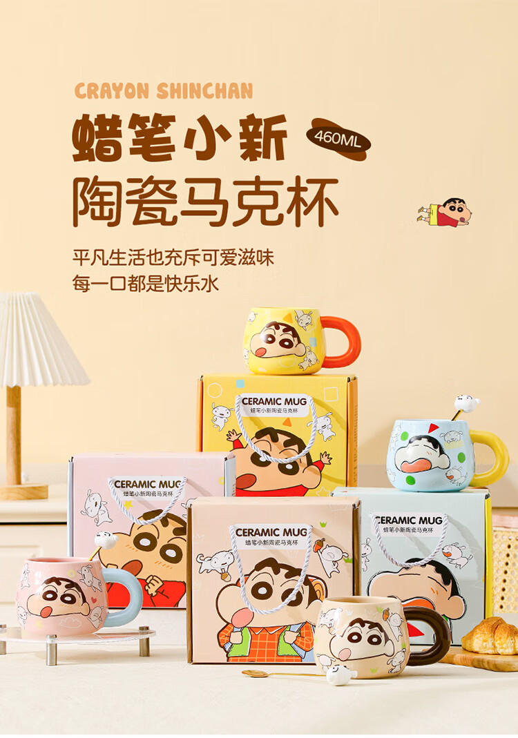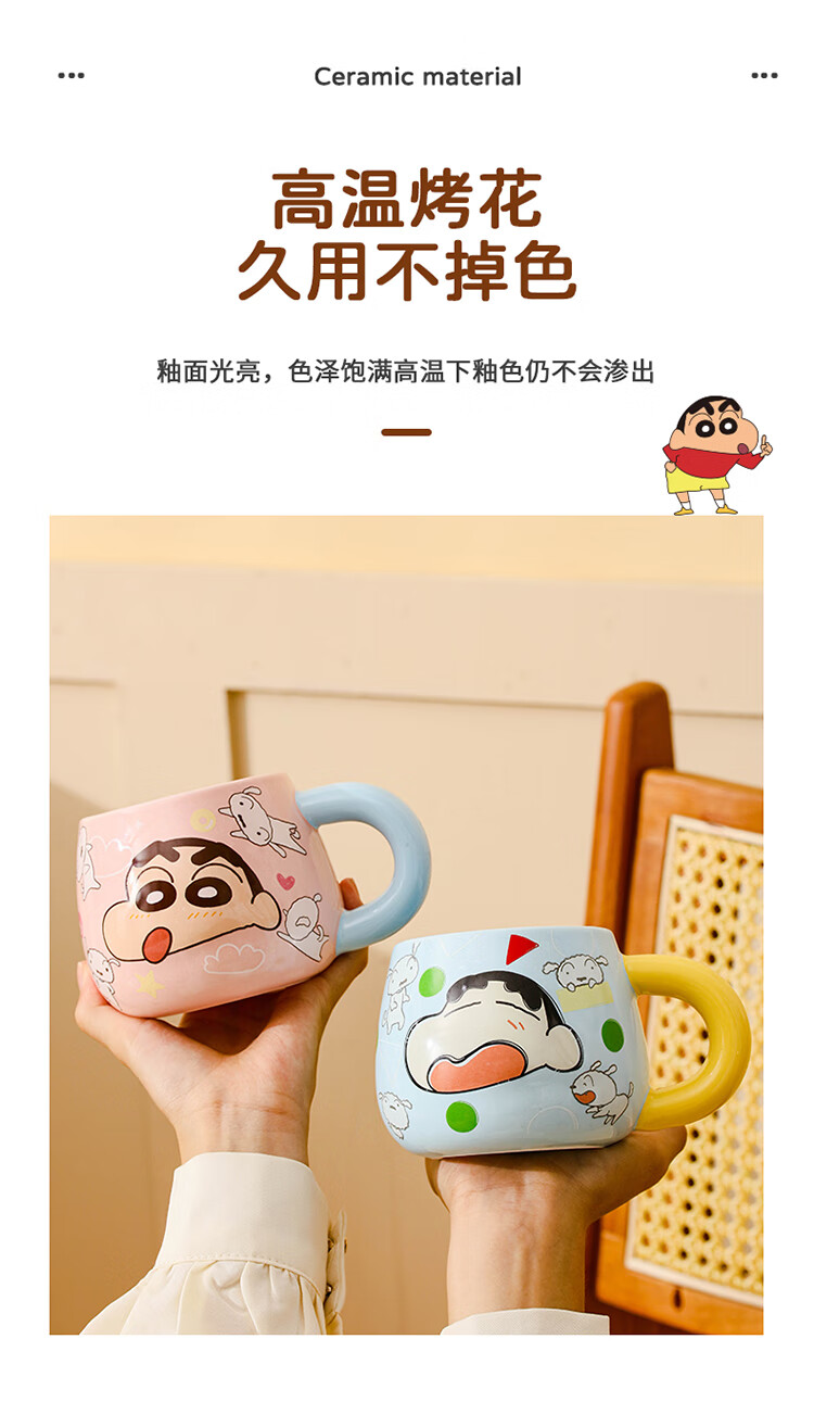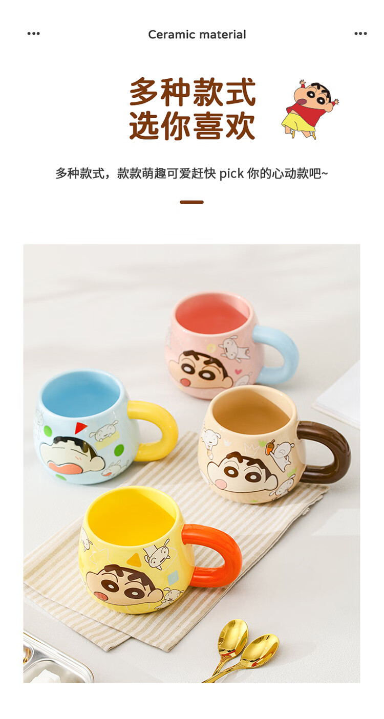 Crayon Shin-chan Big Belly Mug Girls Good-looking Gift Coffee Cup Ceramic Water Cup Drinking Cup Office Couple Mug Crayon Shin-chan Mug Color Box-Blue