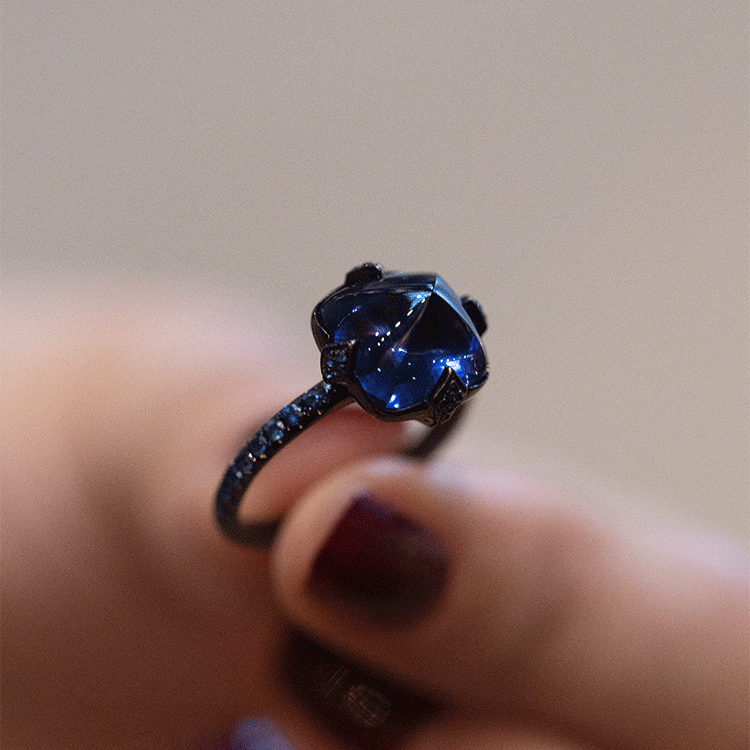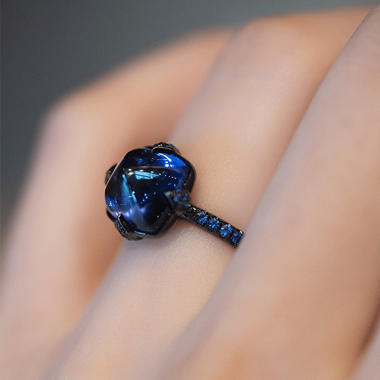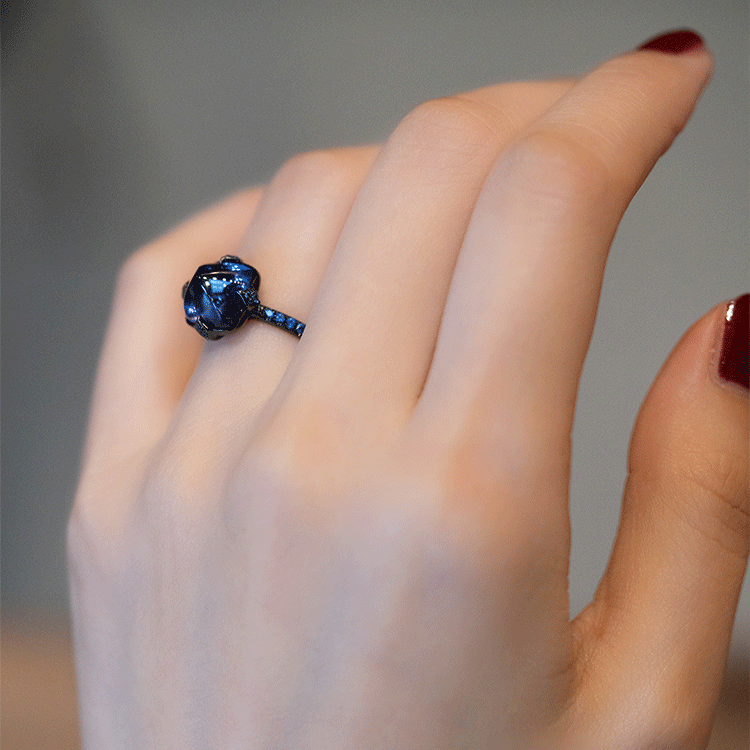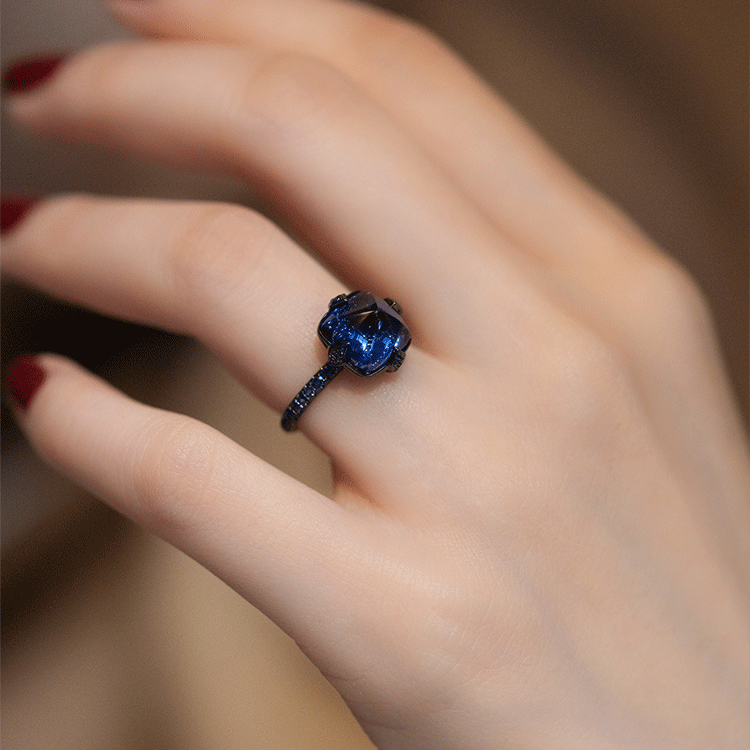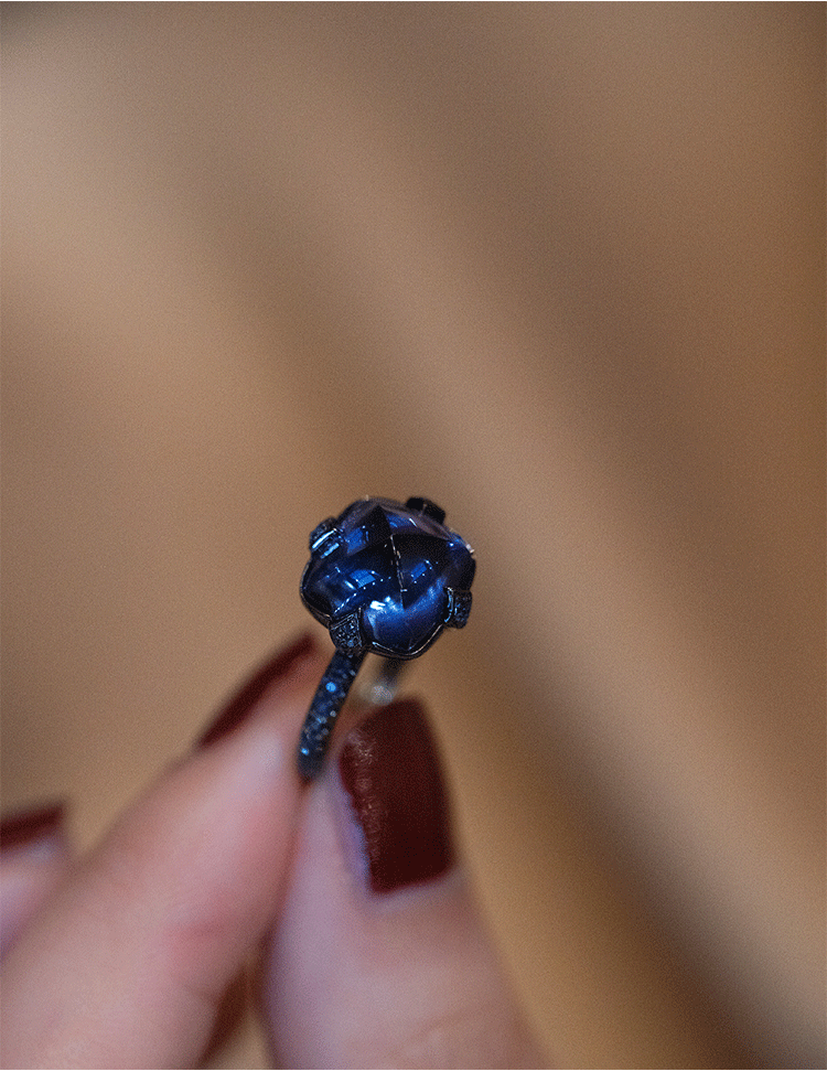 Cargilla Ring Women's Black Gold Tanzanite Dark Blue Zircon Fashionable Creative Ring Ring - Opening Adjustable Opening Adjustable