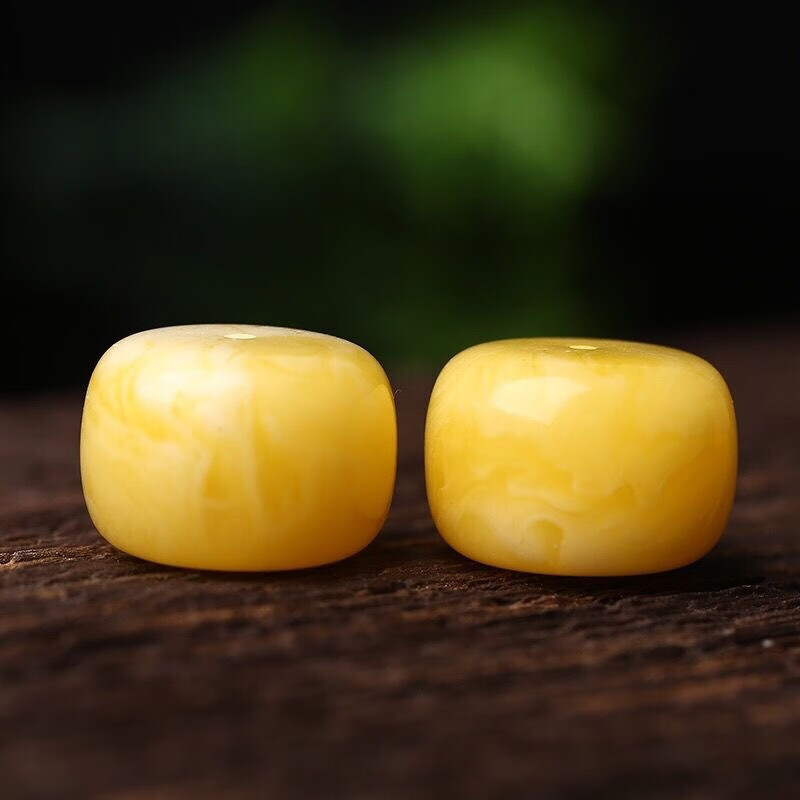 DL 1998 Fat Donglai same style beeswax single bead amber button button wheel bead abacus bead loose bead round bead DIY literary toy with chicken fat yellow 10mm