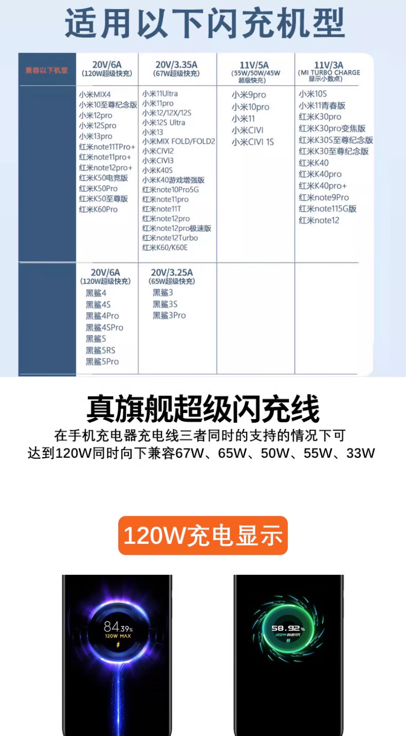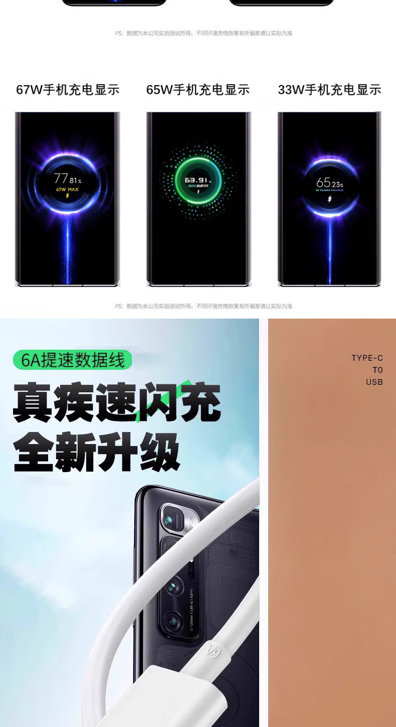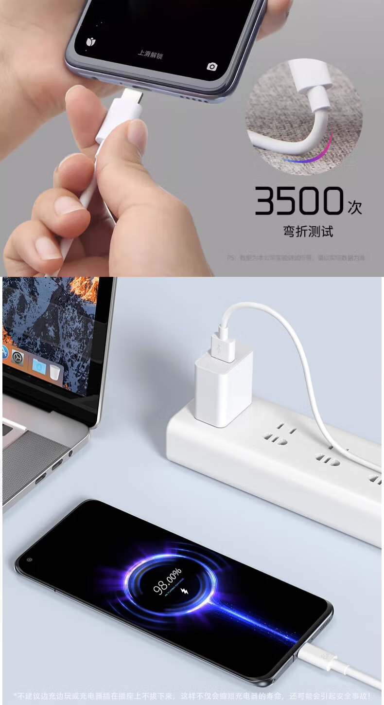 Suitable for Xiaomi charging cable 120W fast charging type-c data cable 67W Redmi K40/50/60/note Xiaomi 14/13/12/Pro/Mix/11/10s flash charger 6A Xiaomi Redmi 120W/67W Display decimal point 1.5 meters