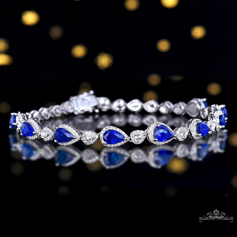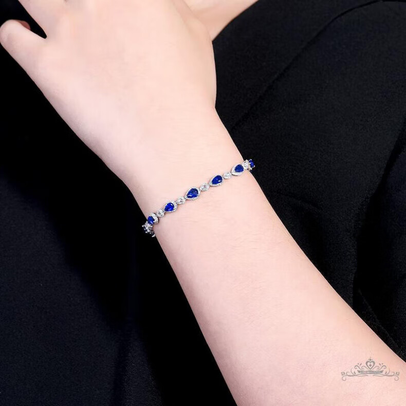 HEEKAIYI Sapphire Bracelet Sri Lanka Royal Blue Bracelet 18K Gold Diamond 520 Valentine's Day Birthday Gift for Wife Selected 3.73 carats/AIGS/Royal Blue