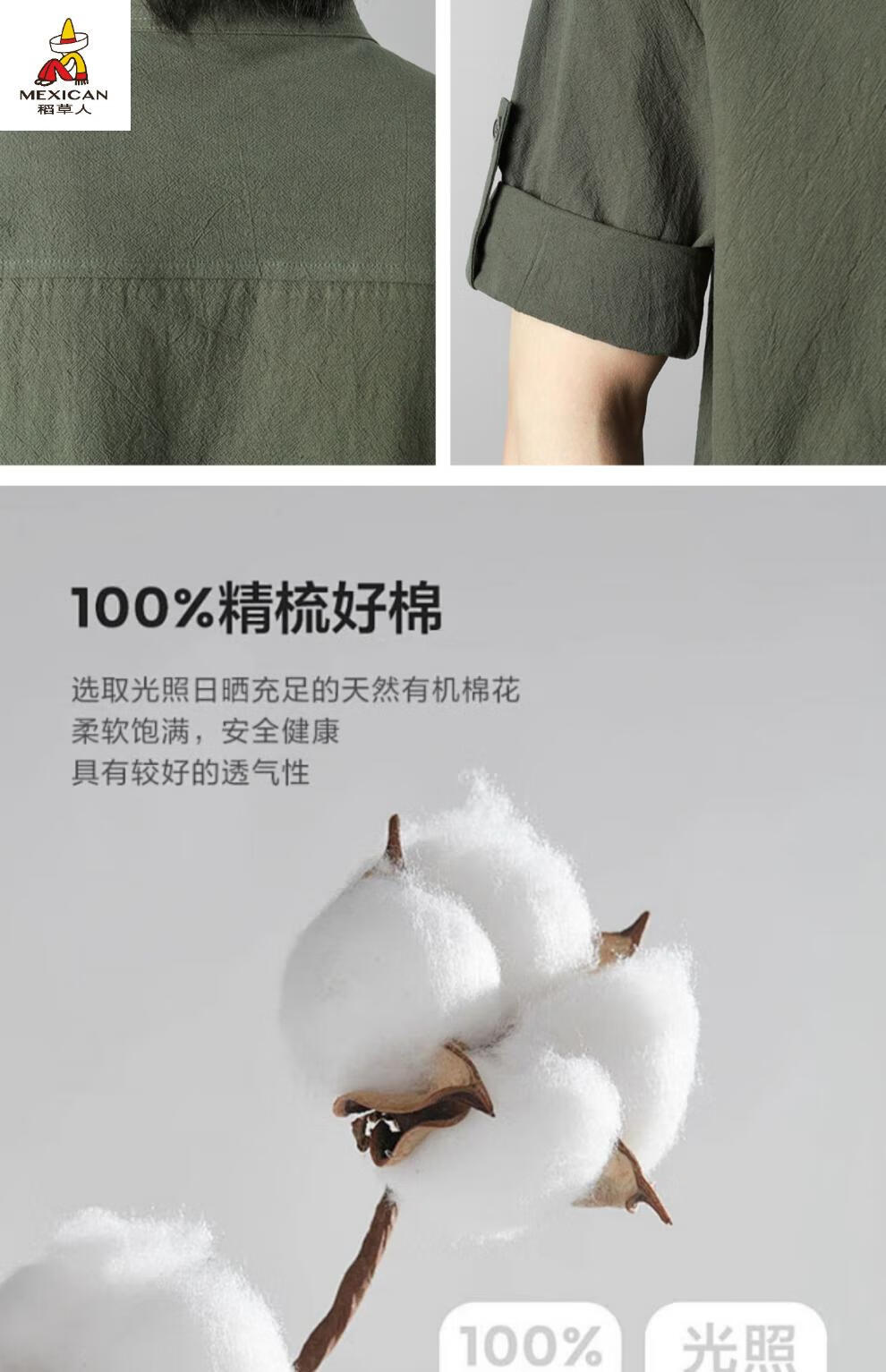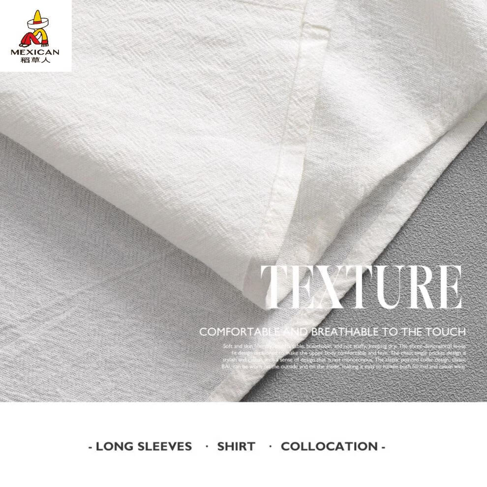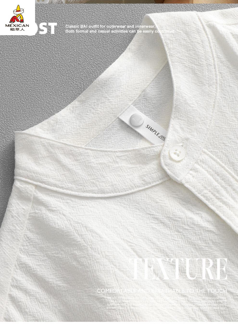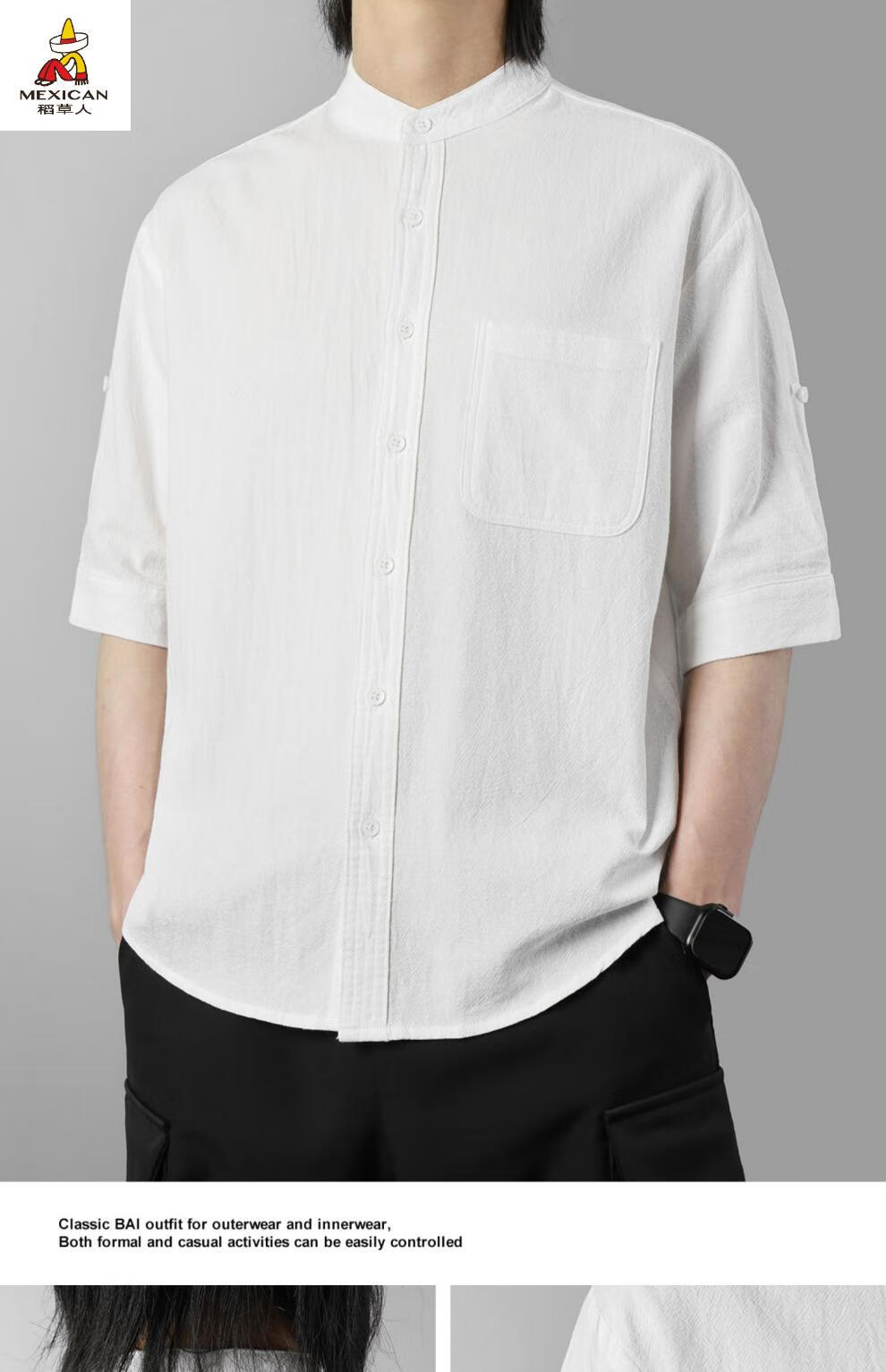 Scarecrow men's stand collar white short-sleeved shirt men's Japanese pure cotton round neck three-quarter sleeve T-shirt Henry collar textured shirt C1020-white-three-quarter sleeve XL Recommended 110-125Jin Jin equals 0.5 kg