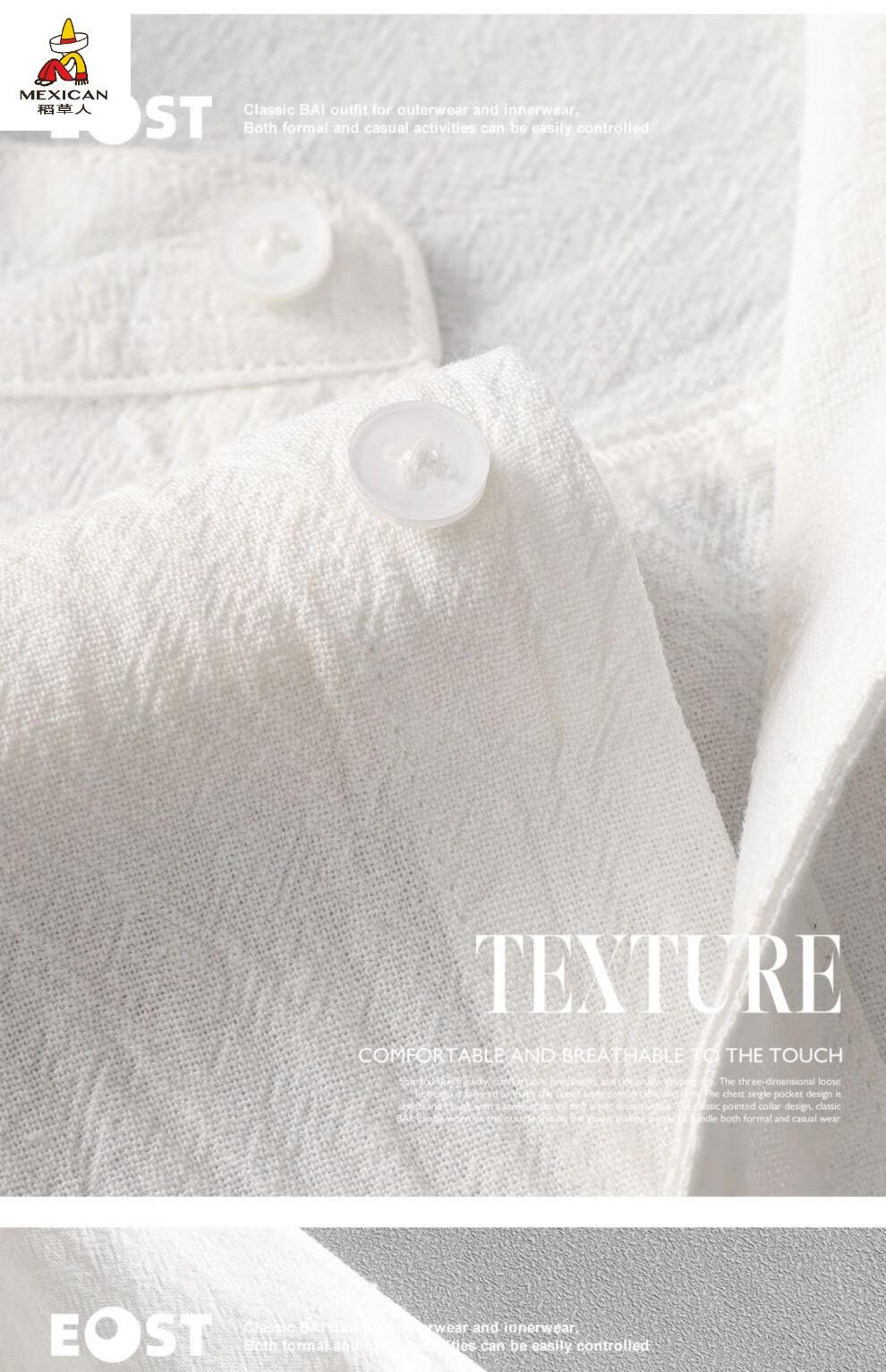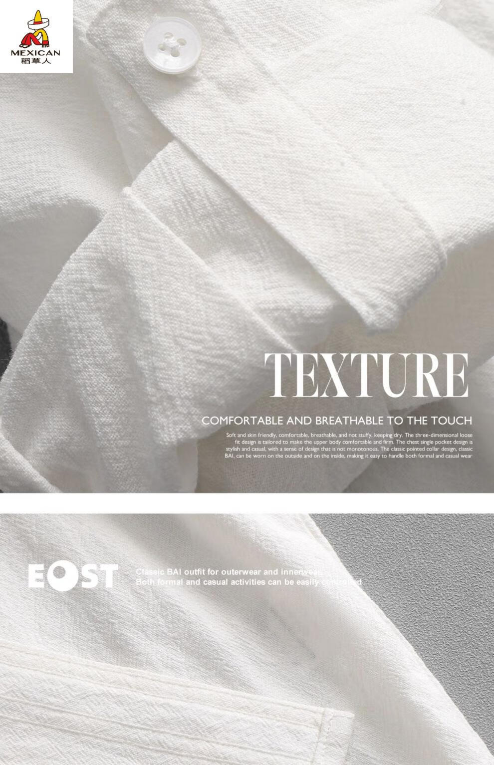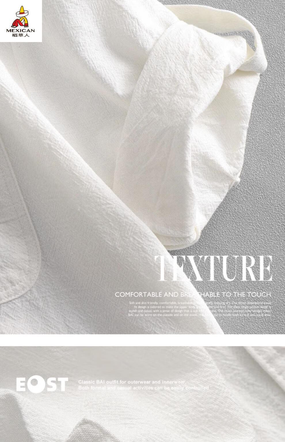 Scarecrow men's stand collar white short-sleeved shirt men's Japanese pure cotton round neck three-quarter sleeve T-shirt Henry collar textured shirt C1020-white-three-quarter sleeve XL Recommended 110-125Jin Jin equals 0.5 kg