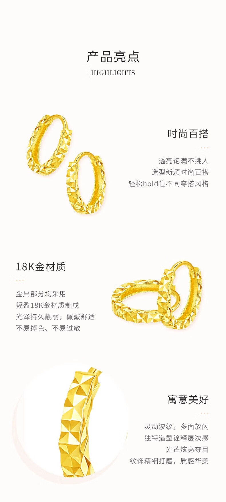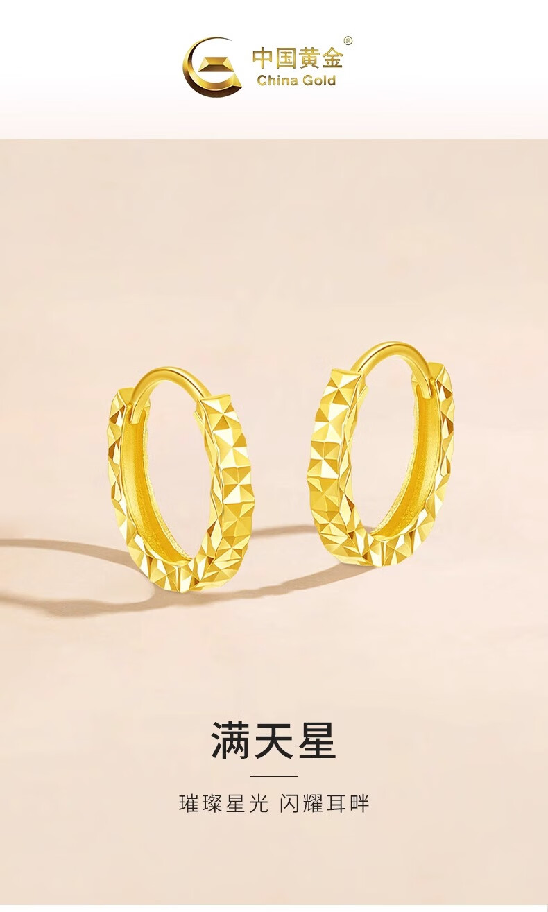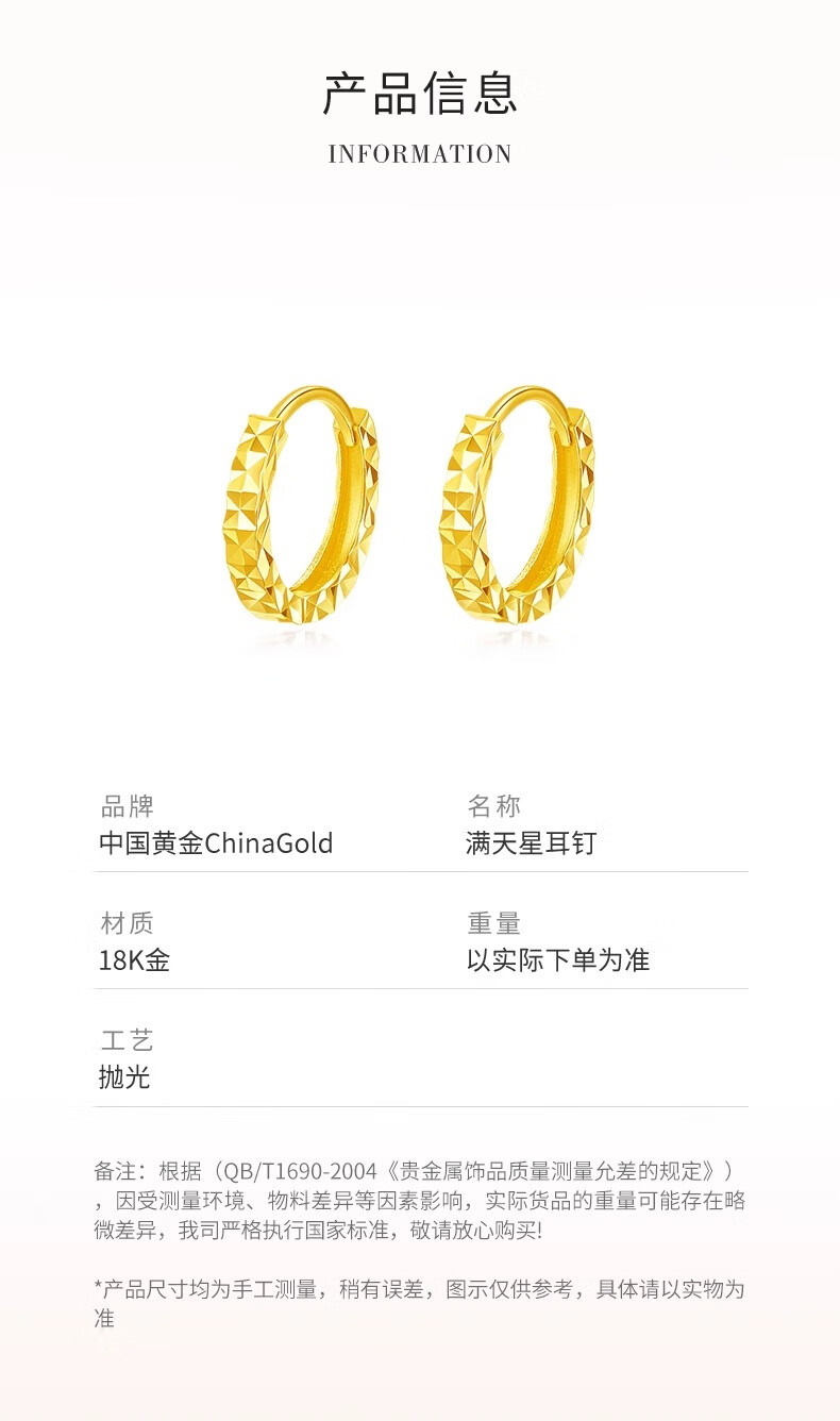 CHINA GOLD 18K gold diamond-faced baby's breath earrings for women 2025 new earrings Valentine's Day birthday gift for girlfriend and wife Jingsuda 18K gold baby's breath earrings one pair about 0.65g