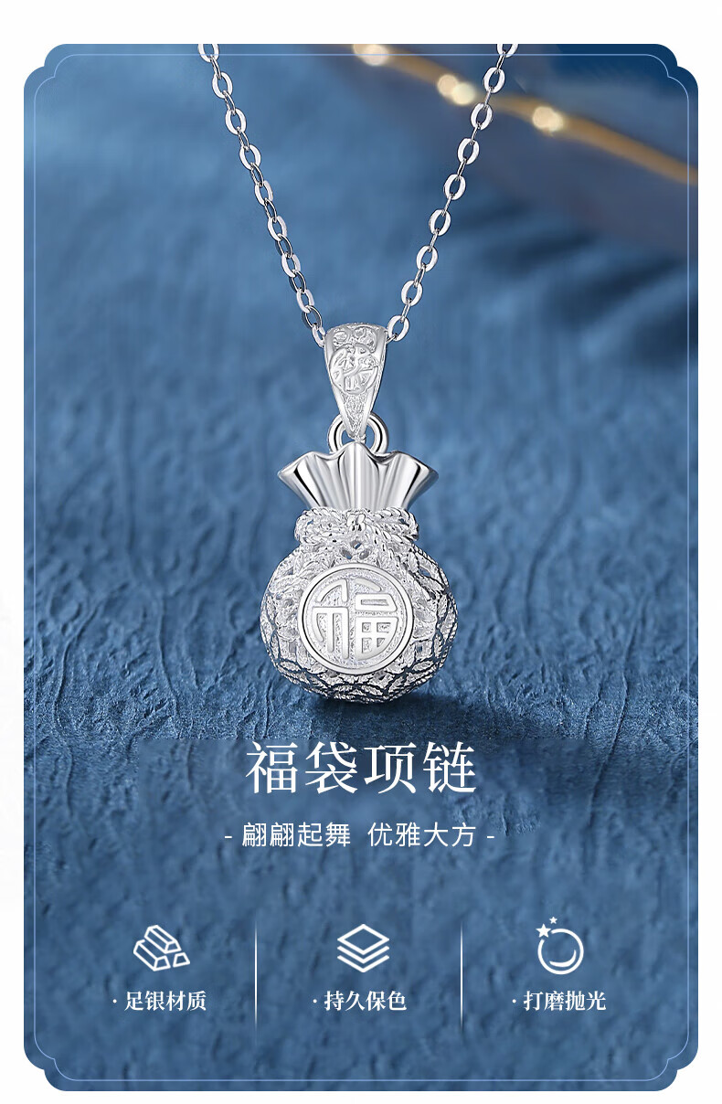 CHINA GOLD 99 Pure Silver Transfer Lucky Bag Necklace Fashionable Sterling Silver Clavicle Chain Jewelry Pendant Birthday Gift for Girlfriend Collection Lucky Bag Necklace Selection Gift Box