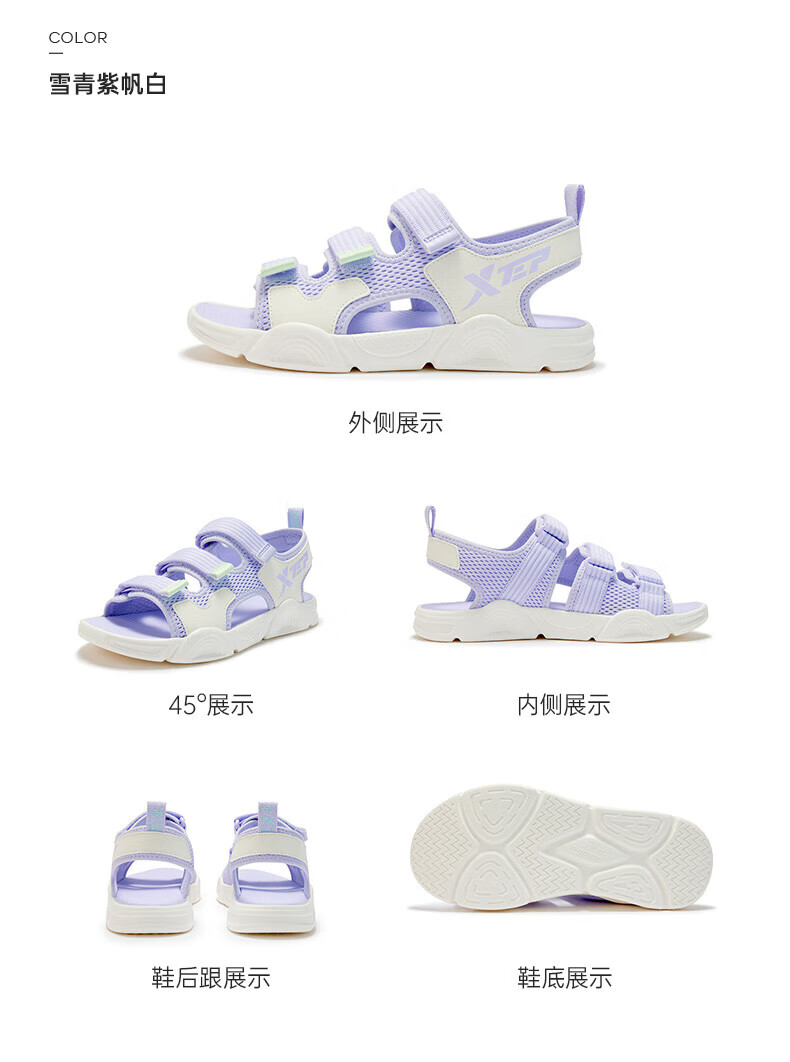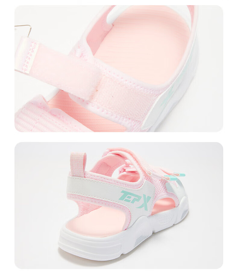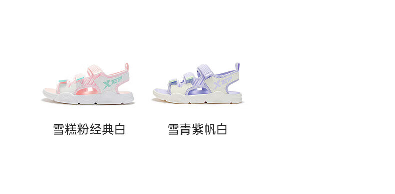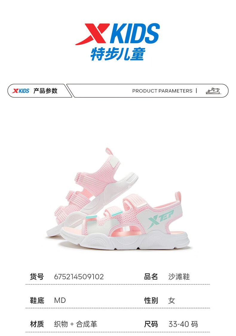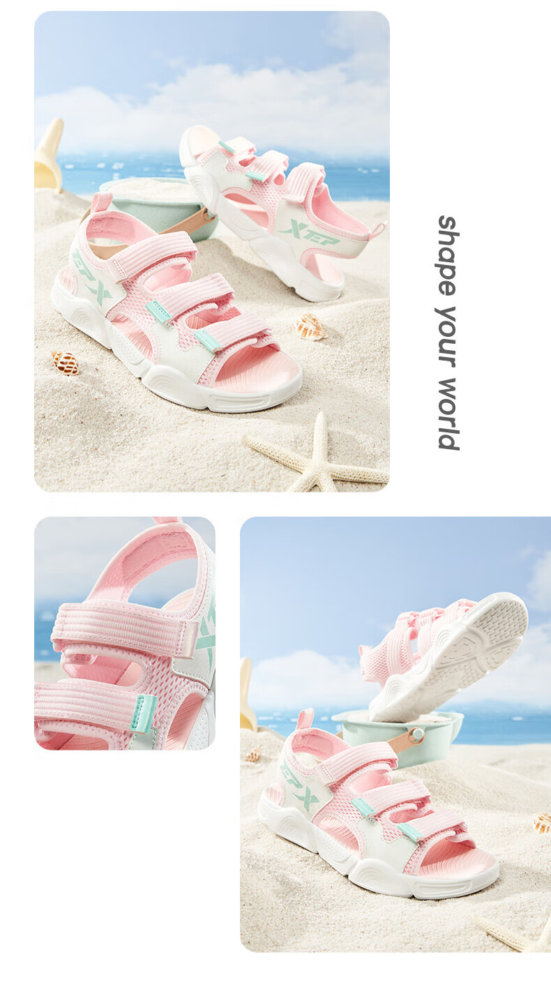 Xtep children's beach shoes for summer for girls, middle and large children with strap design for easy putting on and taking off, comfortable, breathable, fashionable and versatile sandals, ice cream pink/classic white 36