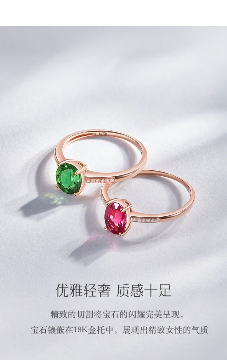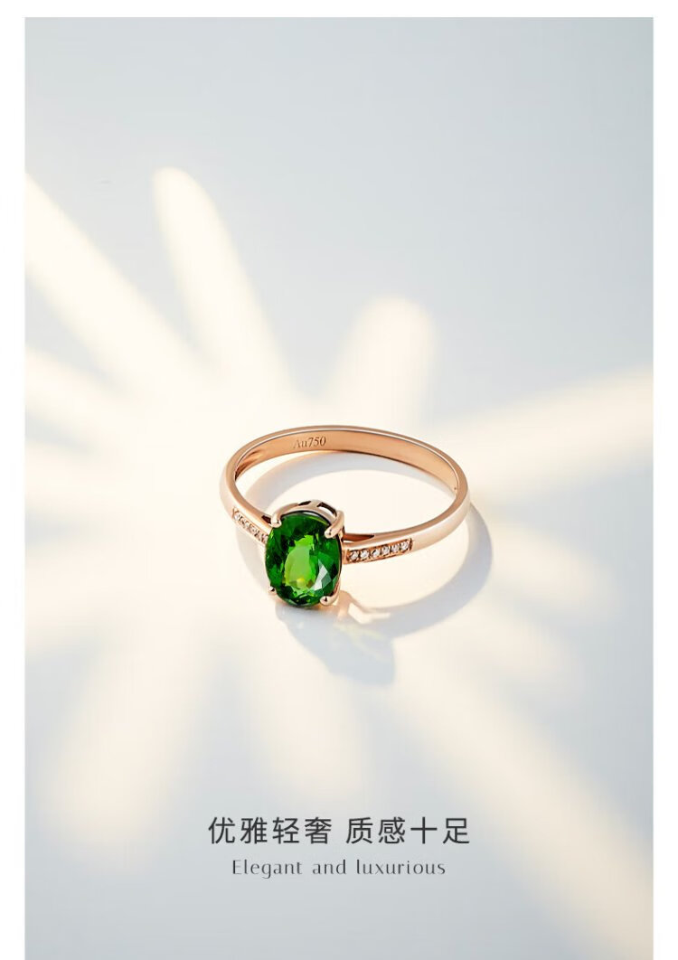 Yicai Jewelry Natural Green Tourmaline Gemstone Ring 18K Gold Diamond Ring Female Birthday Gift for Girlfriend and Lover 0.8 Carat Green Tourmaline Ring 18-23