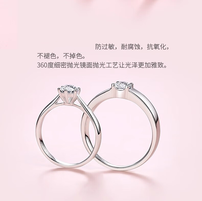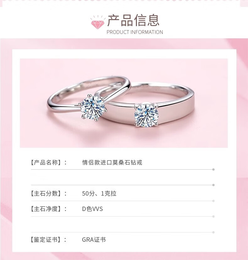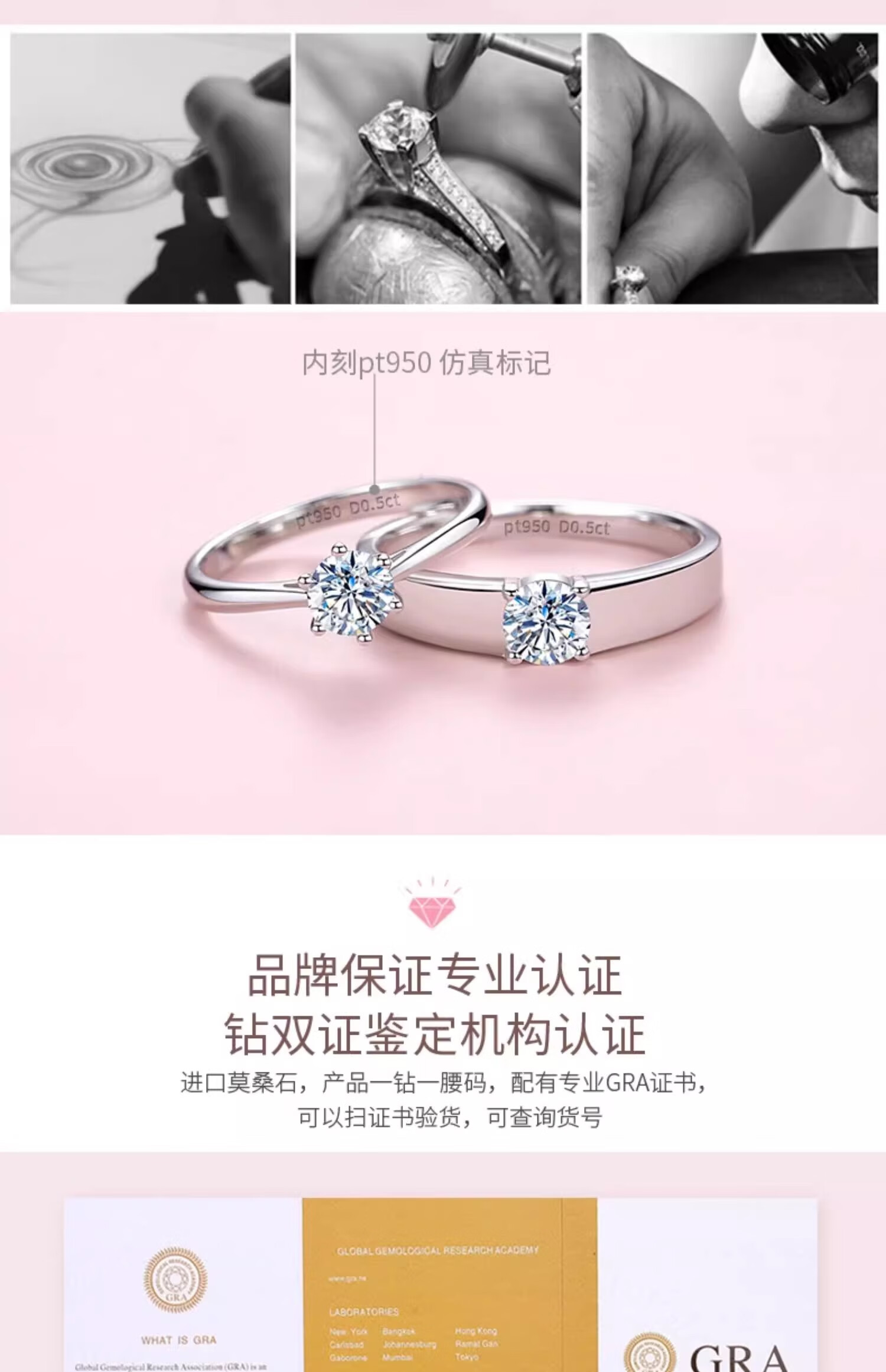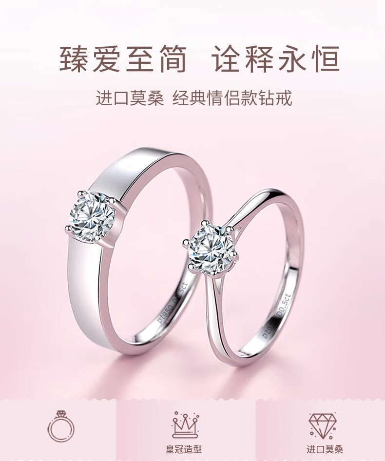 Pt950 platinum ring imported moissanite diamond ring 1 carat couple ring male and female wedding proposal birthday gift light luxury model - female ring - rose gift box default live closed note circle number