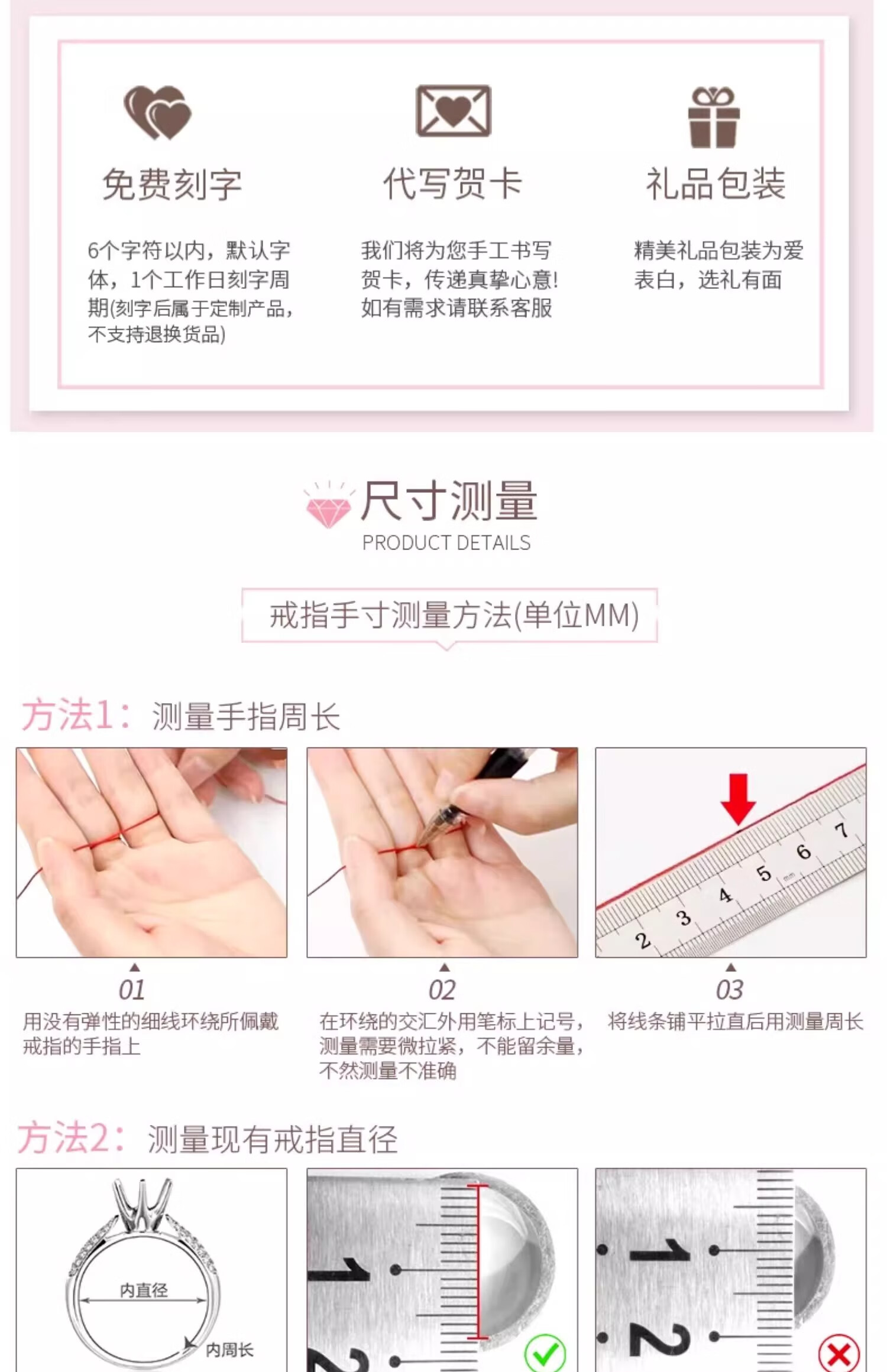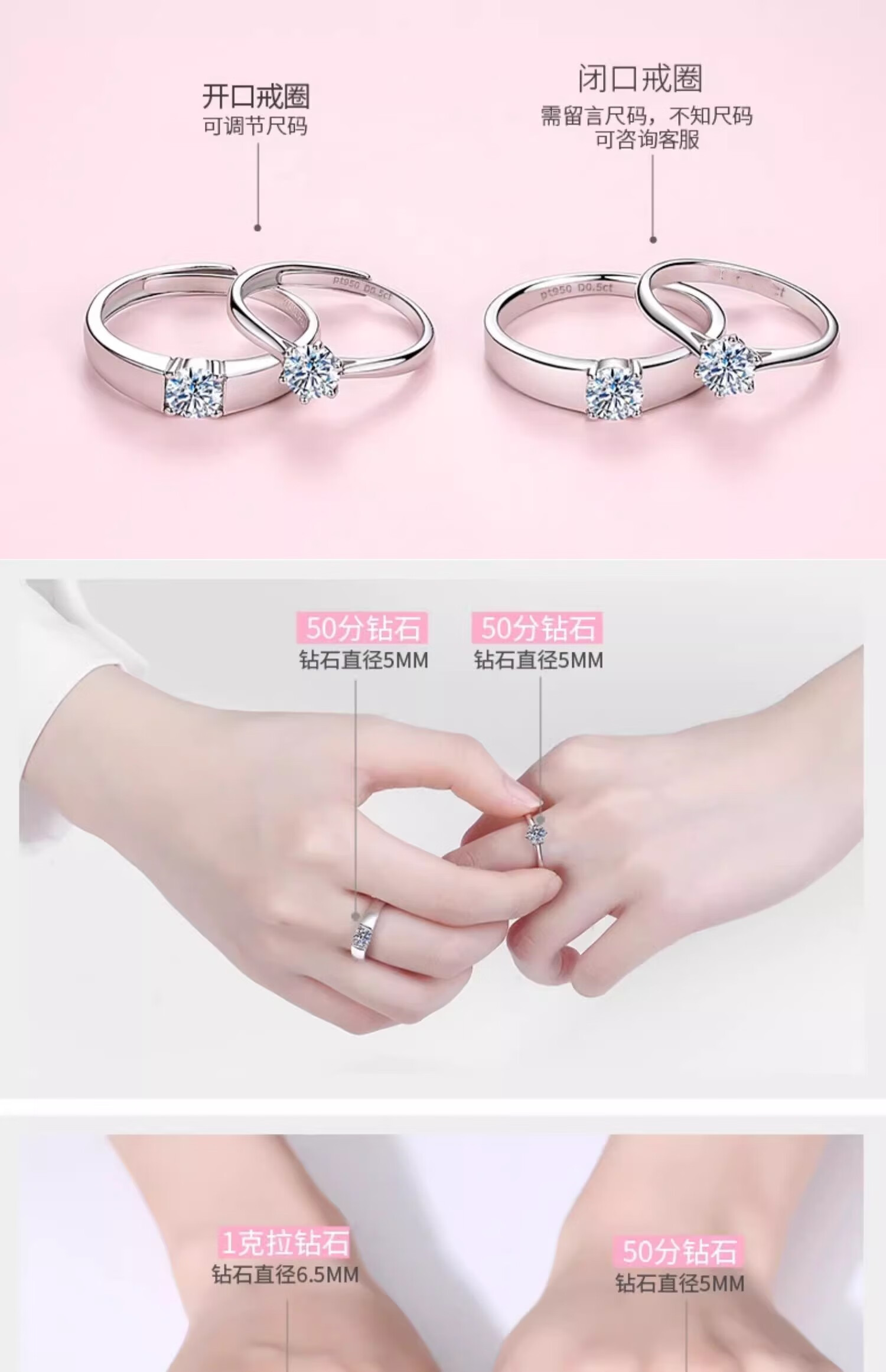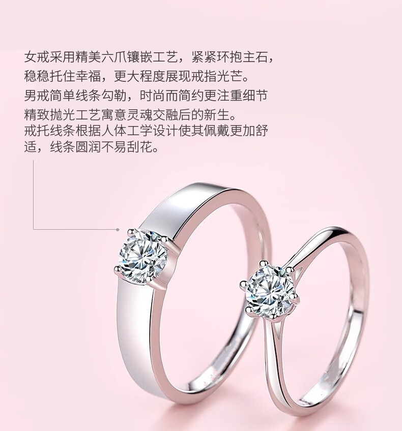 Pt950 platinum ring imported moissanite diamond ring 1 carat couple ring male and female wedding proposal birthday gift light luxury model - female ring - rose gift box default live closed note circle number