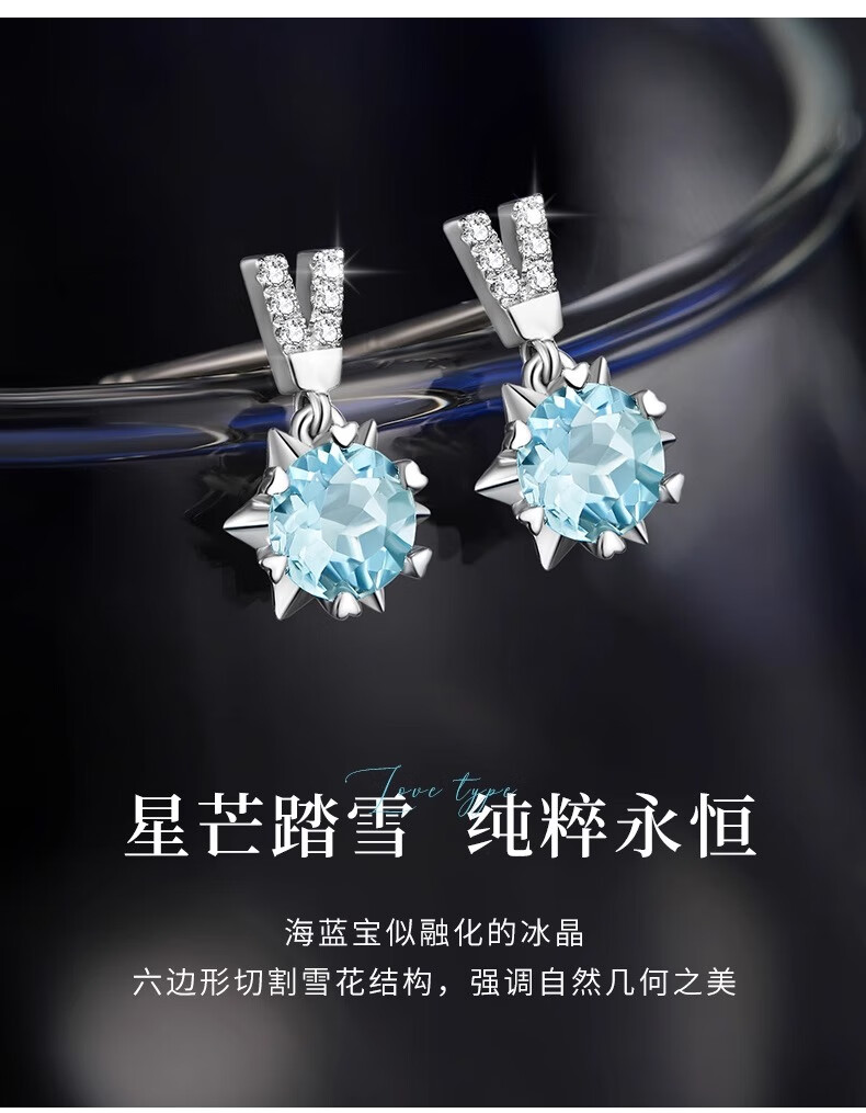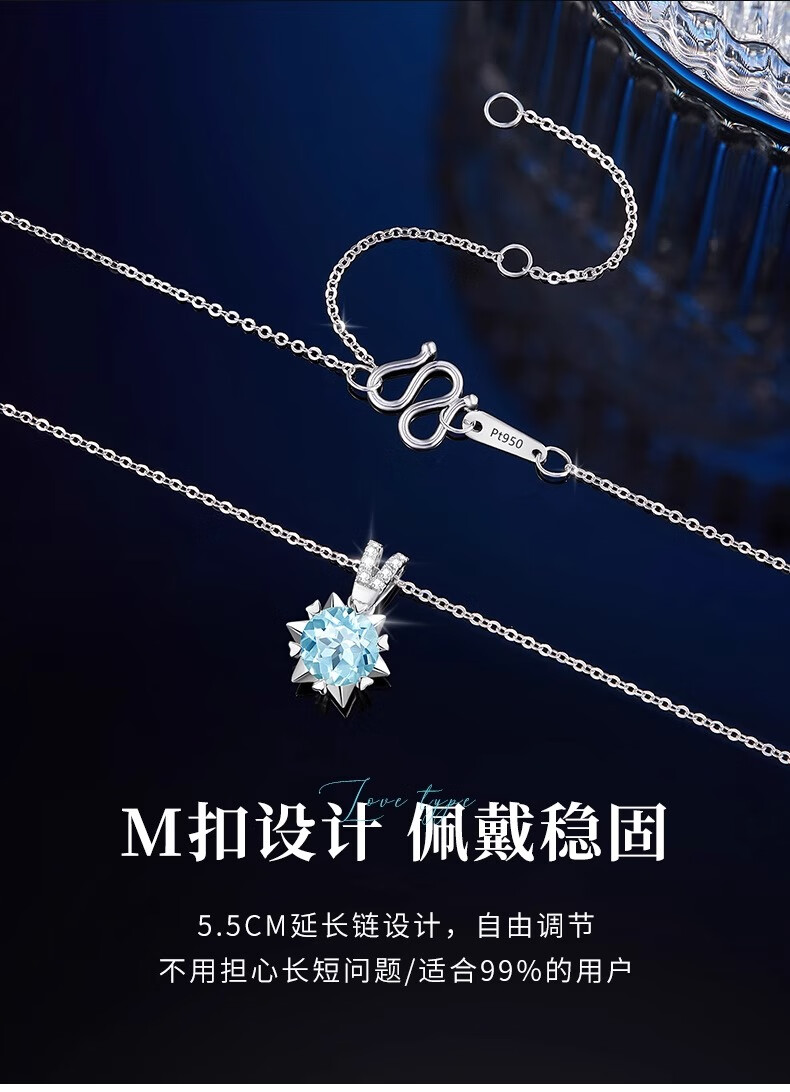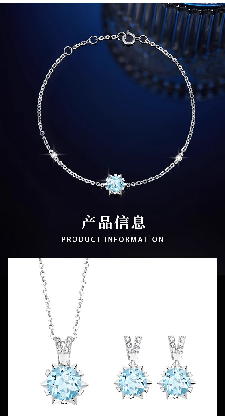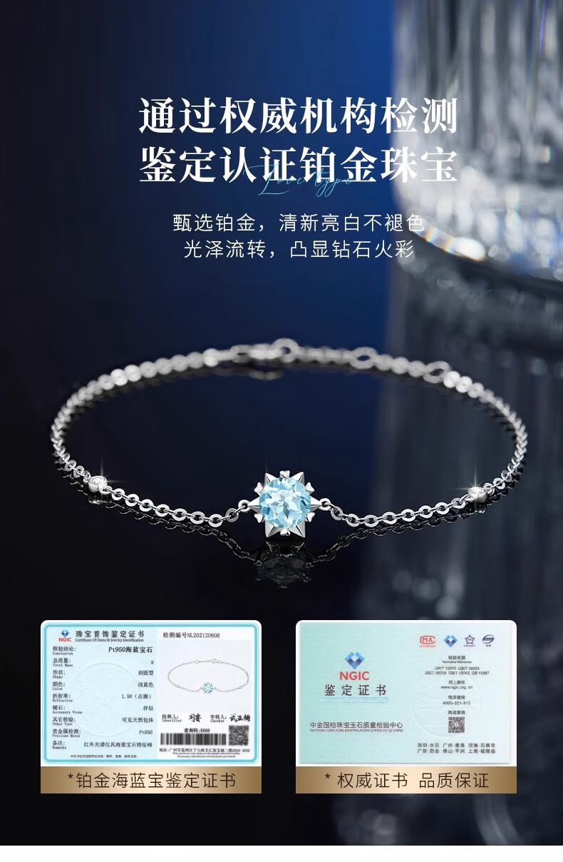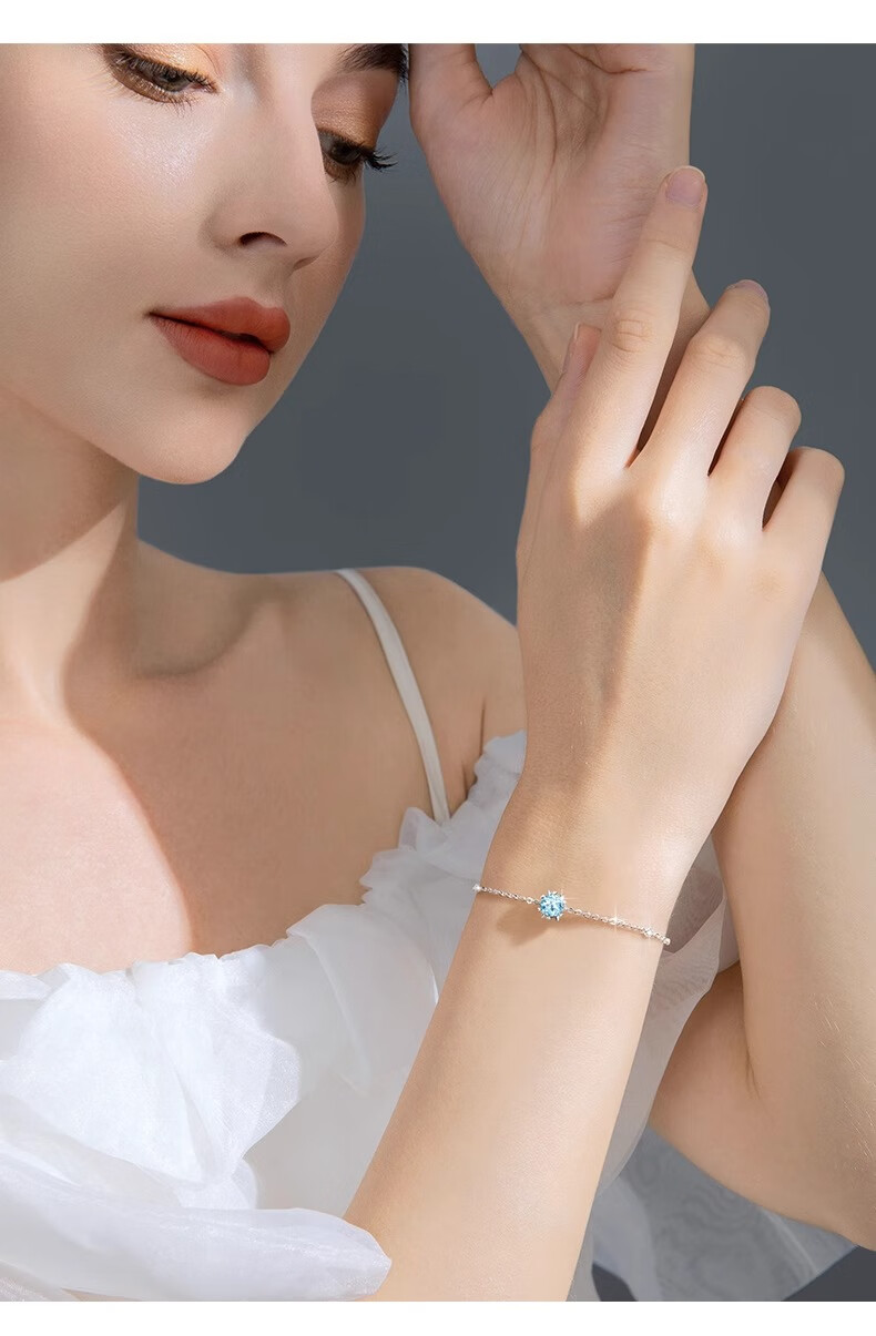 SGE aquamarine raw stone snowflake bracelet for girls pt950 platinum bracelet with high-end light luxury design as a gift for girls Aquamarine Star Snow Aquamarine platinum bracelet