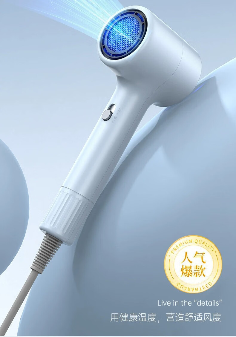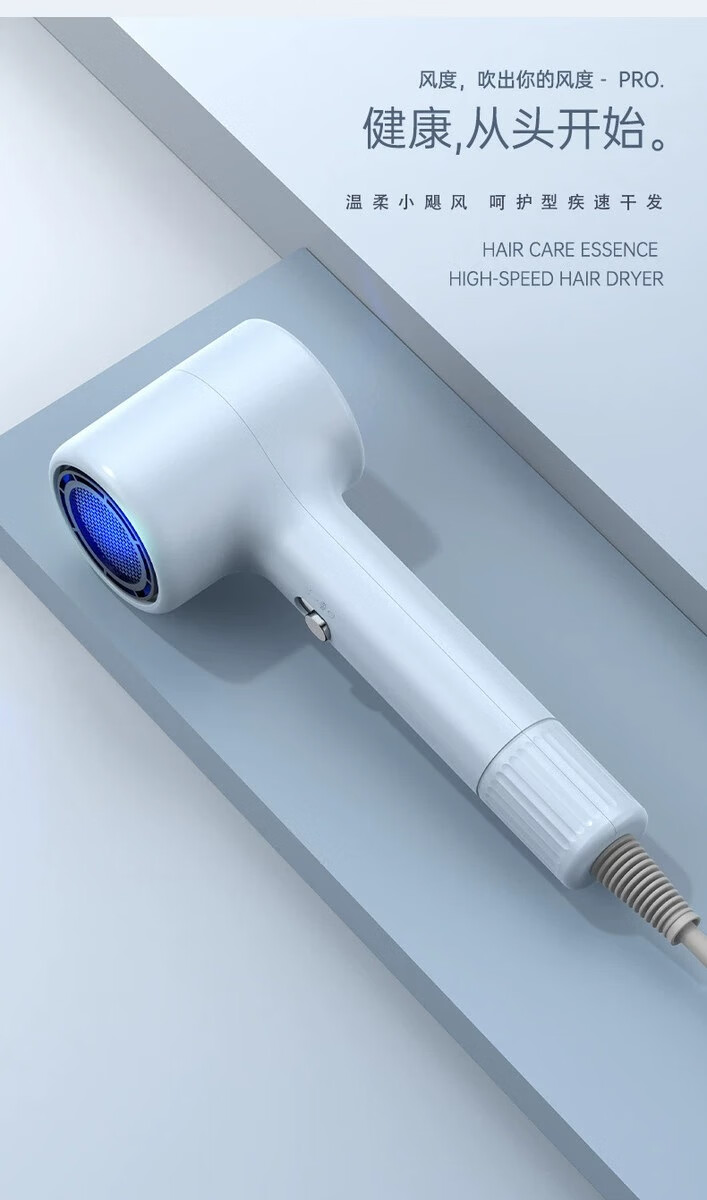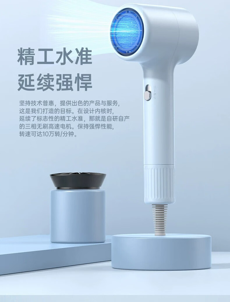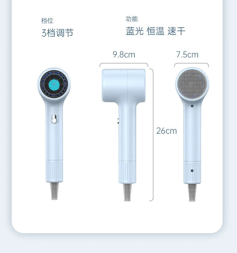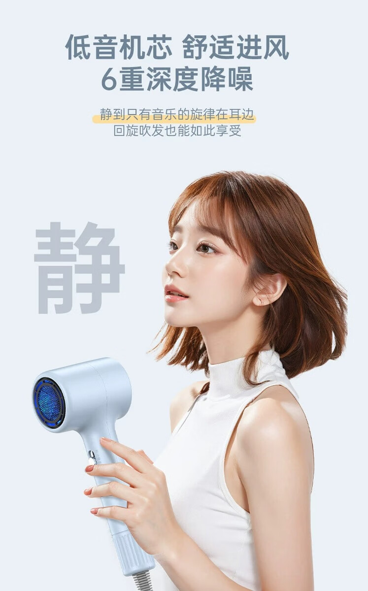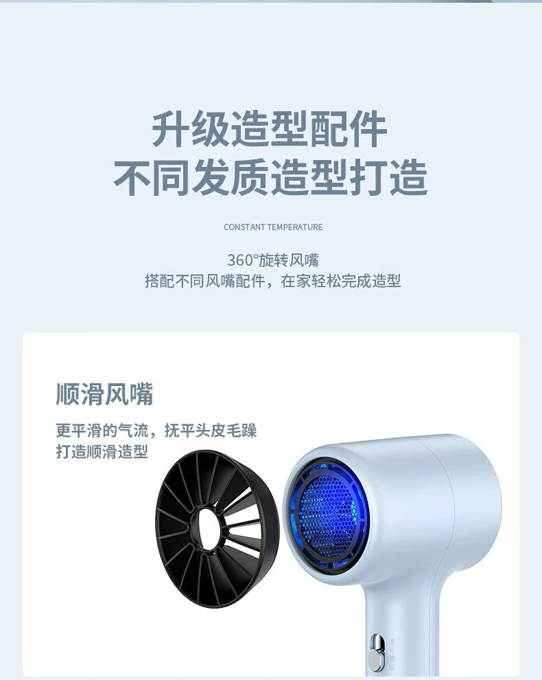 High-speed bladeless hair dryer for home use, silent negative ions, high power, no harm to hair, wind tube, hair salon use LHD1, blue light hair care, light blue - air nozzle