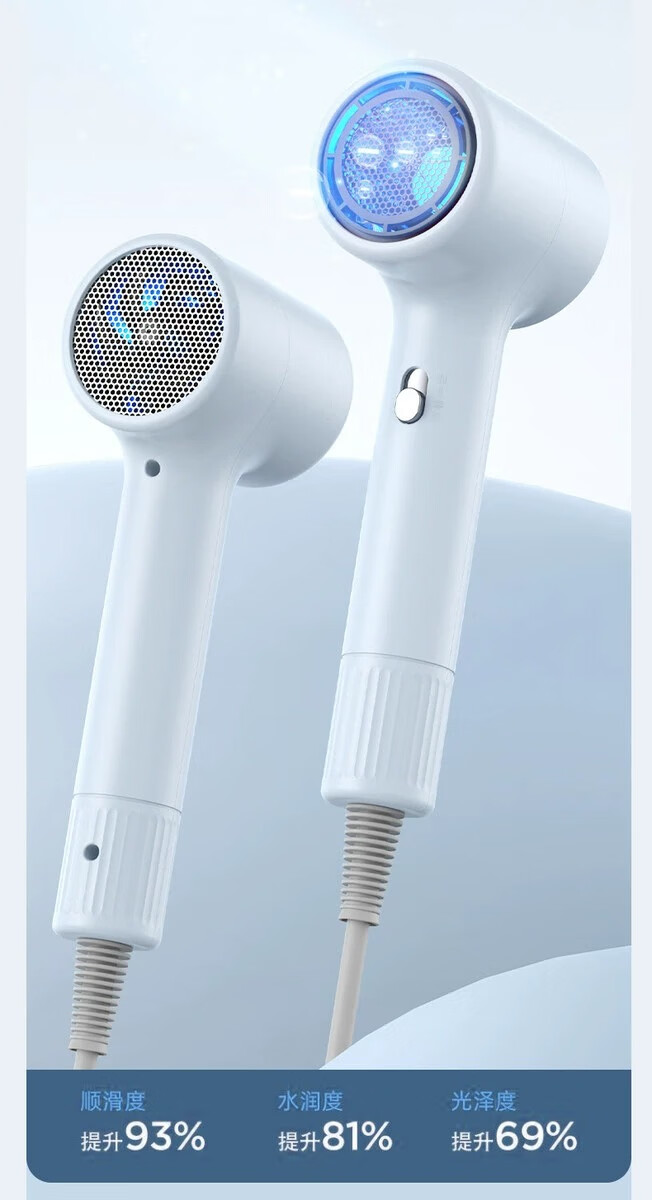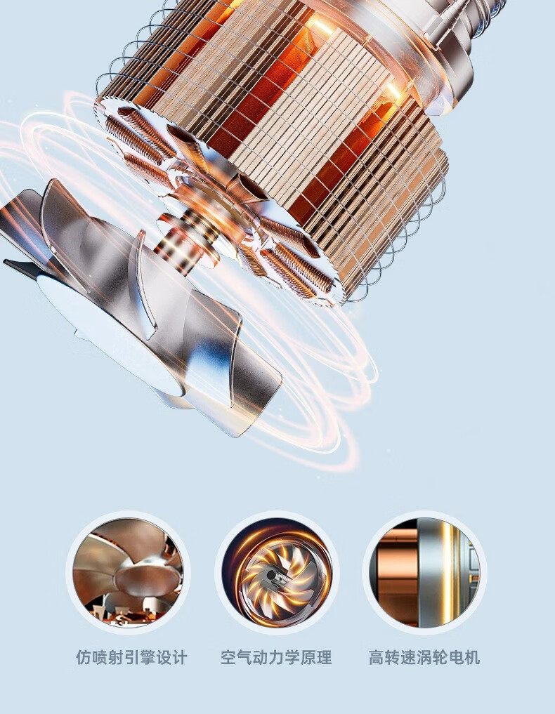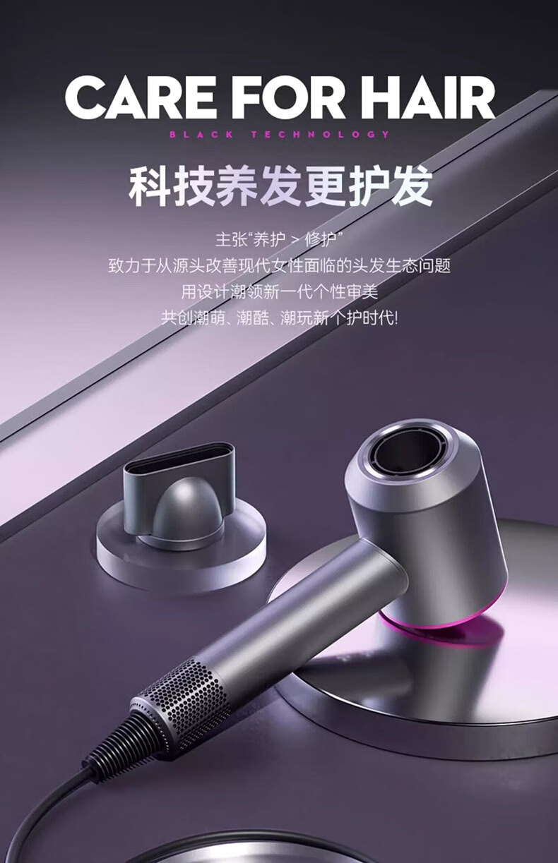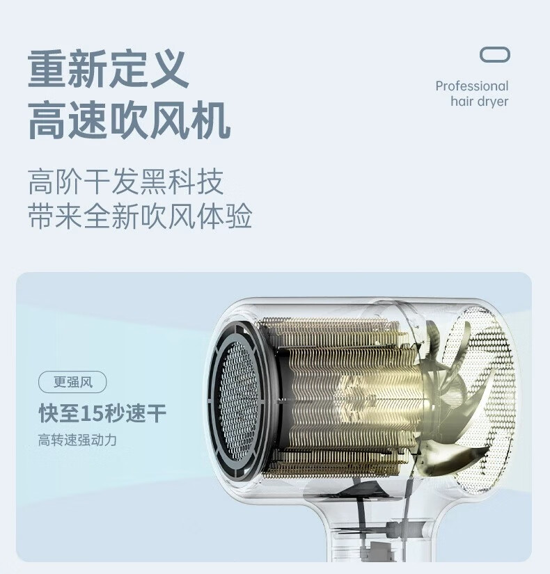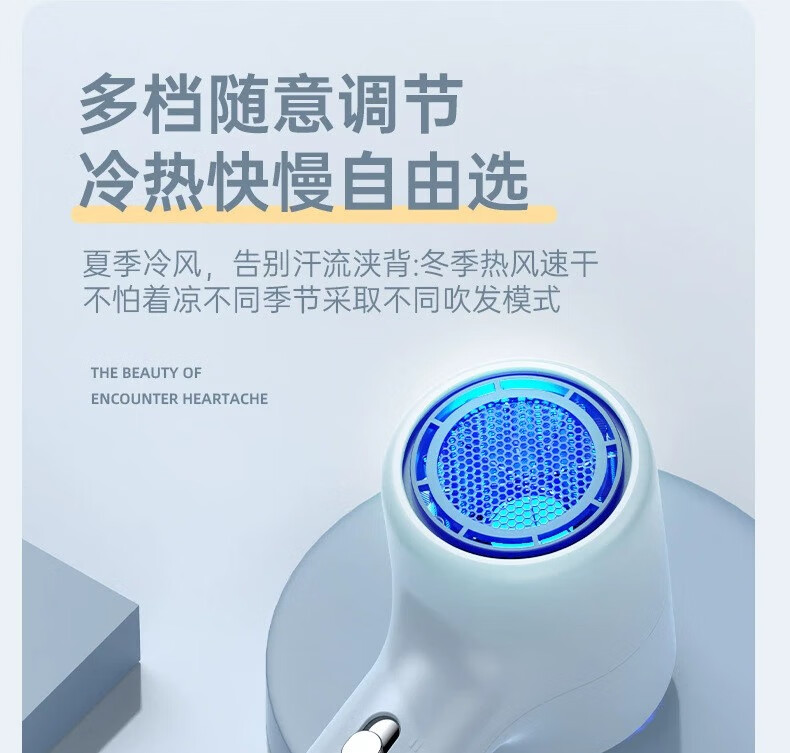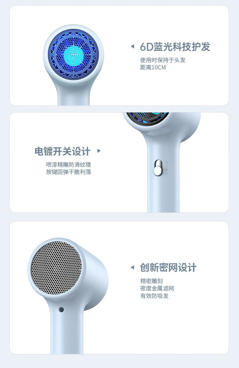 High-speed bladeless hair dryer for home use, silent negative ions, high power, no harm to hair, wind tube, hair salon use LHD1, blue light hair care, light blue - air nozzle
