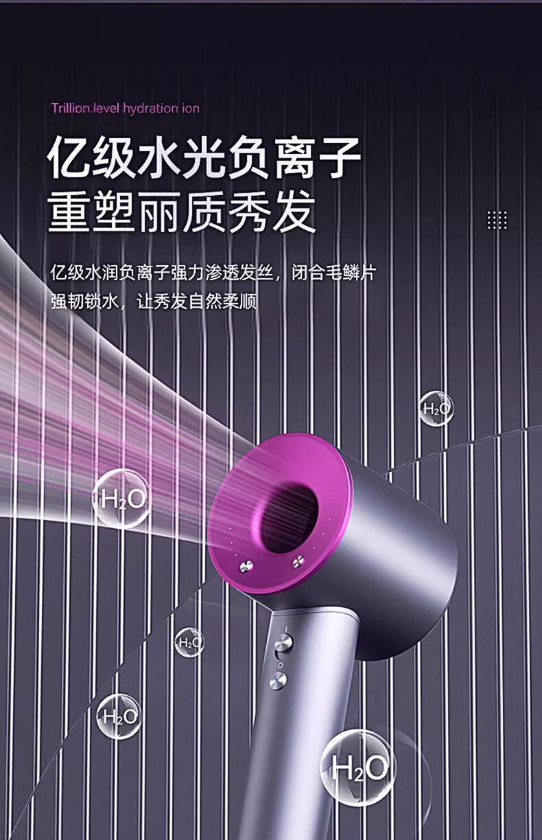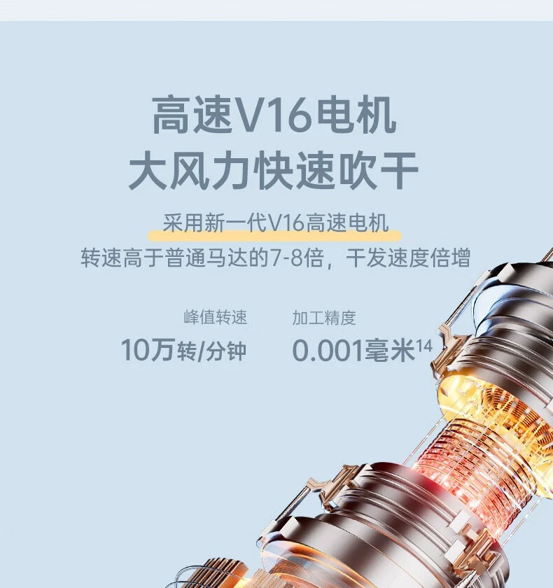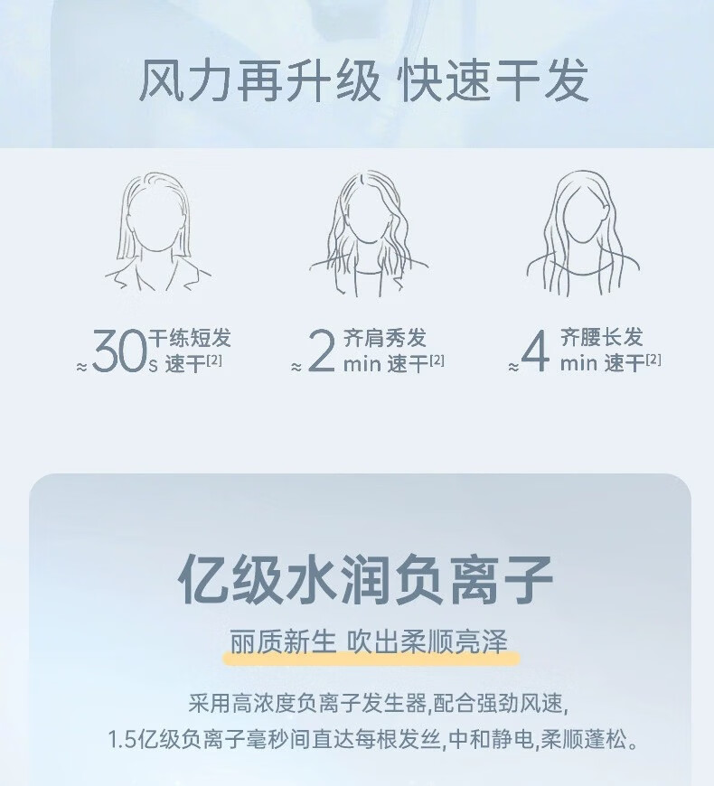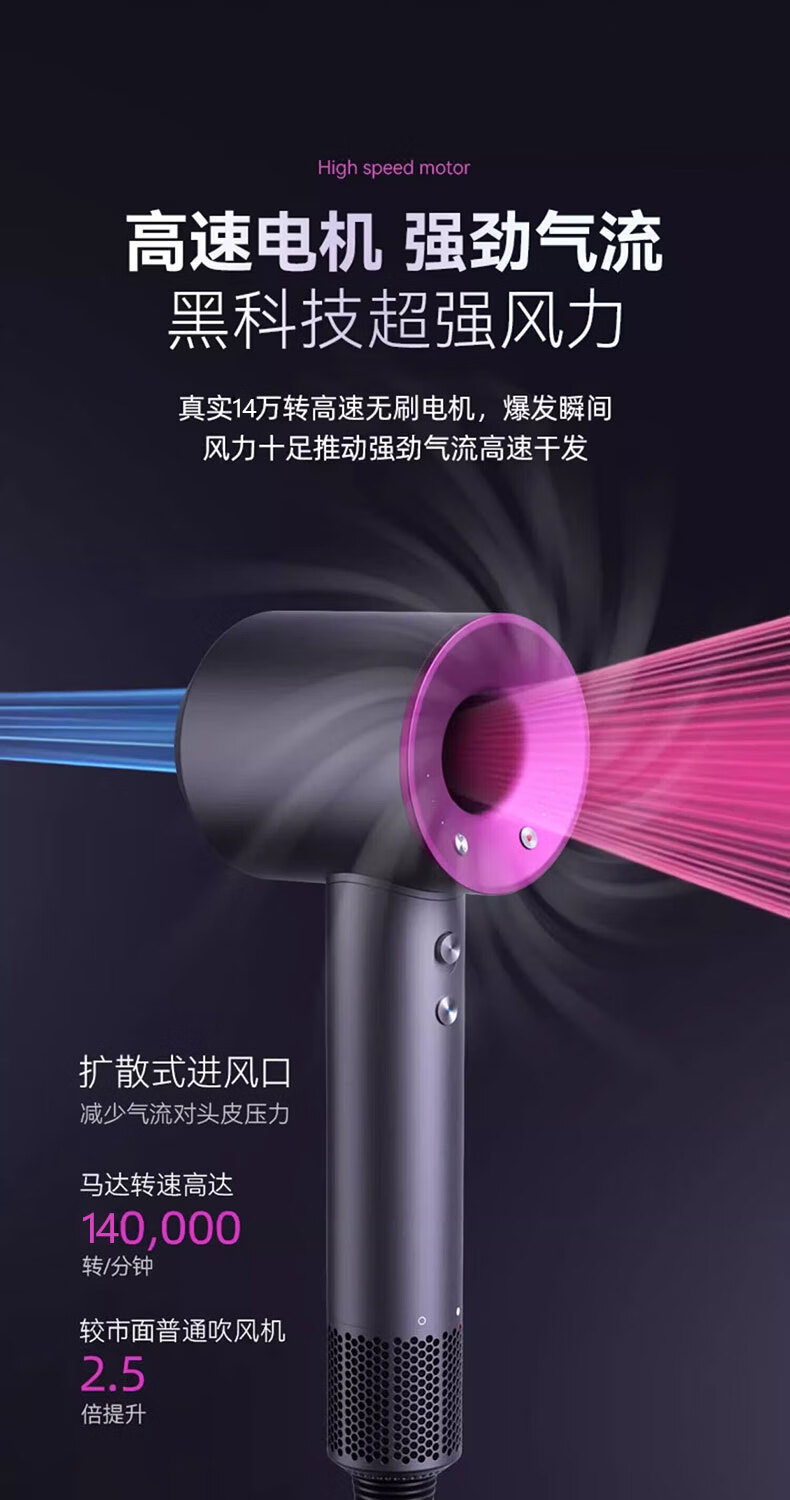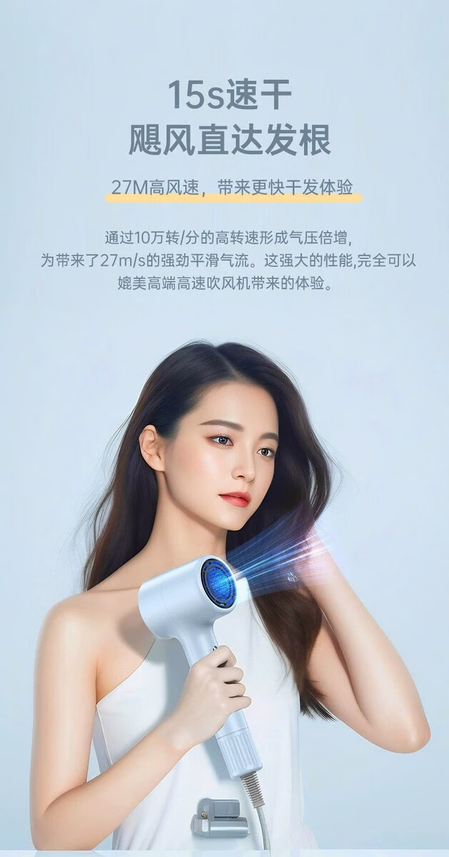 High-speed bladeless hair dryer for home use, silent negative ions, high power, no harm to hair, wind tube, hair salon use LHD1, blue light hair care, light blue - air nozzle