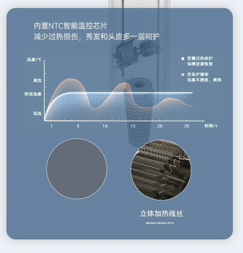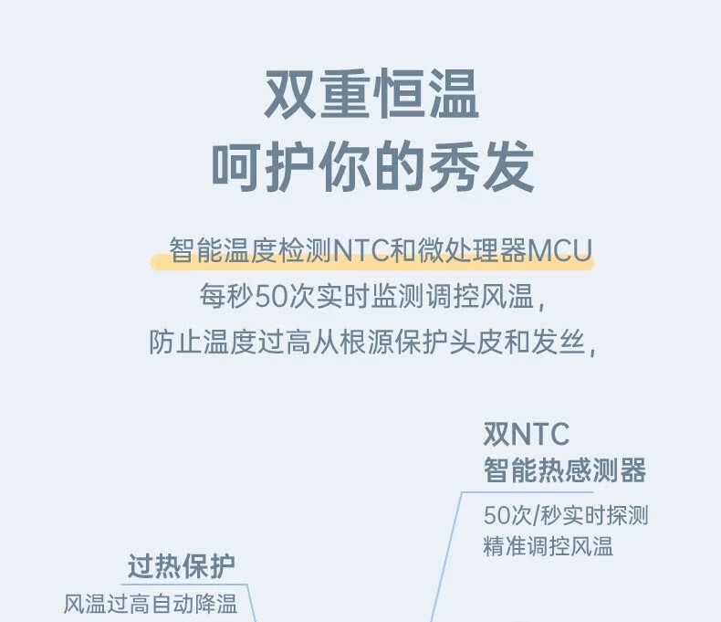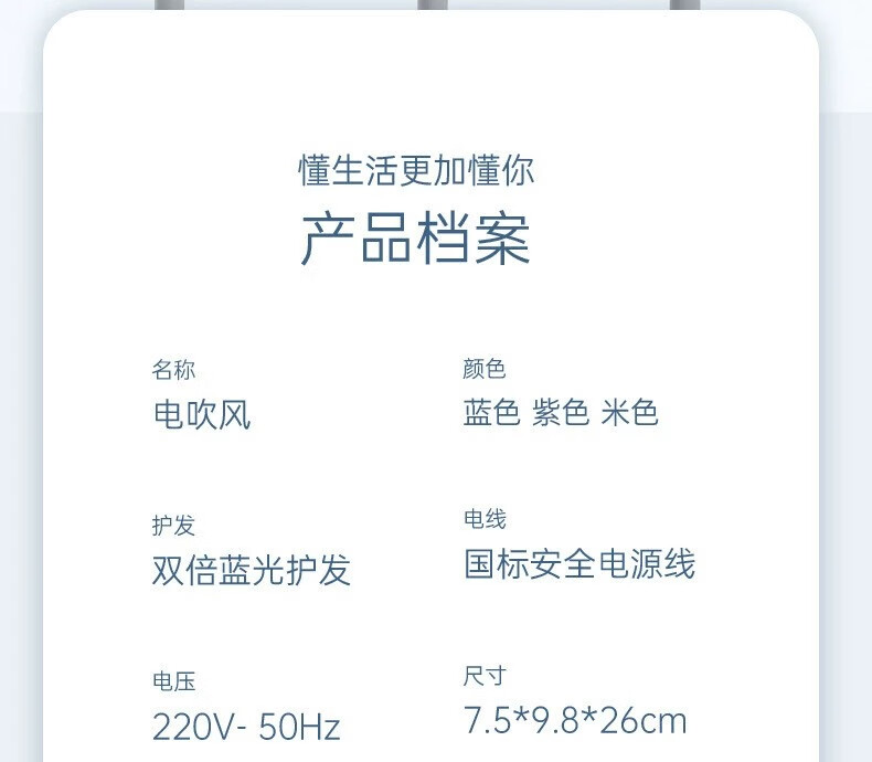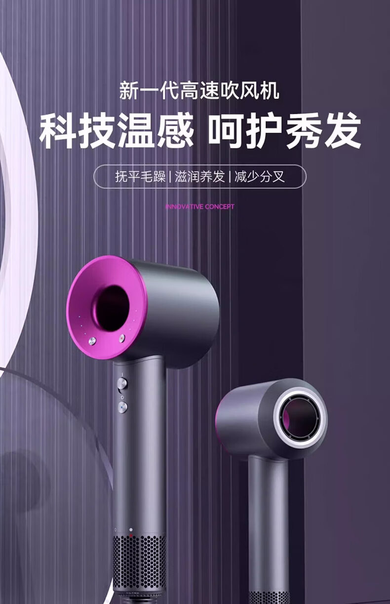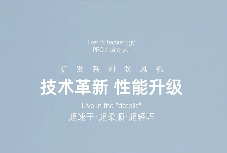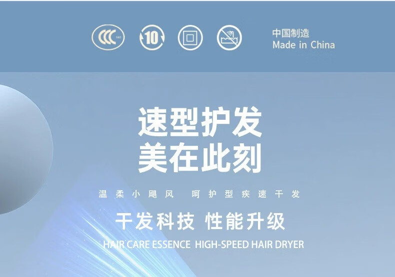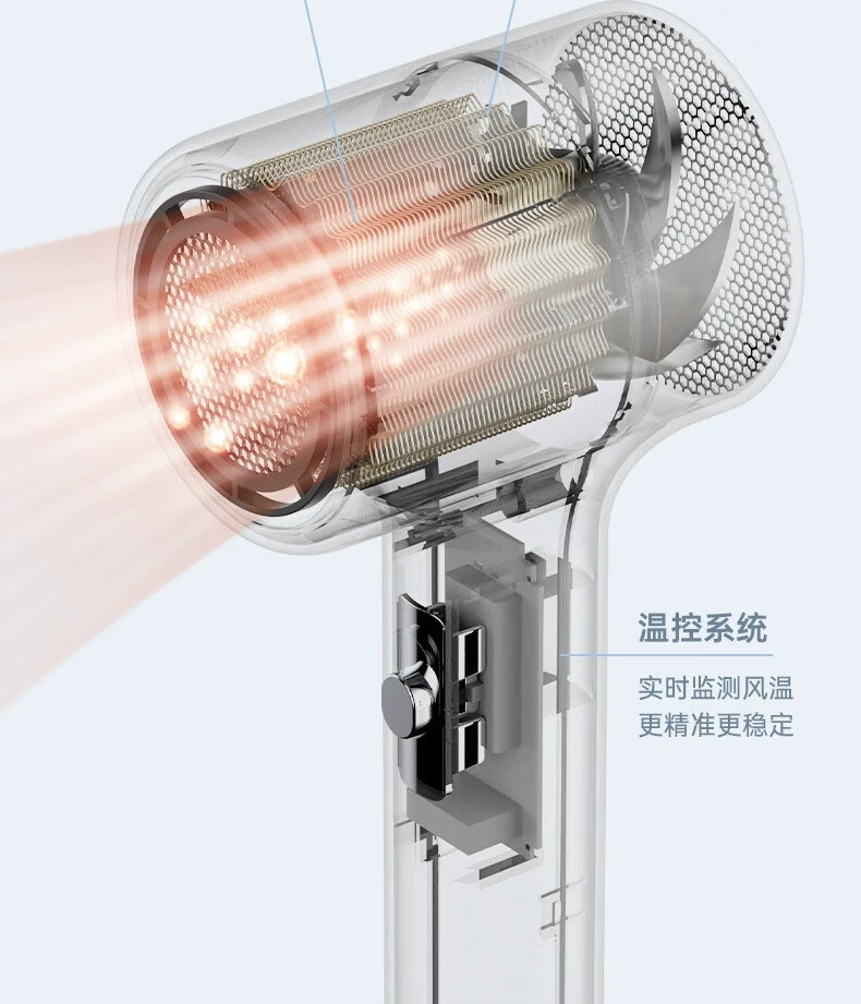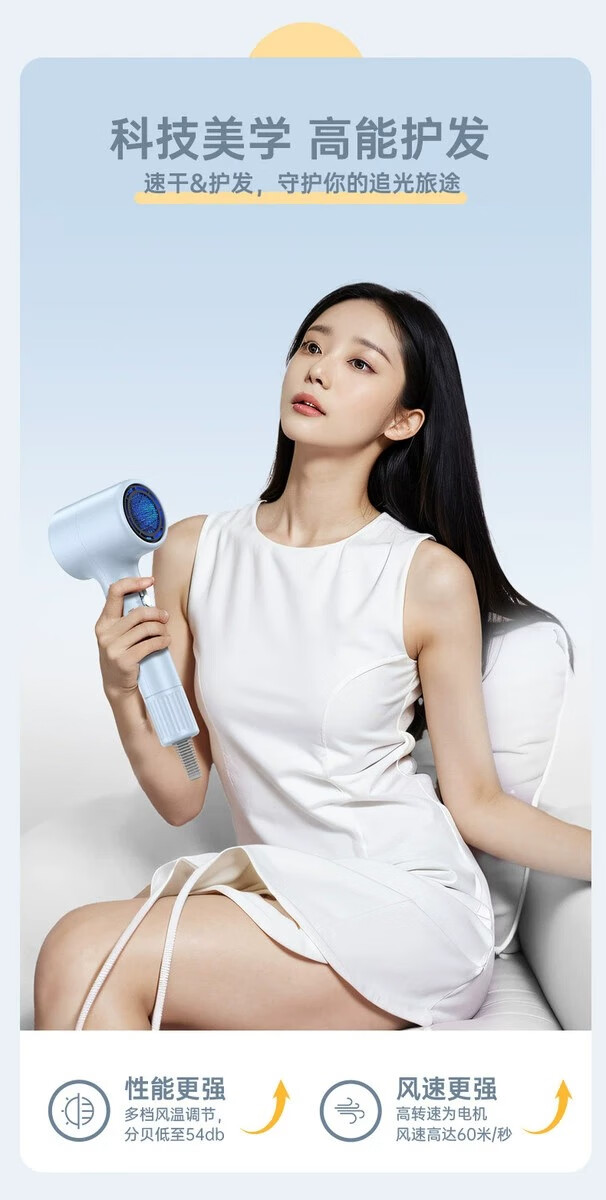 High-speed bladeless hair dryer for home use, silent negative ions, high power, no harm to hair, wind tube, hair salon use LHD1, blue light hair care, light blue - air nozzle