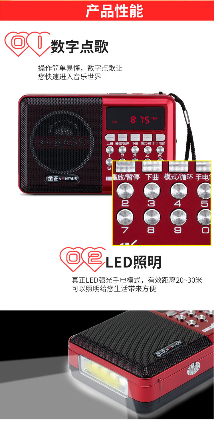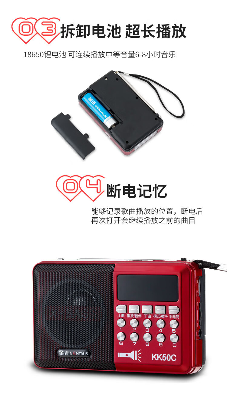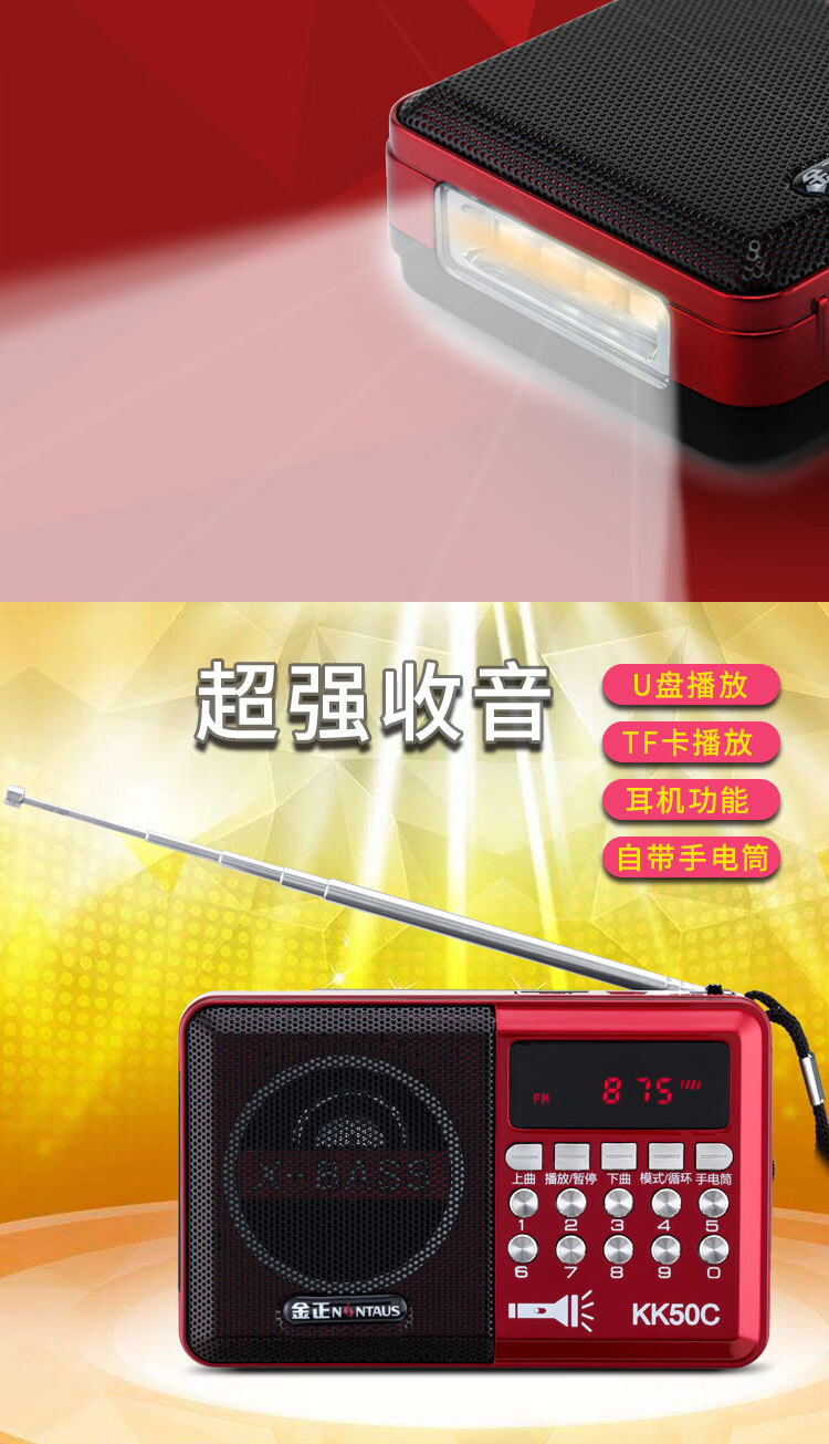 NINTAUS elderly people's radio charging style portable mini card singing machine small speaker multi-functional radio audio all-in-one dedicated card singing player KK50C host + charging cable