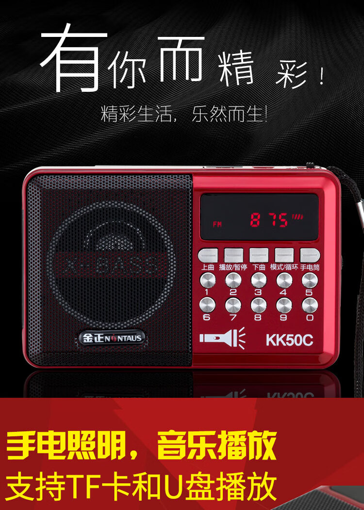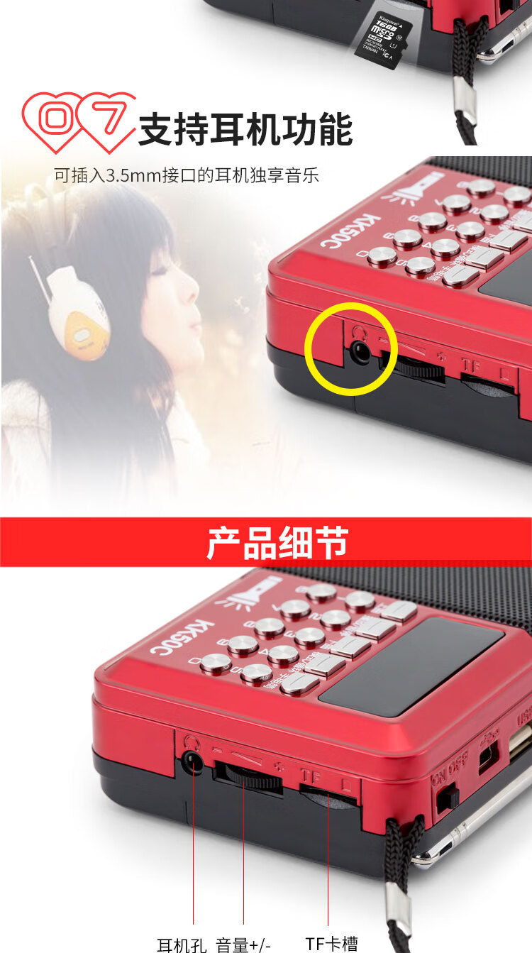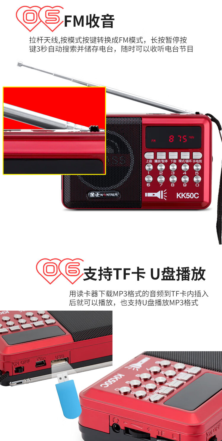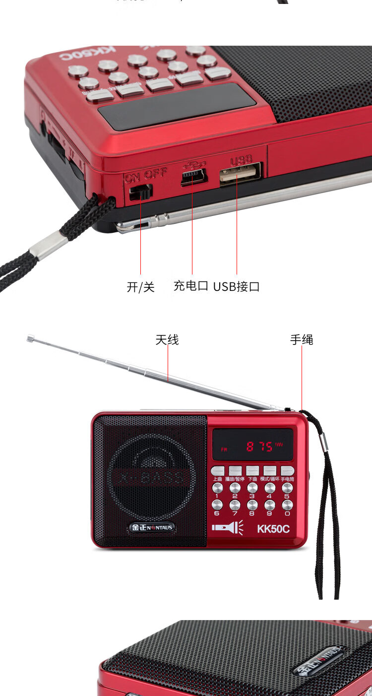 NINTAUS elderly people's radio charging style portable mini card singing machine small speaker multi-functional radio audio all-in-one dedicated card singing player KK50C host + charging cable