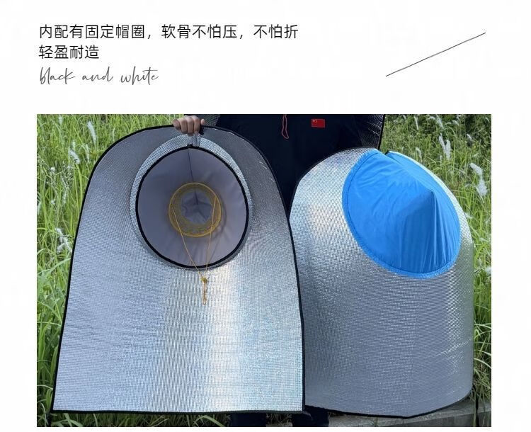 Qumuye cloak, farm work pointed hat, sunshade, outdoor sun protection hat, heat-proof and rain-proof tea picking jasmine hat set, fishing hat, thickened sunshade cloak 100 cm