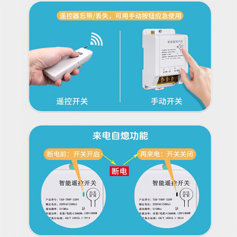 Wireless remote control switch Rated voltage 220V Power 3KW Unit