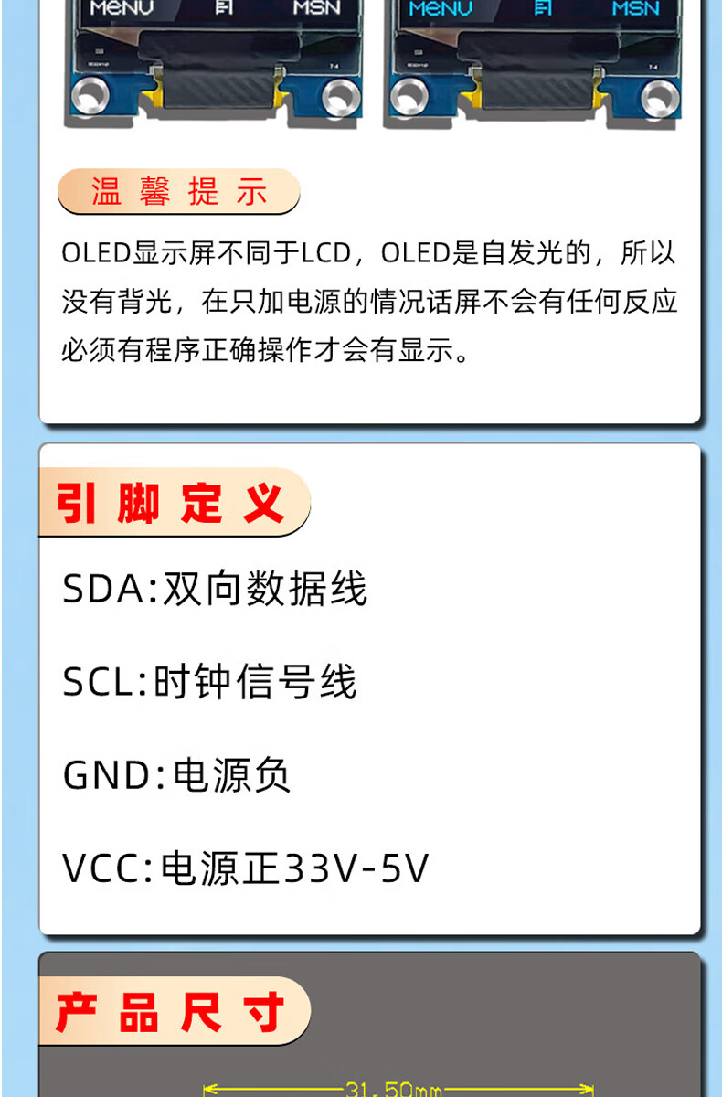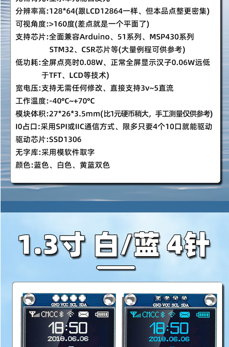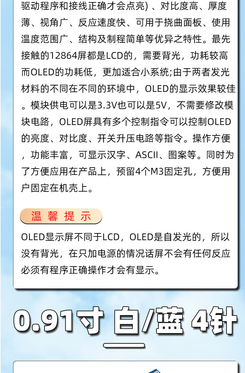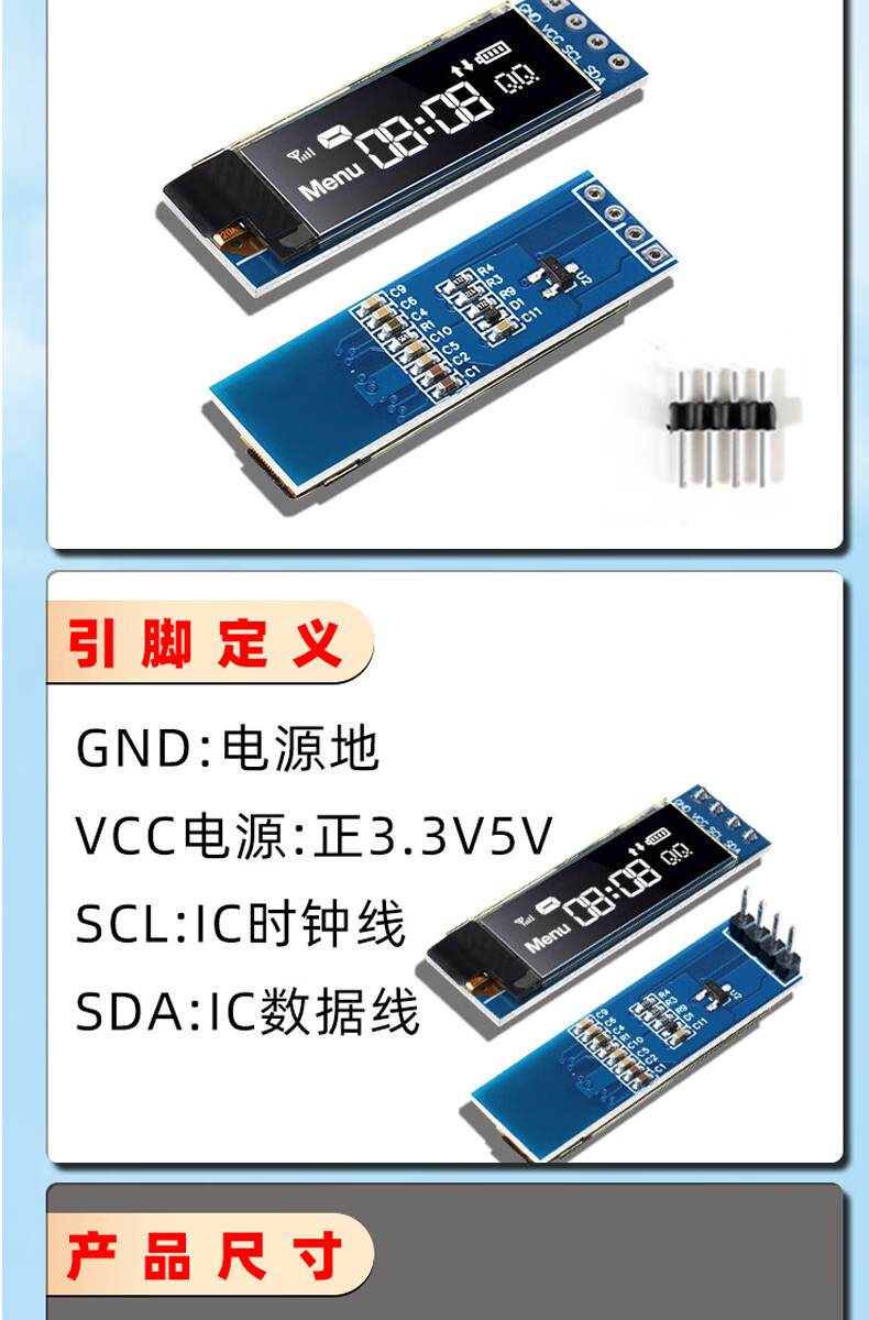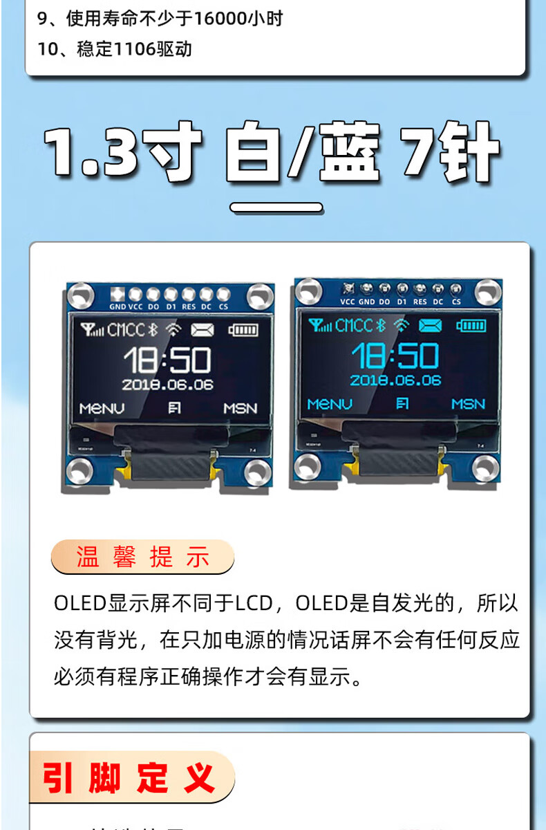 Dengshitang 0.96-inch OLED LCD screen 0.91 1.3-inch 4/7-pin display module SSD1306/1315 driver IIC/SPI white 0.96-inch 1306 driver 4-pin GND soldered pin header