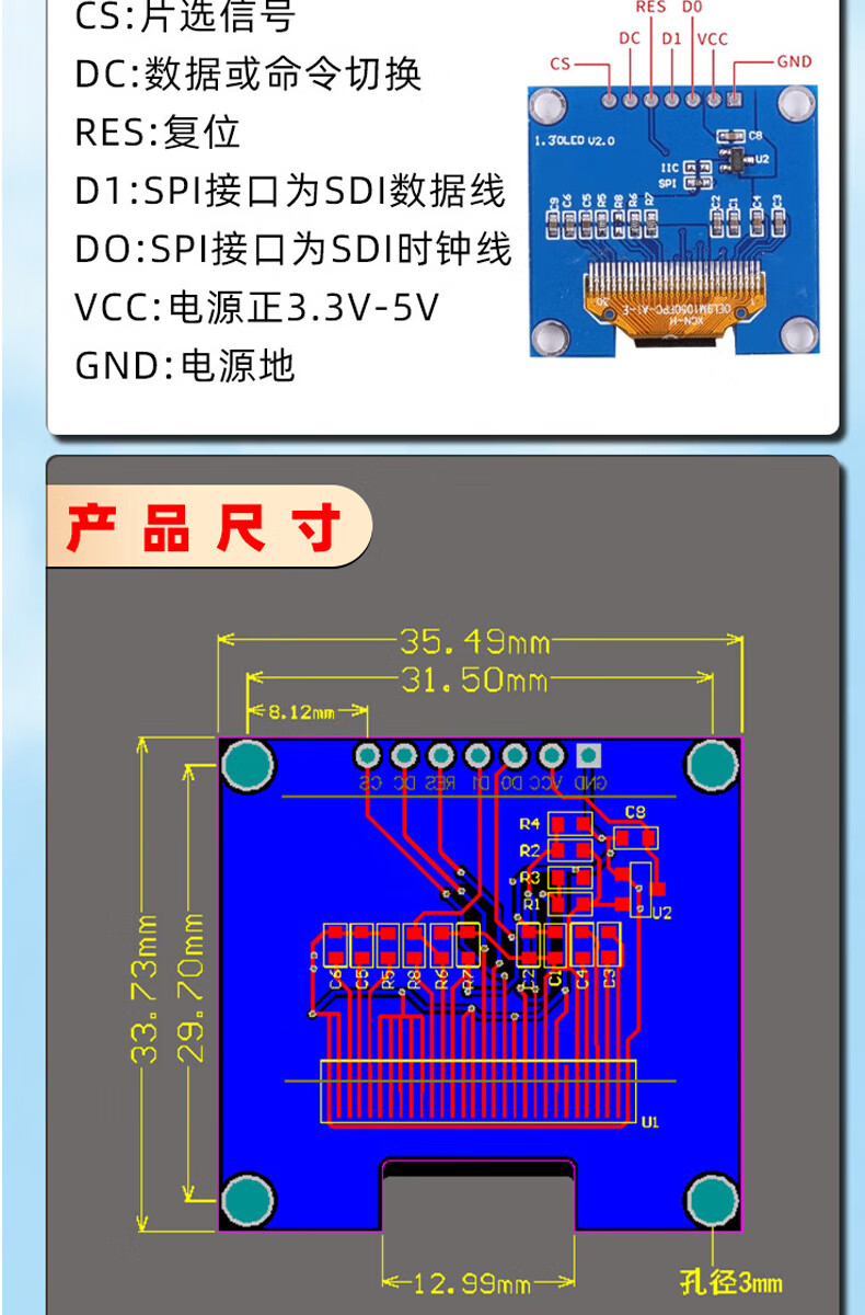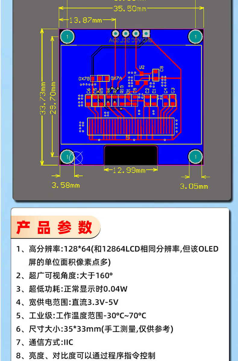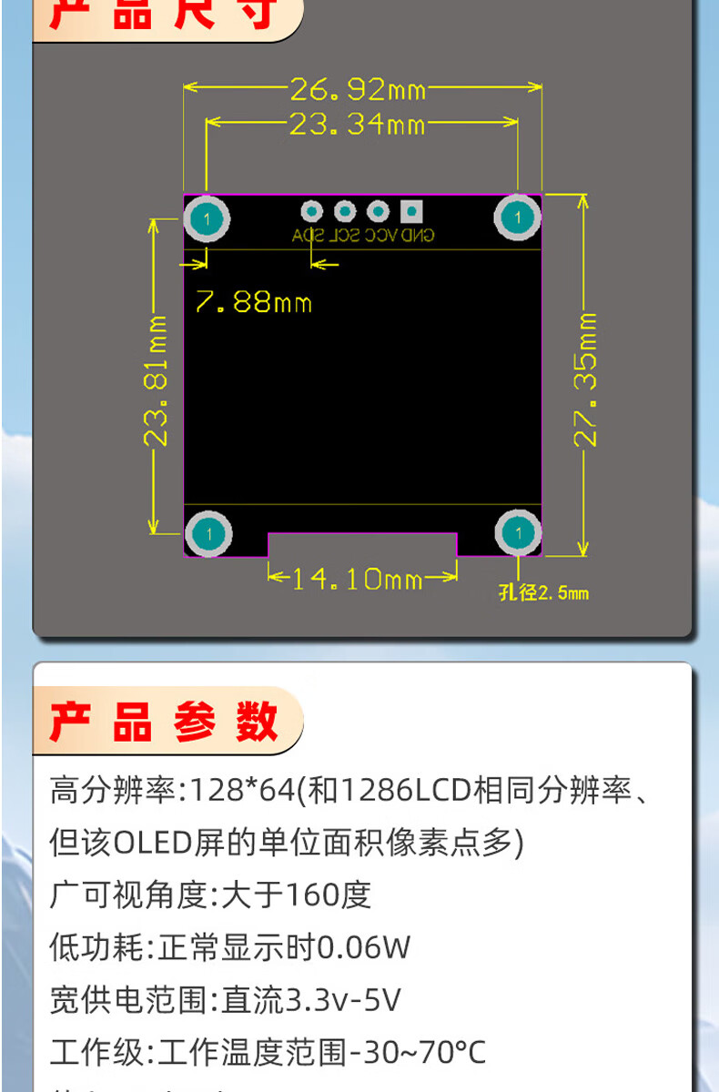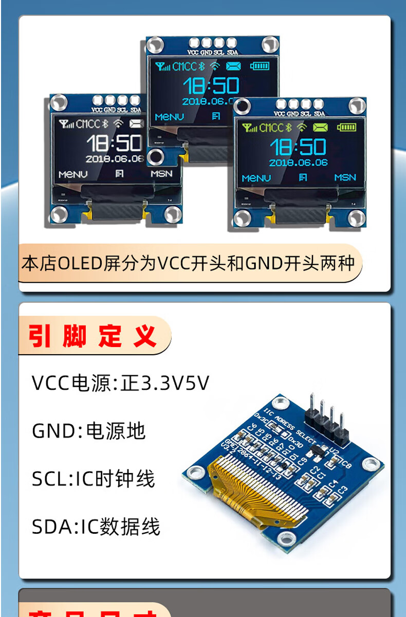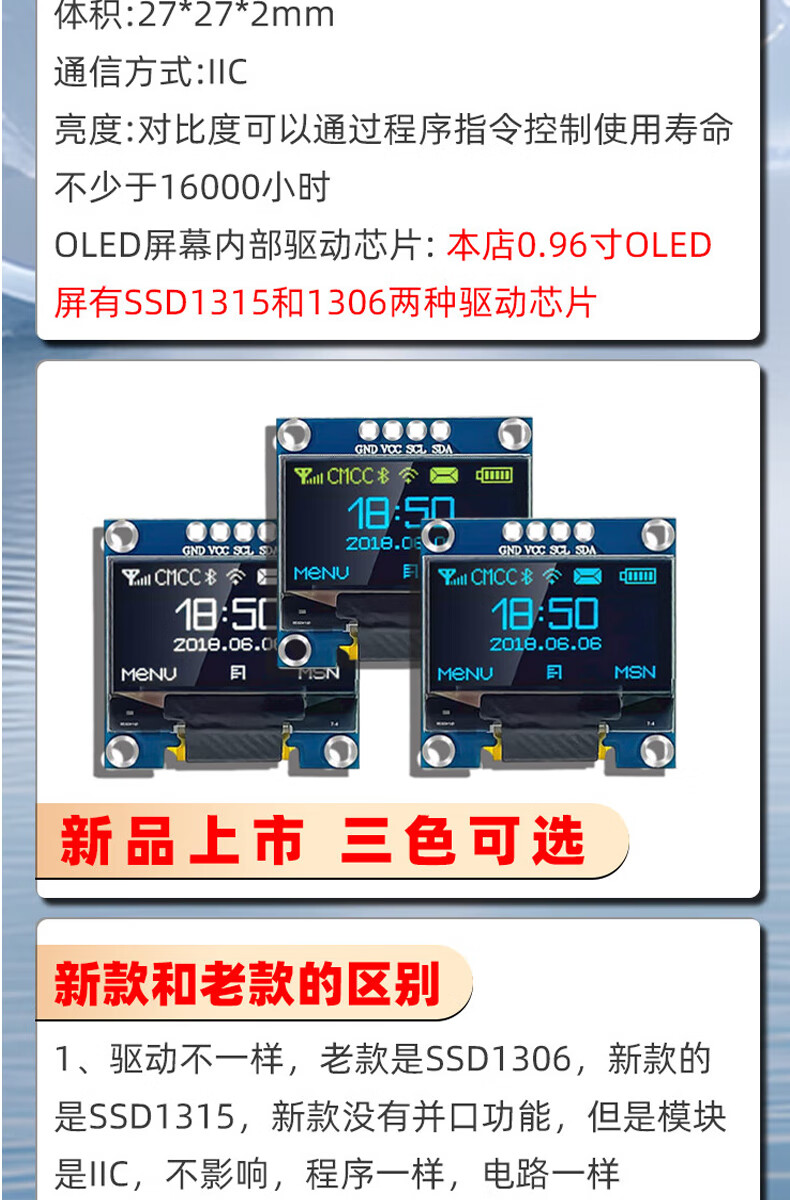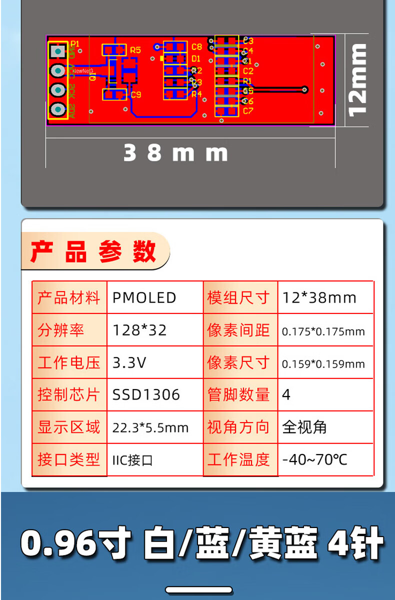 Dengshitang 0.96-inch OLED LCD screen 0.91 1.3-inch 4/7-pin display module SSD1306/1315 driver IIC/SPI white 0.96-inch 1306 driver 4-pin GND soldered pin header