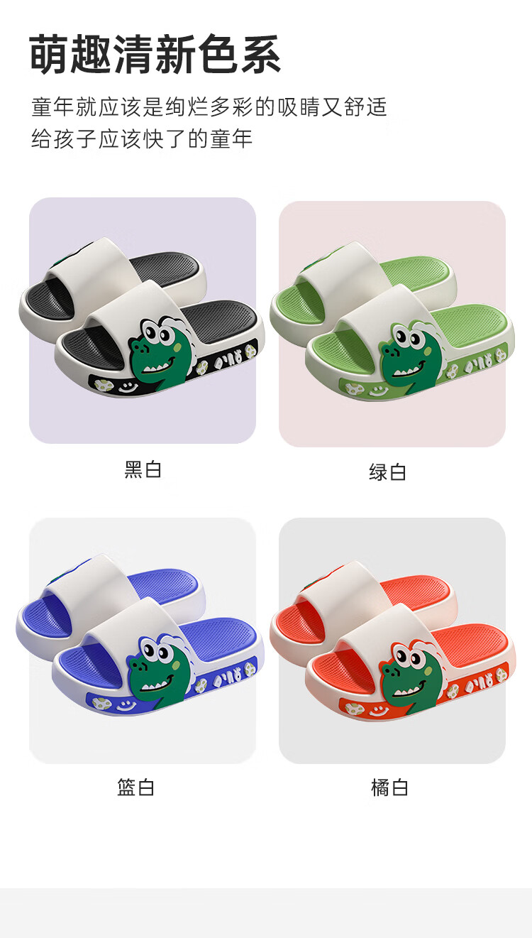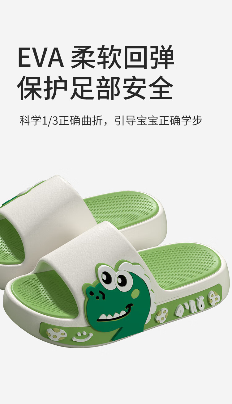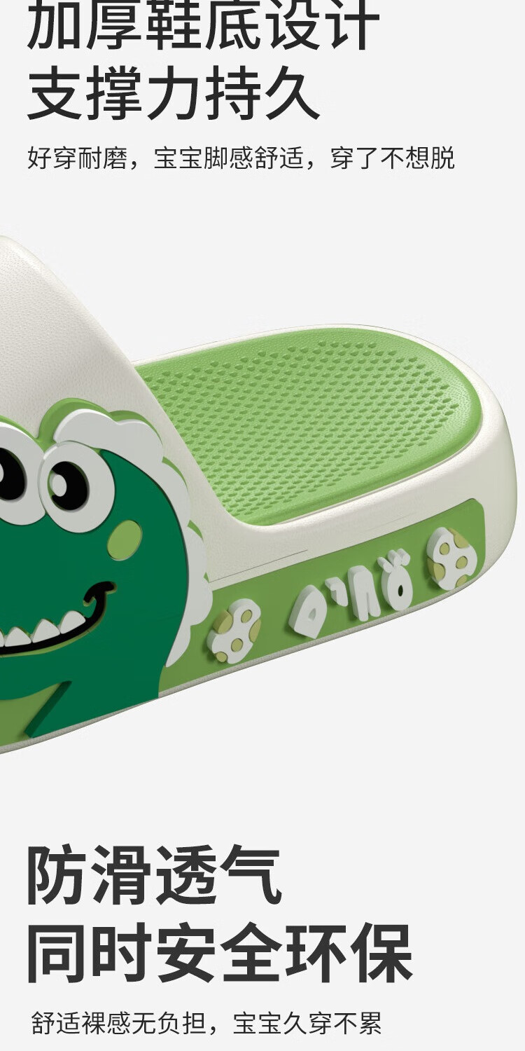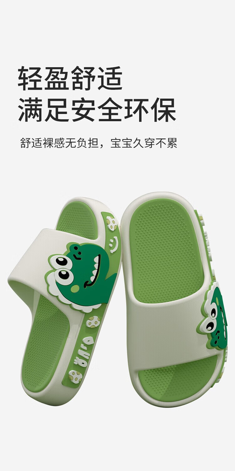 Thick-soled children's slippers with a poop-stomping feeling for boys 2025 new medium and large children's anti-slip and anti-odor cartoon dinosaur slippers green 26.5 26-27 inner length 18