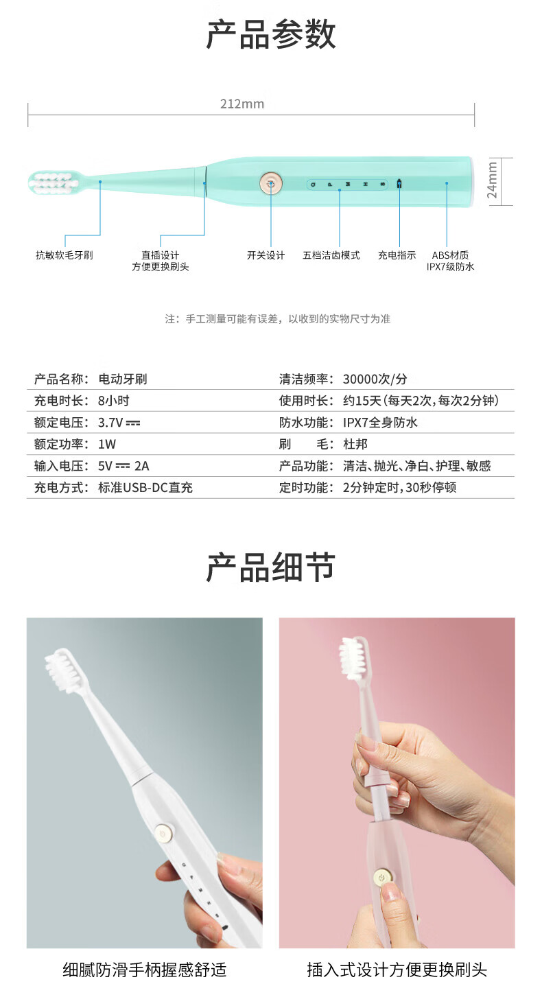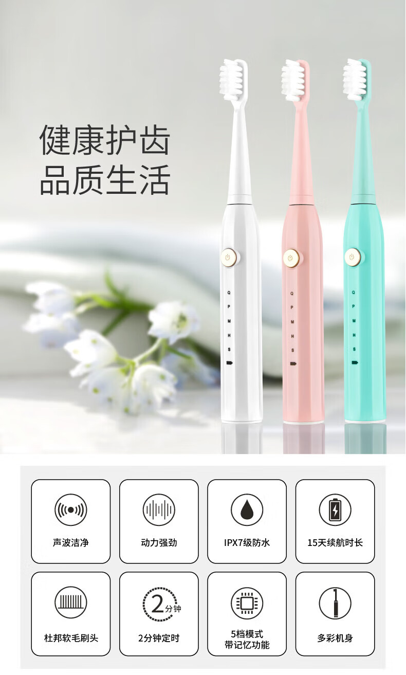 Electric toothbrush and floss set for adults, sonic ultra-automatic, soft-bristled gum protector for students, men and women, universal for adults and children, 2 boxes of dental floss, 100 pieces