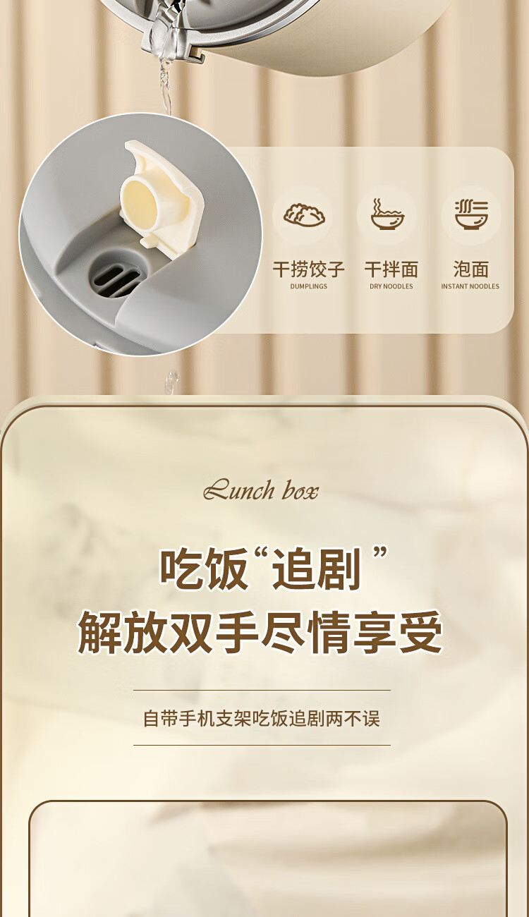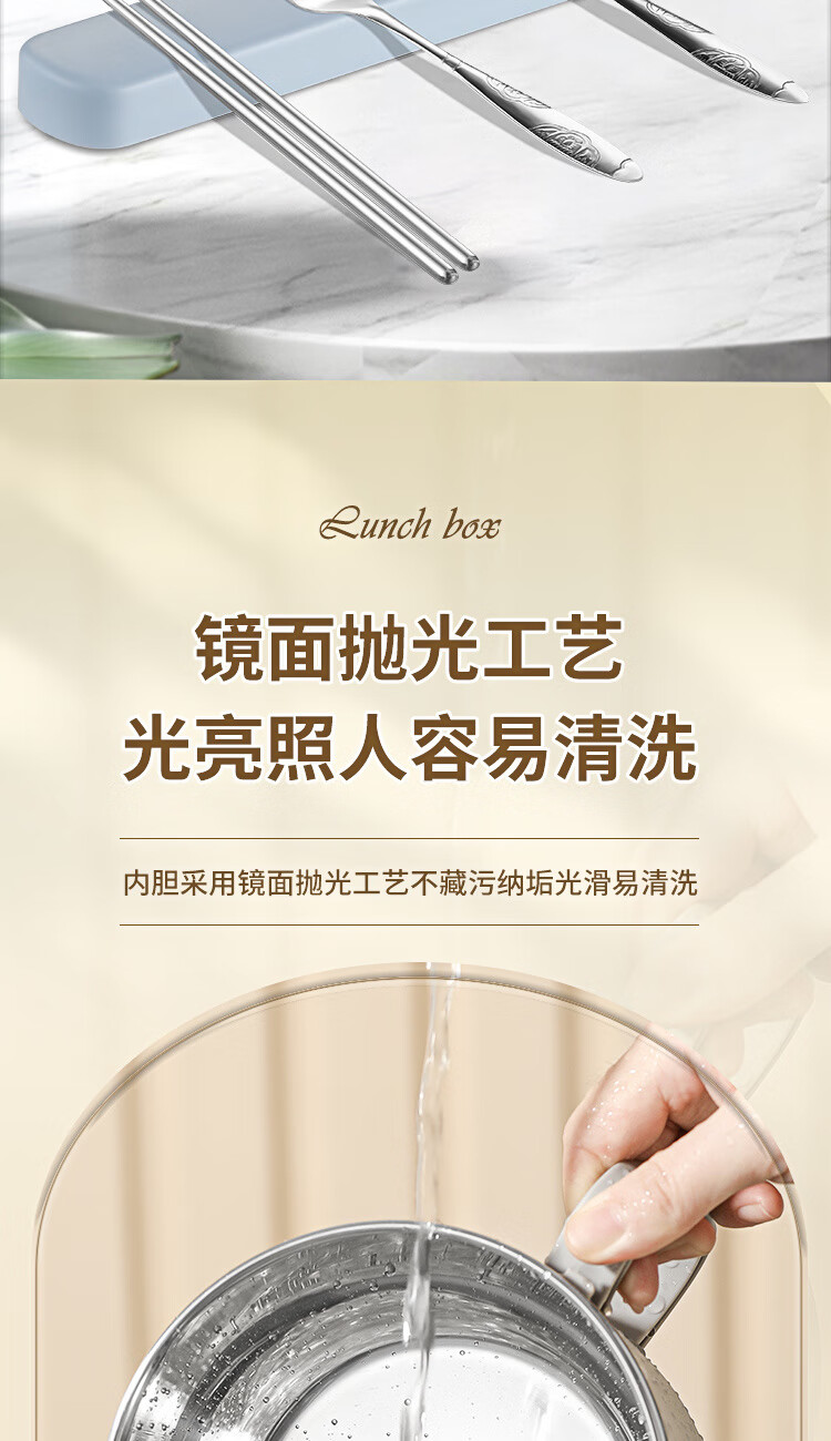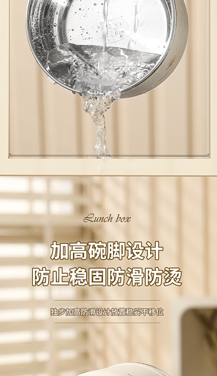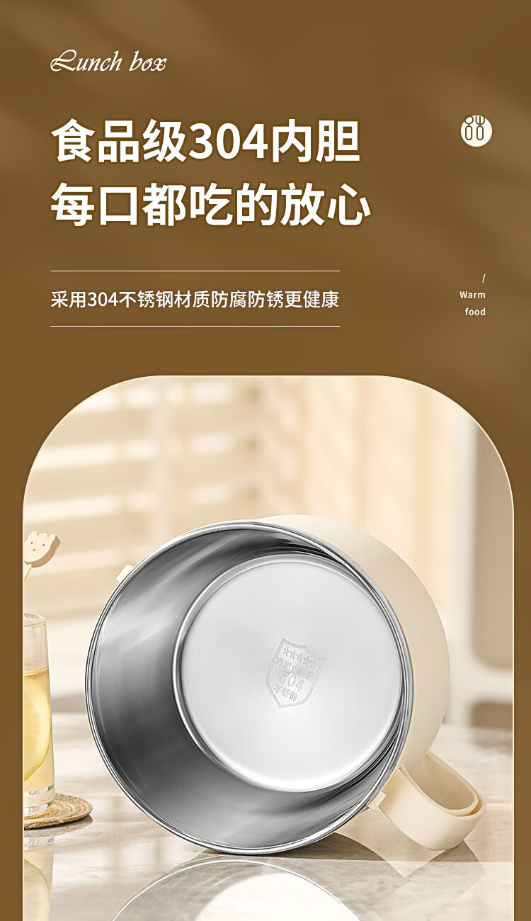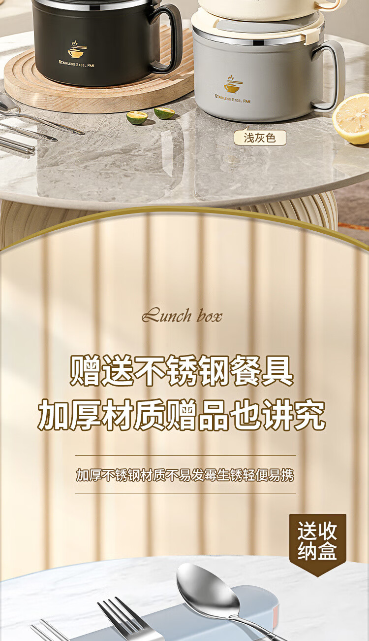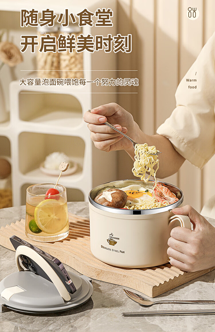 Langxi stainless steel instant noodle bowl with lid for student dormitory 304 bowls and chopsticks set for office workers canteen lunch box easy to wash 304 inner tank milky white 1600ML tableware can be soaked 2-3 packs