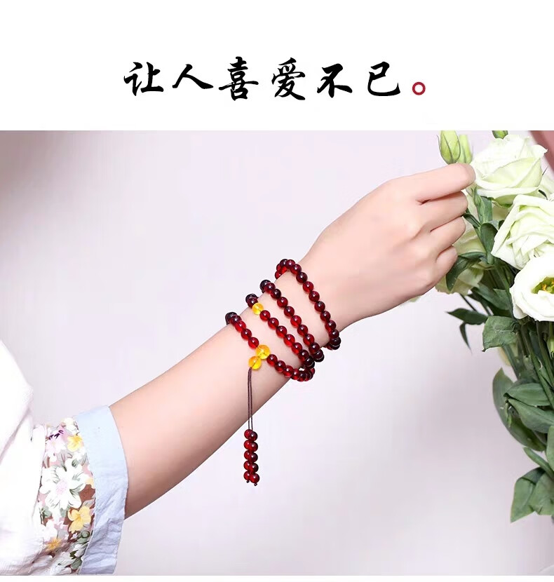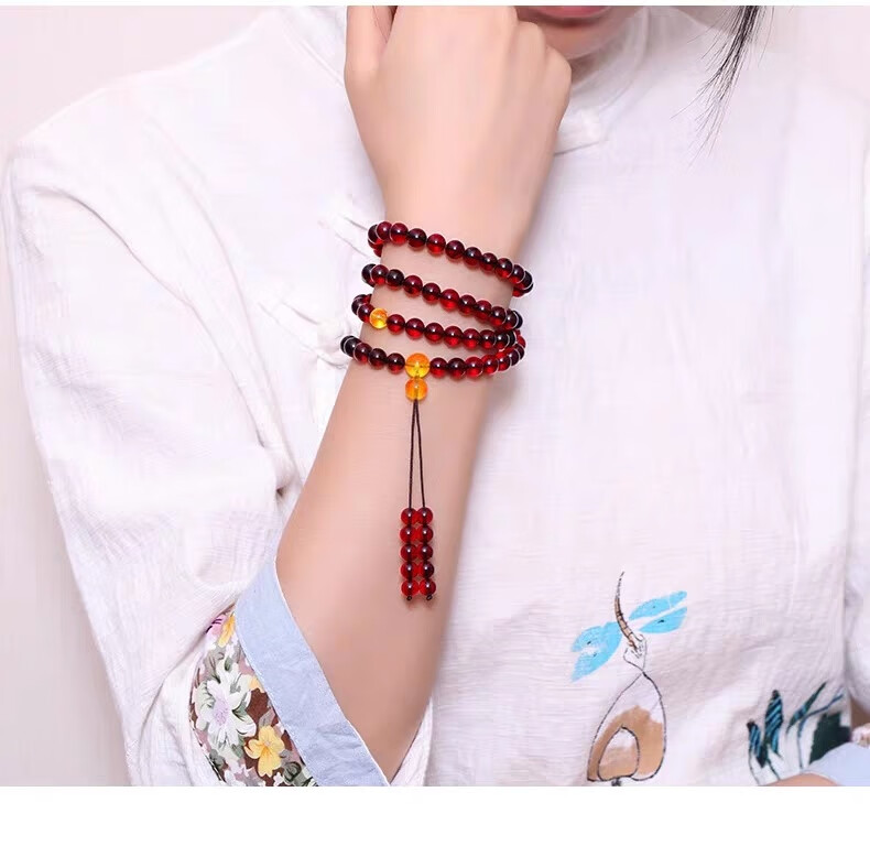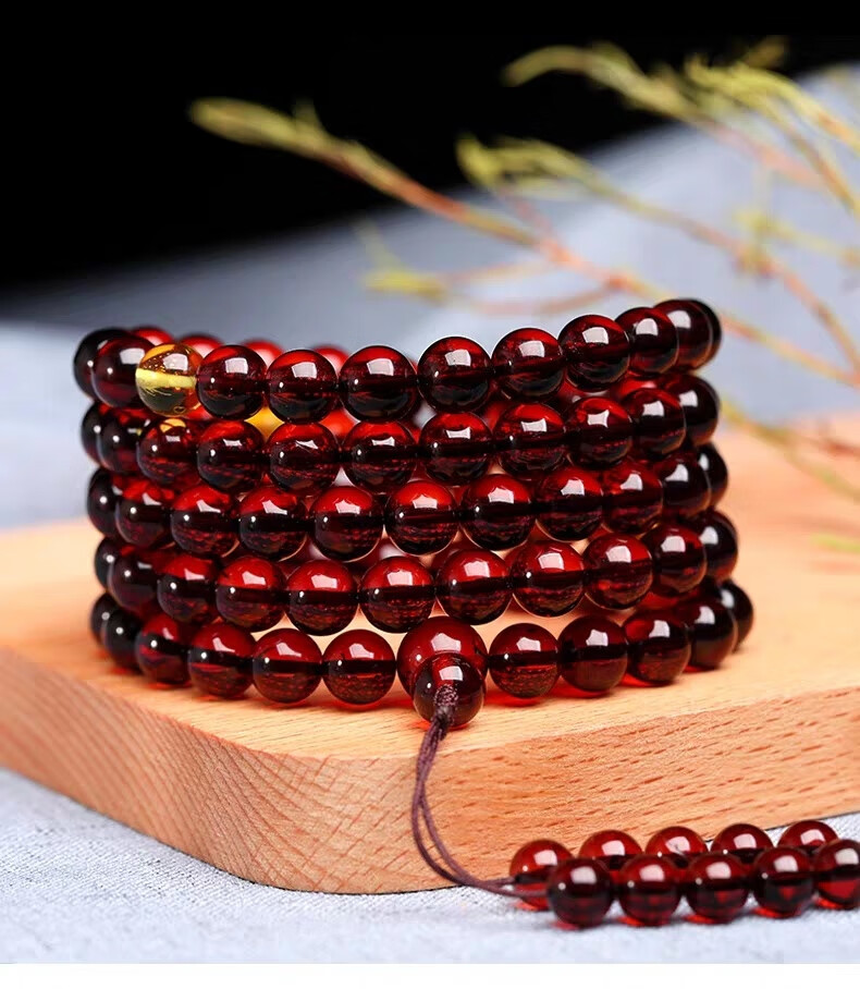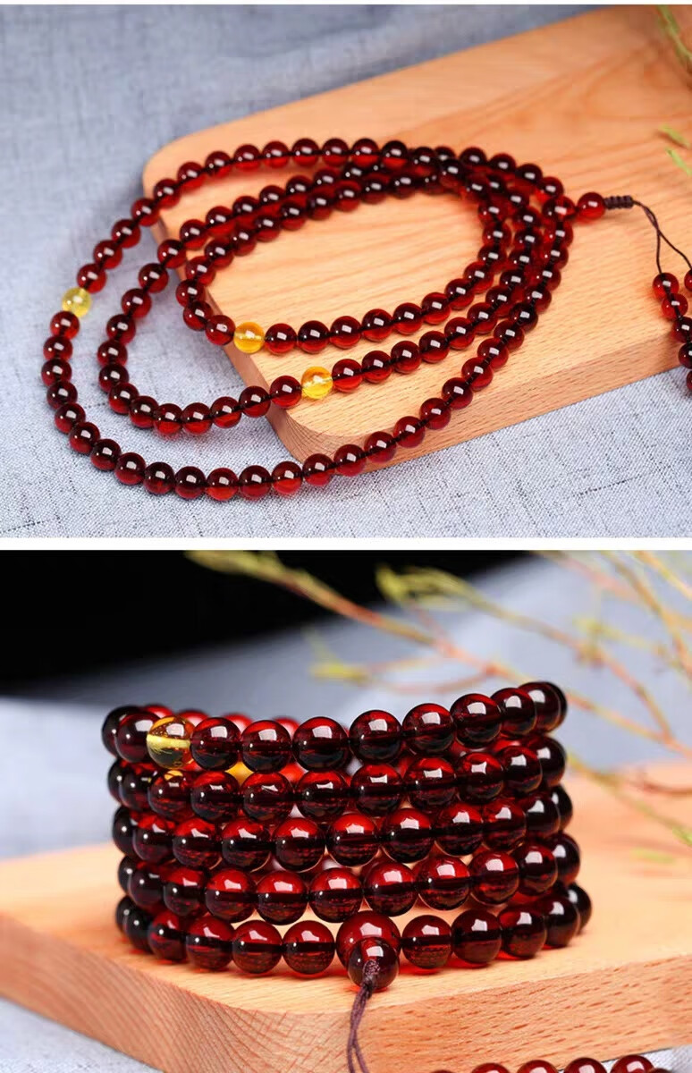 DRJEFUN amber bracelet for men and women, 108 Baltic blood amber fidelity beads, new style with certificate, selected 12MM, 108 pieces, gift certificate, 1 carat