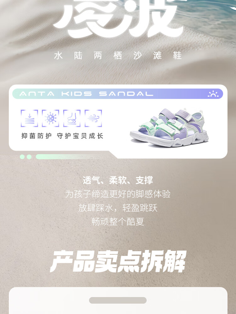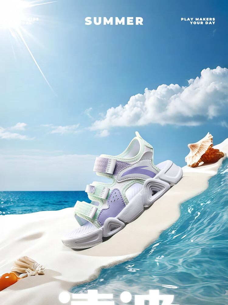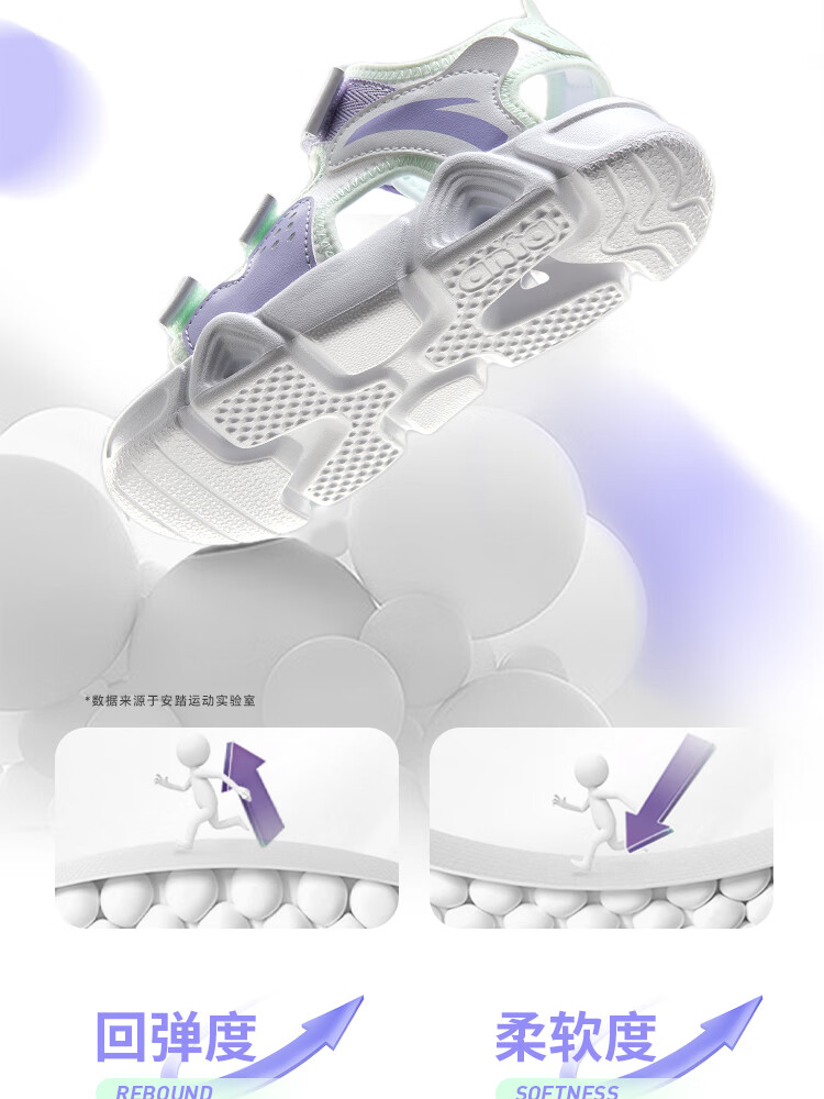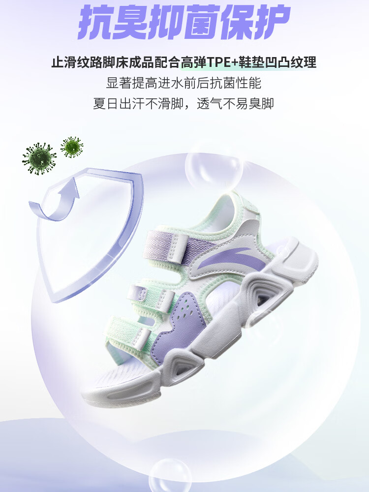 ANTA Children's Sandals Girls' Beach Shoes 2025 Summer New Baotou Breathable and Comfortable Outdoor Sandals Anta White/Fresh Purple-1 28