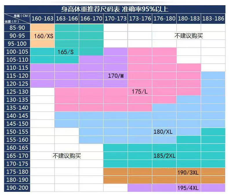 China (cm) 160-165/84-86 165-170 / 88-90 167-172 / 92-96 168-173 / 98-102 170-176 / 106-110