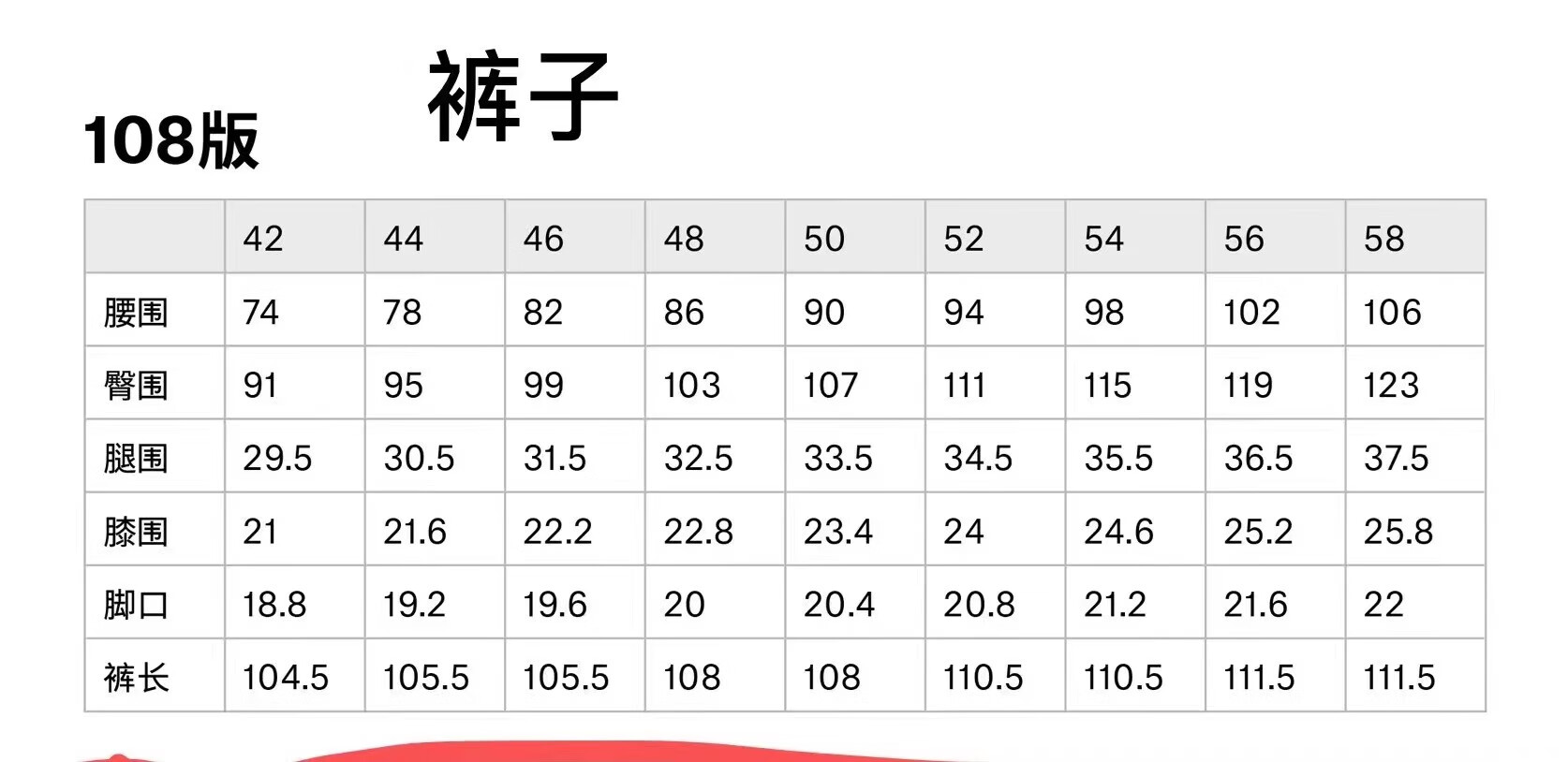 Outseam (cm) 99 cm 101.5 cm 104 cm 106.5 cm 109 cm