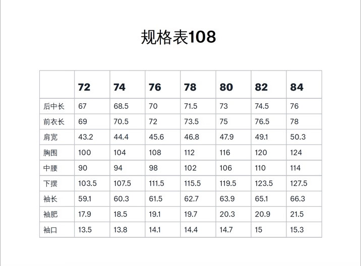 China(cm) 72-76 76-81 81-87 87-93 93-98