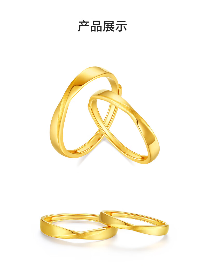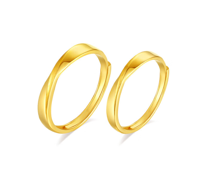 Zhou Taisheng Pure Gold Couple Ring Gold Ring Plain Ring Ring Live Mouth Female Pure Gold Birthday Gift for Girlfriend Pure Gold Endless Love Couple Ring 3.78g-Men's Ring