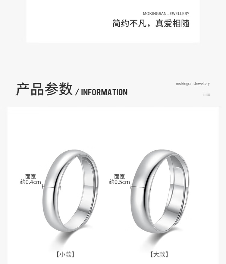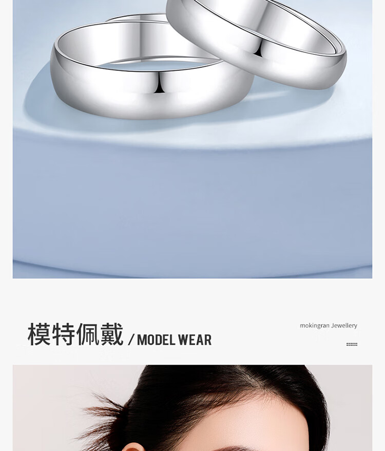 Mengjinyuan Platinum Ring PT950 Couple Ring Platinum Smooth Ring Ring for Men and Women as a Gift The Female Model Weights Approximately 3.90g The Ring is Adjustable