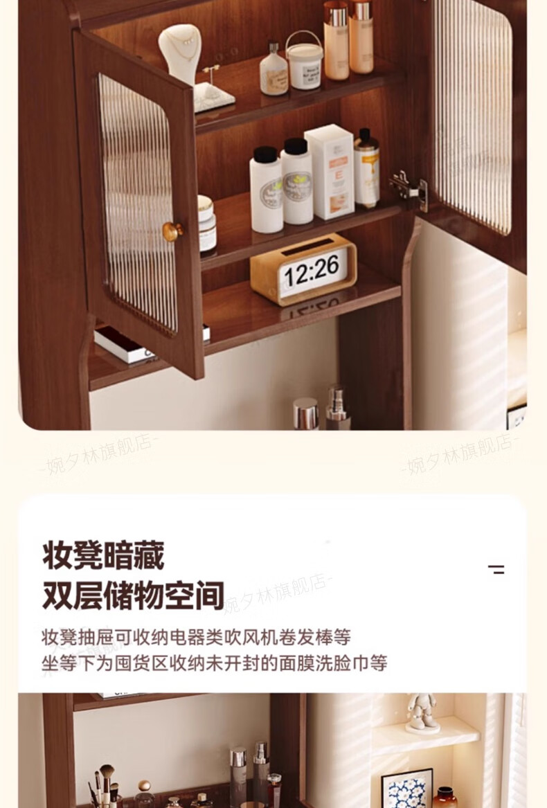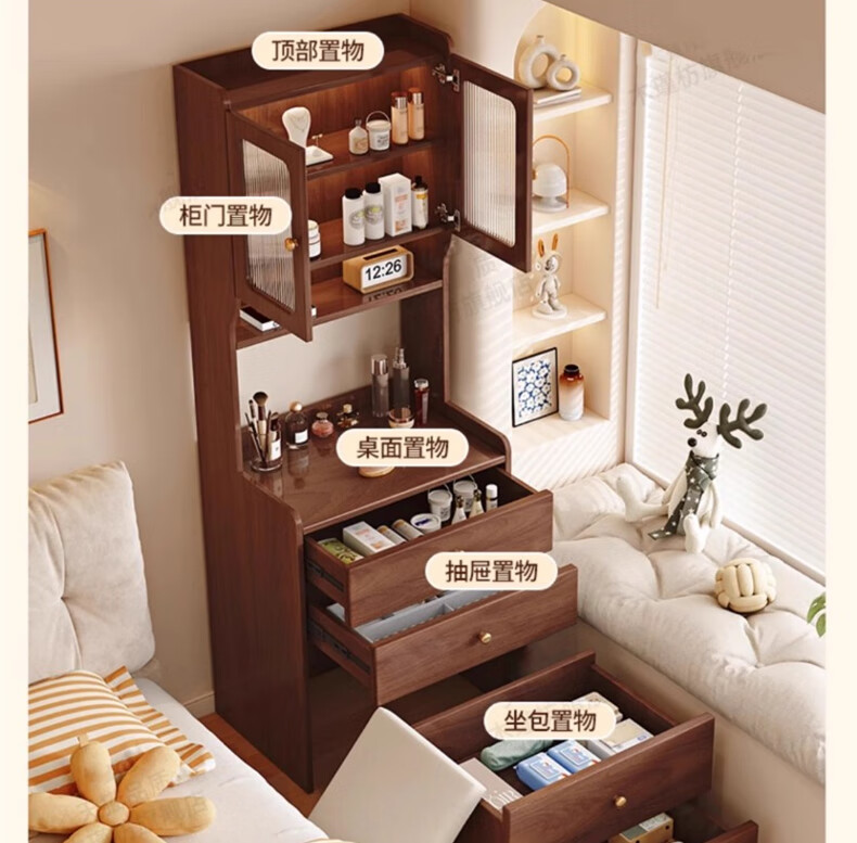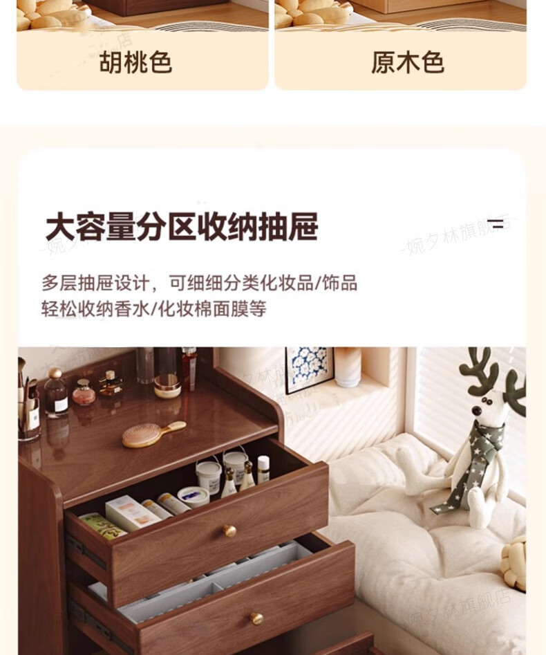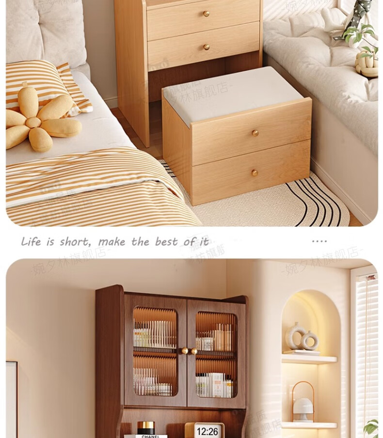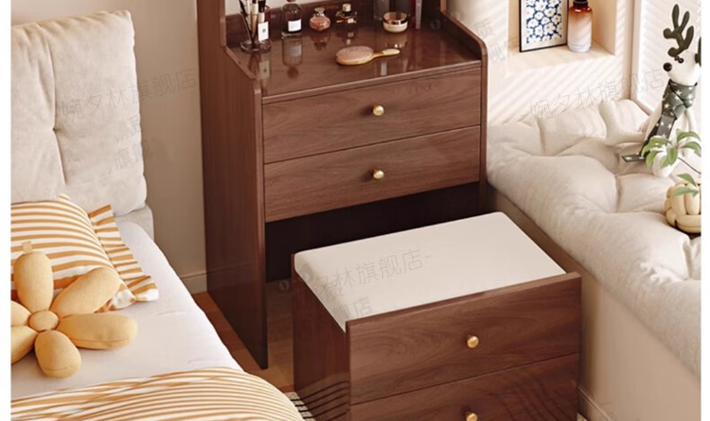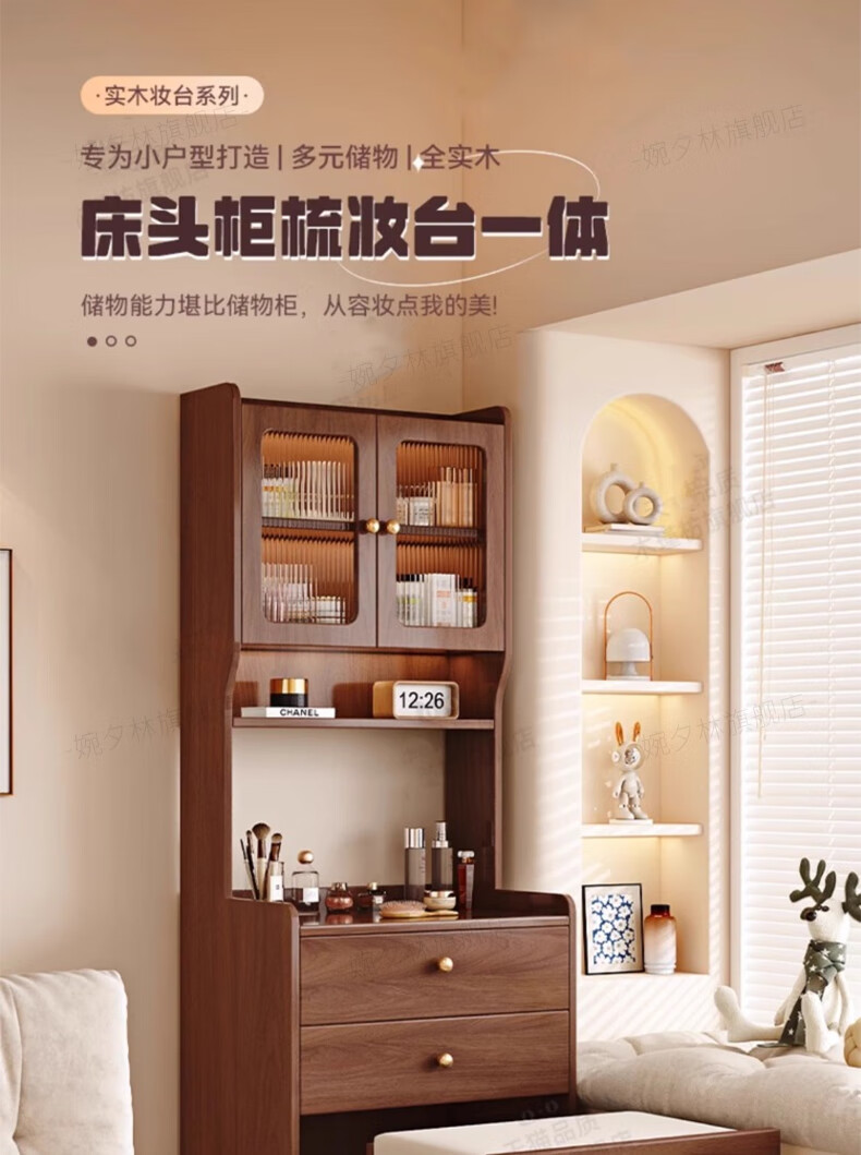 Wan Xilin solid wood dressing table makeup table modern bedroom simple drawer cabinet integrated small apartment bedside table makeup table storage cabinet 50CM-oak color + makeup stool